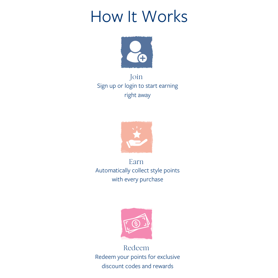 Remember, once you reach a rewardsย threshold you can use your Style Points right away, or you can wait and accumulate them to spend on a larger purchase!