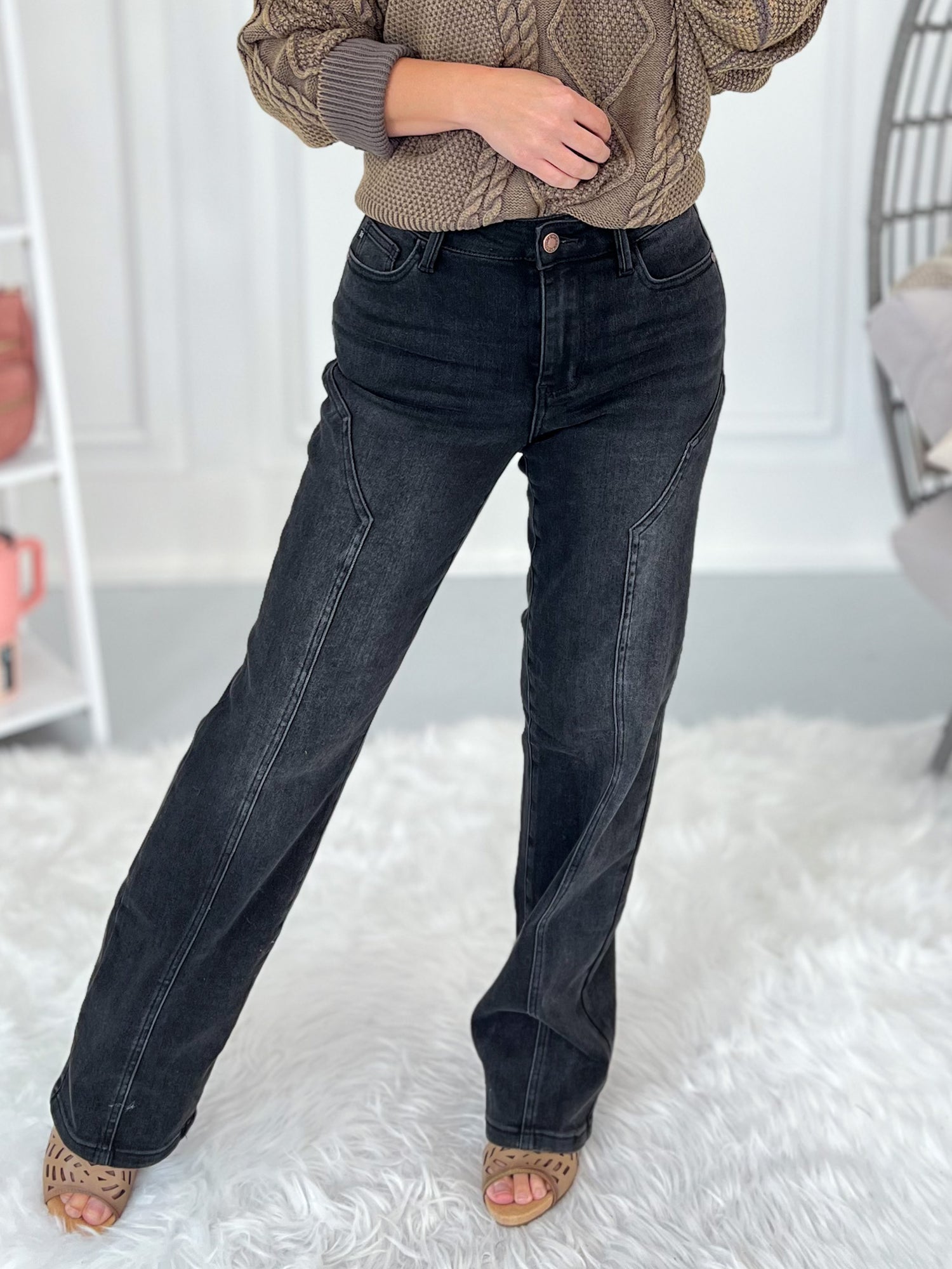 Saddle up for sleek style with just the right touch of western charm. These washed black Judy Blues feature a subtle western seam detail down each side, adding shape and character without overpowering your look. The non-distressed finish keeps them classy, while the darted back detailing gives a flattering, curve-enhancing fit. With Judy Blue’s signature stretch, these jeans are as comfortable as they are versatile—perfect for everything from rodeo nights to city strolls.
