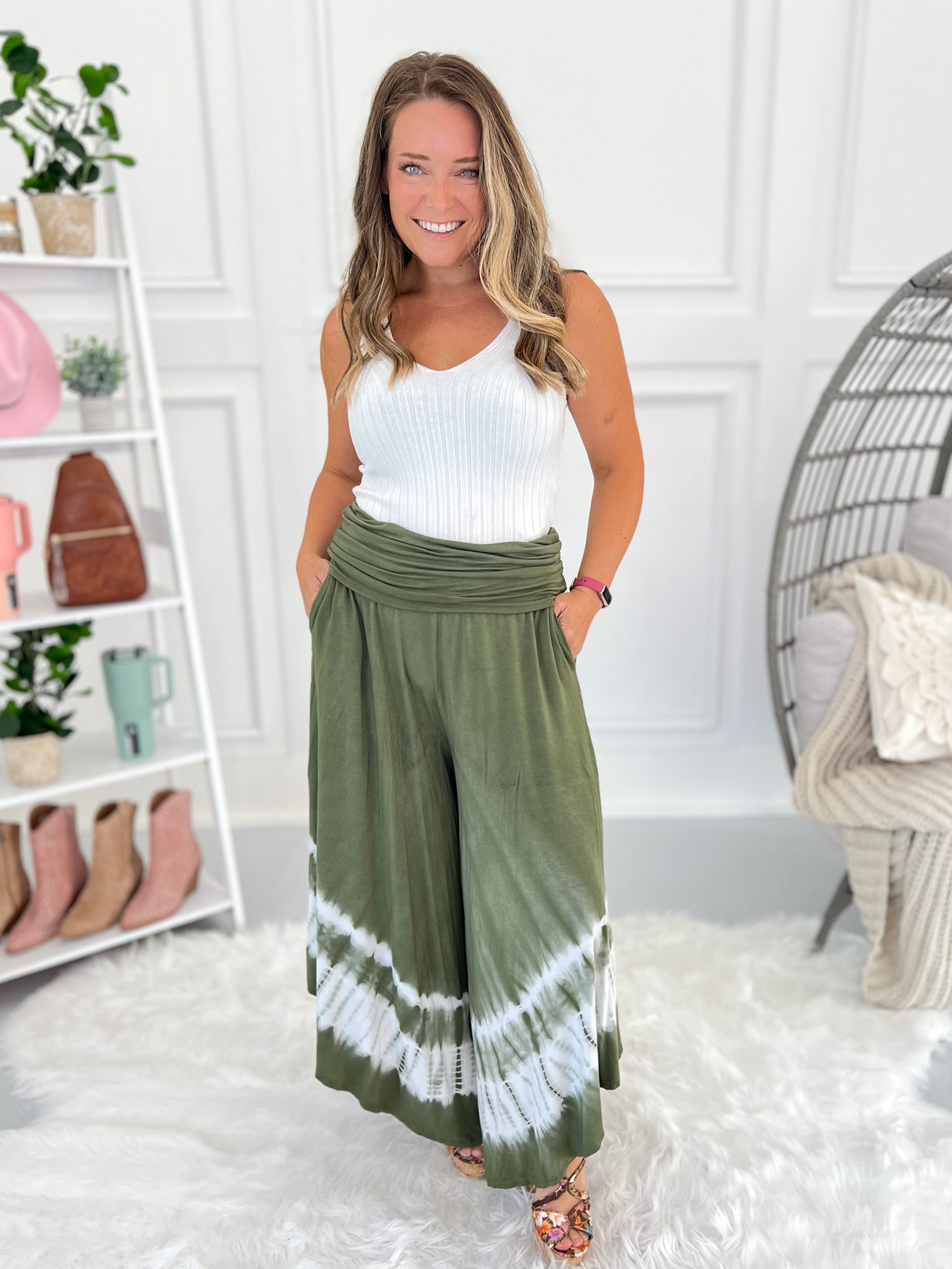 Fit: True to size gives a comfort fit in the waist with a flowing, loose drape in the pant from hip to ankle. Stretchy, foldover waistband allows you to adjust the length and fit of this piece. Stretchy and soft!