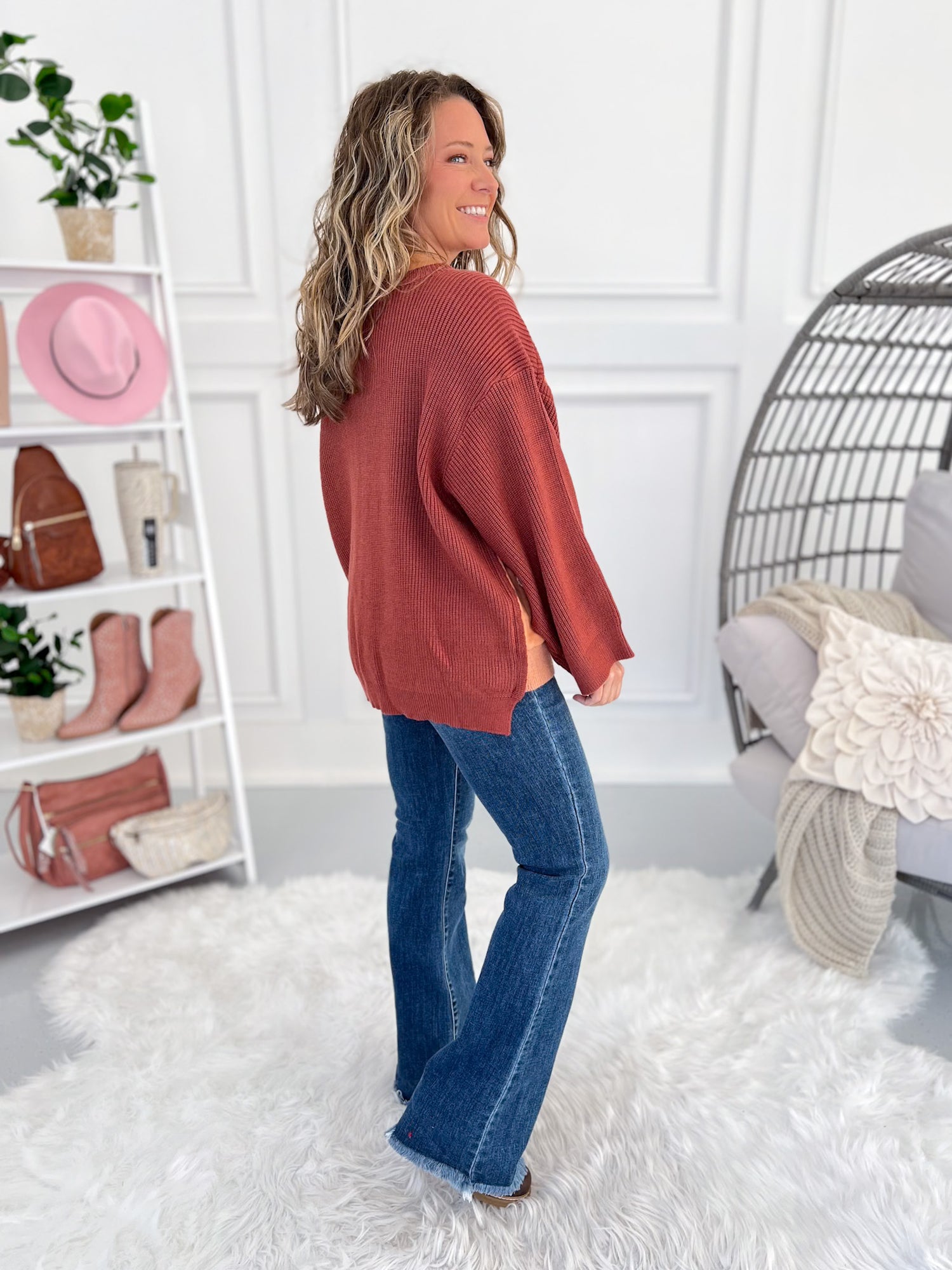 This cozy cutie is everything we love about fall style—soft, stretchy, and oh-so-comfy. Made from a high-end viscose knit that holds its shape beautifully, it features intricate crocheted lace appliqué details and color block sleeves for that extra touch of charm. The relaxed fit and split hem make it perfect for pairing with denim or leggings for an effortless look.