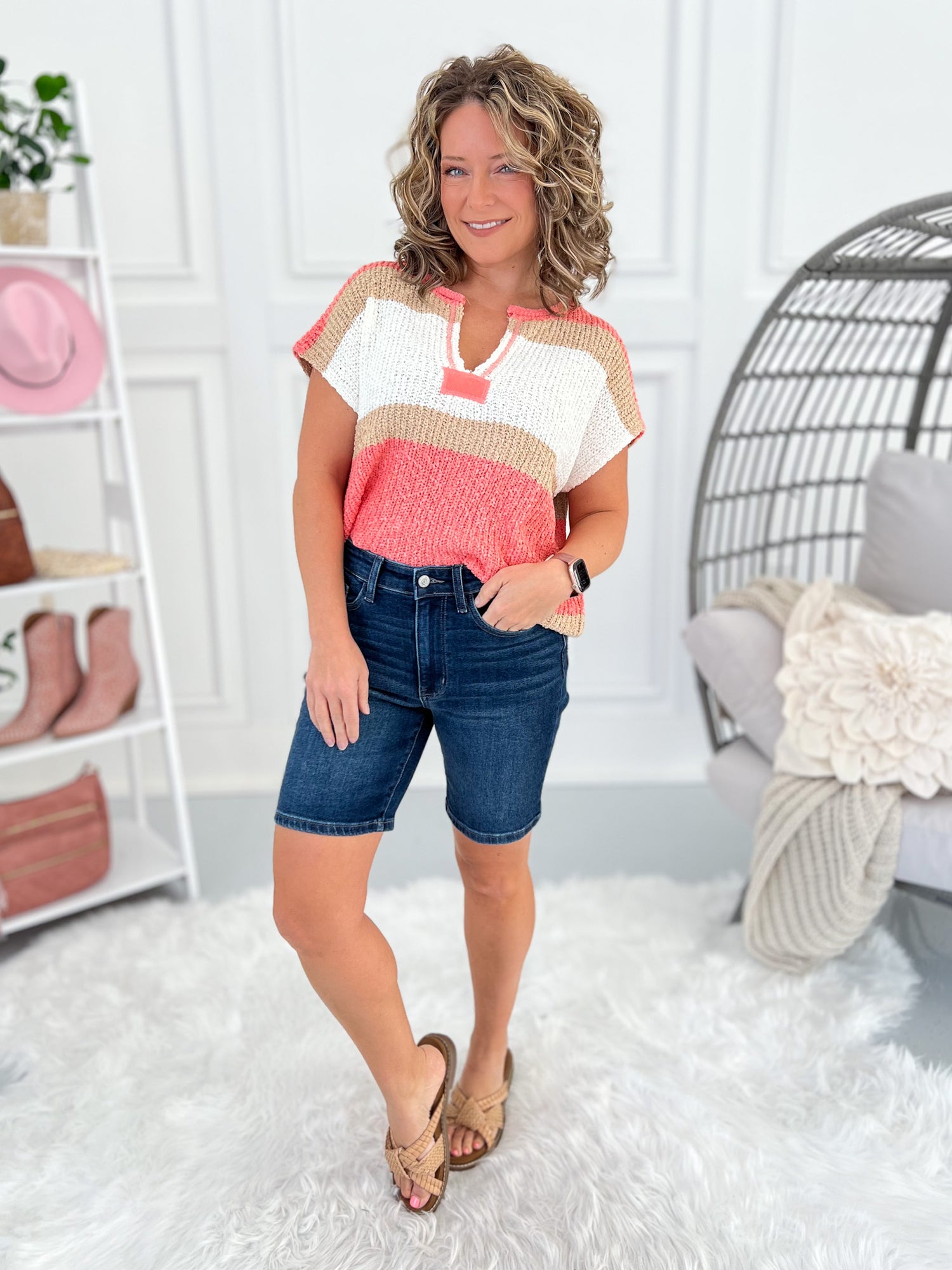 This one feels like sunshine without trying too hard. The Can See The Beach Top brings soft structure and breezy comfort together with a chunky crochet knit that’s thick enough to feel high quality, yet airy enough for warm days. Style it with denim shorts, white jeans, or relaxed denim for an effortless spring-to-summer look.