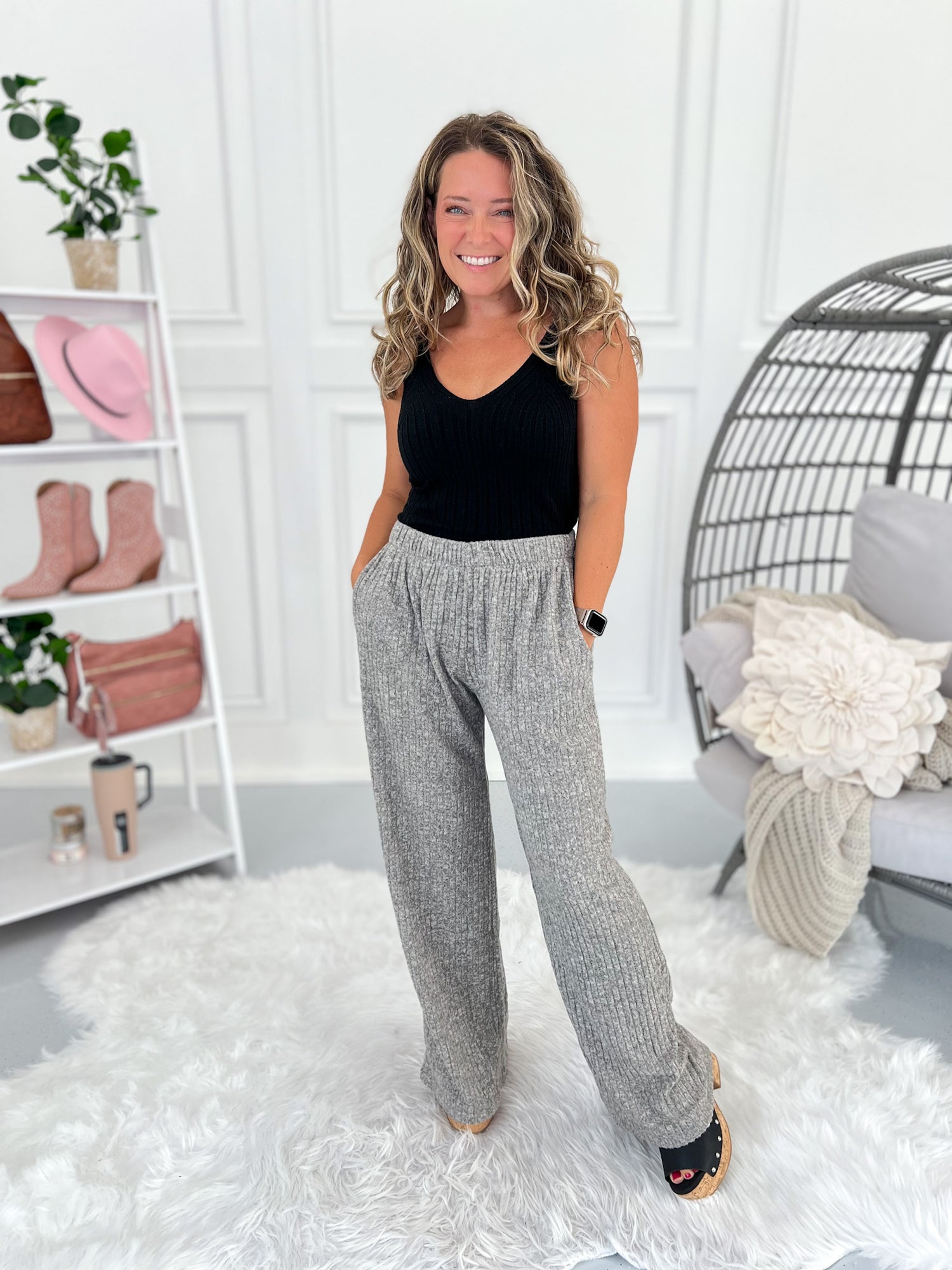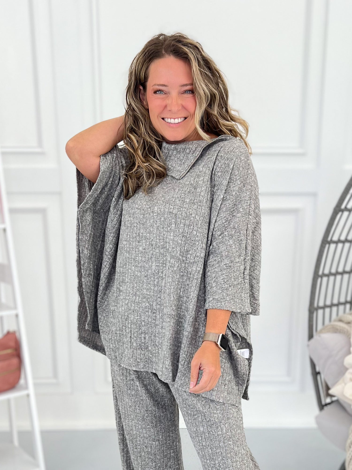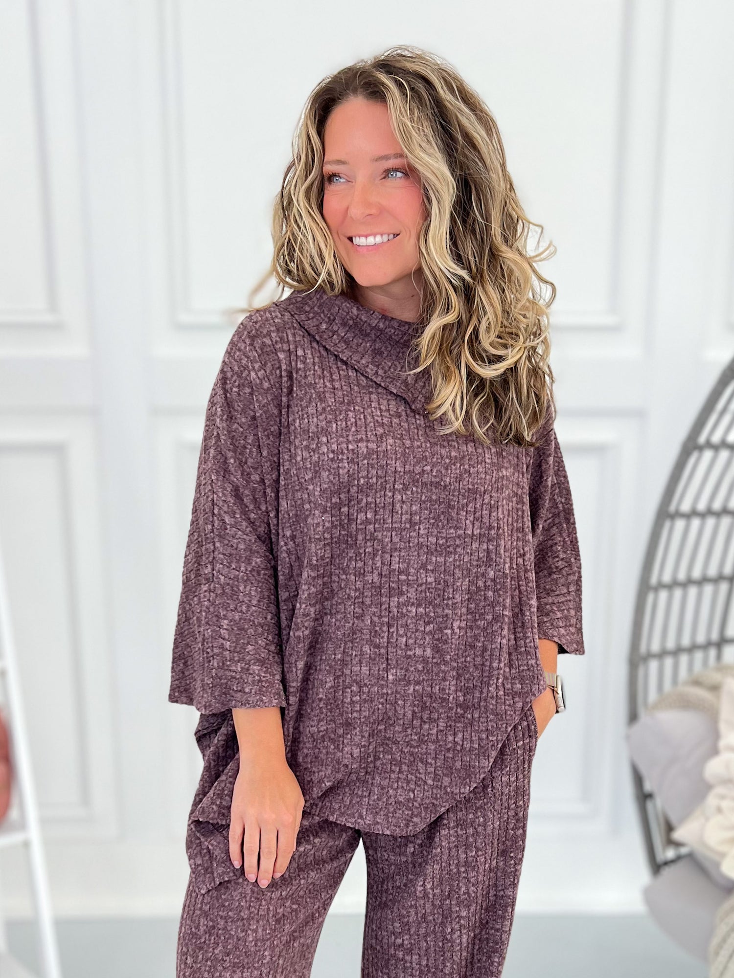 • Cashmere Brushed Knit: Super soft ribbed fabric with that luxe, lived-in feel
