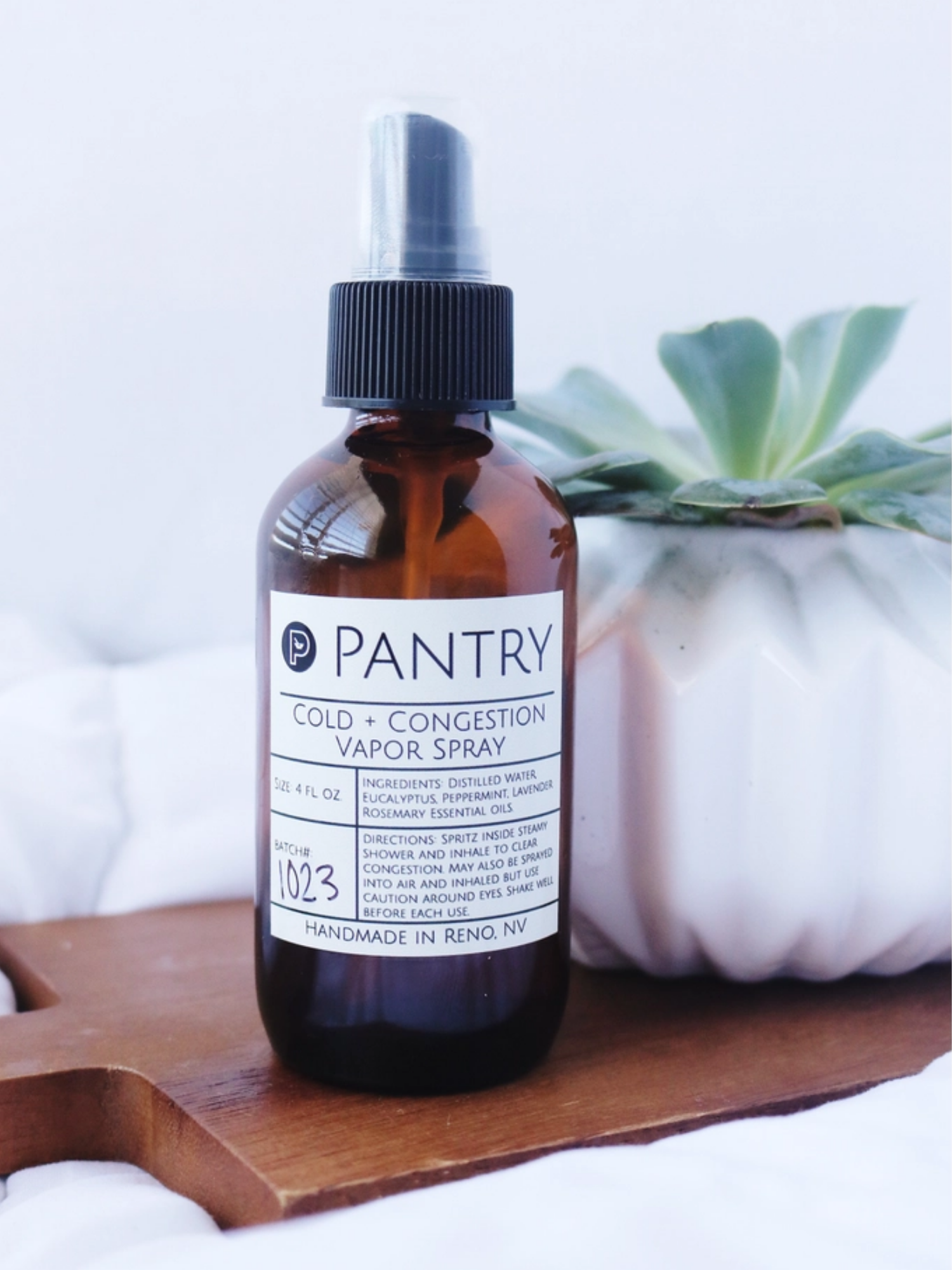 Turn your home shower into a soothing and comforting steam room with our Cold + Congestion Vapor Spray. Custom-formulated to open and ease irritation passageways, simply dispense a few spritzes in a steamy shower or even directly in the air and lightly inhale. Turn your home shower into a soothing and comforting steam room with our Cold + Congestion Vapor Spray. Custom-formulated to open and ease irritation passageways, simply dispense a few spritzes in a steamy shower or even directly in the air and lightly inhale.