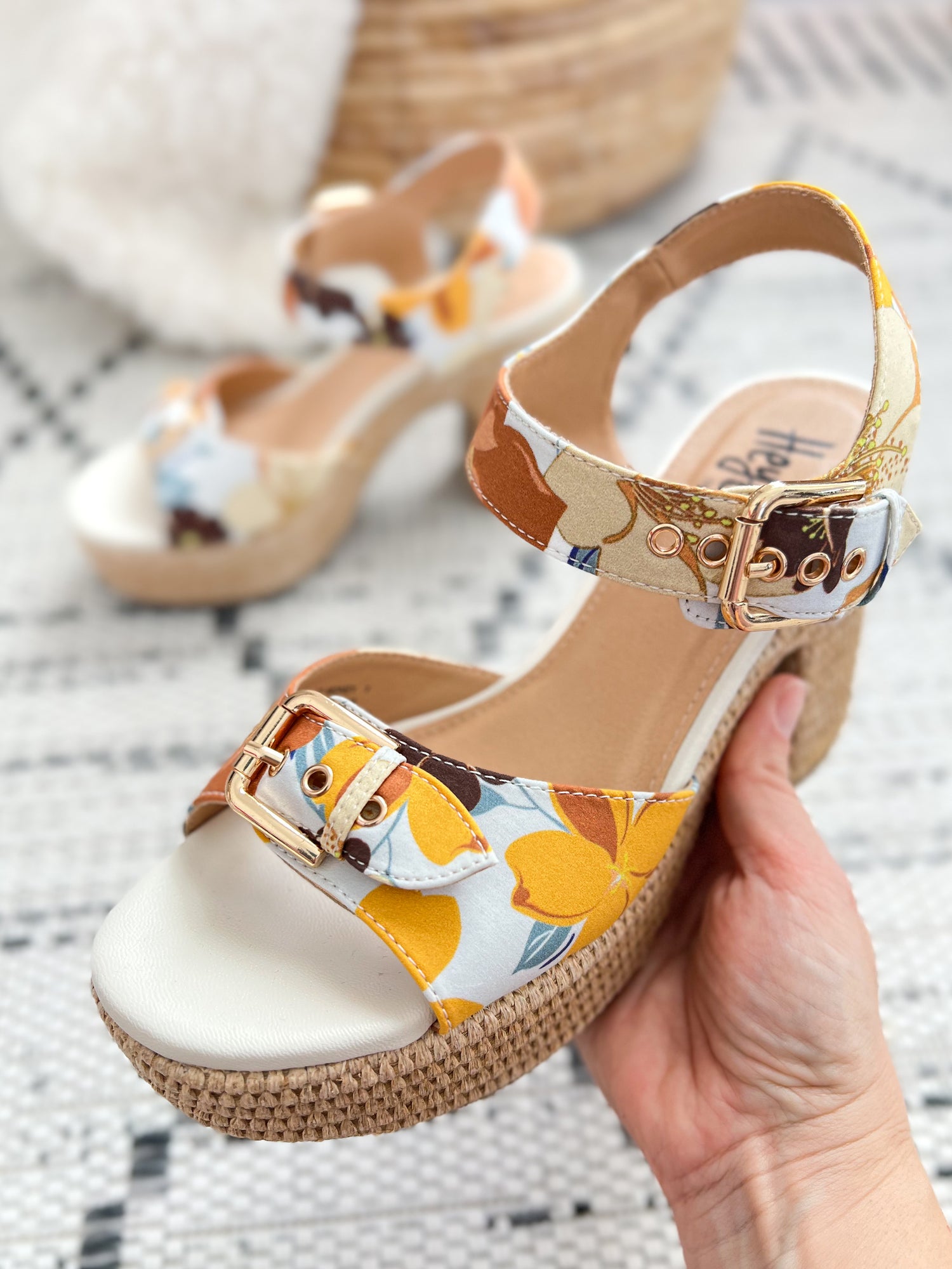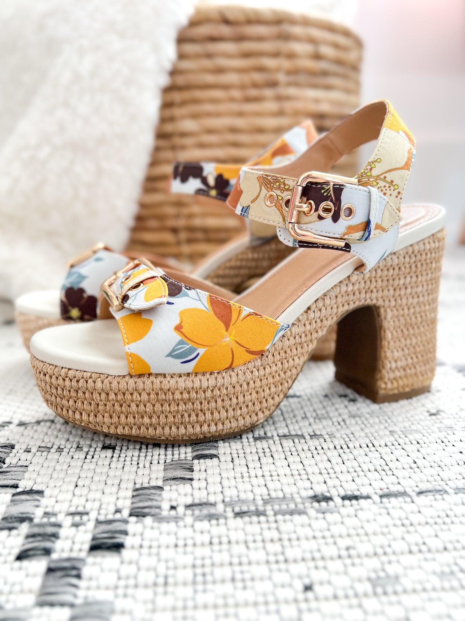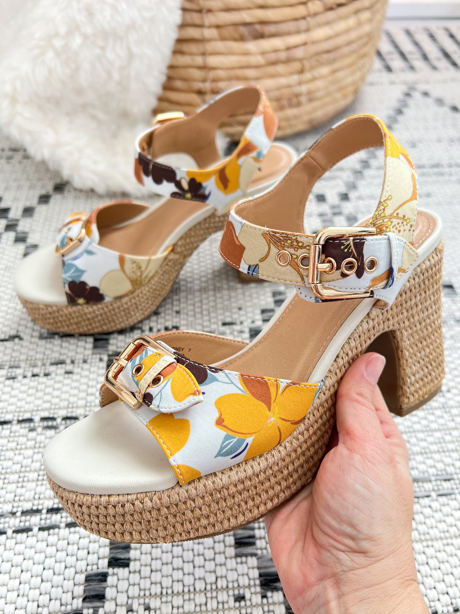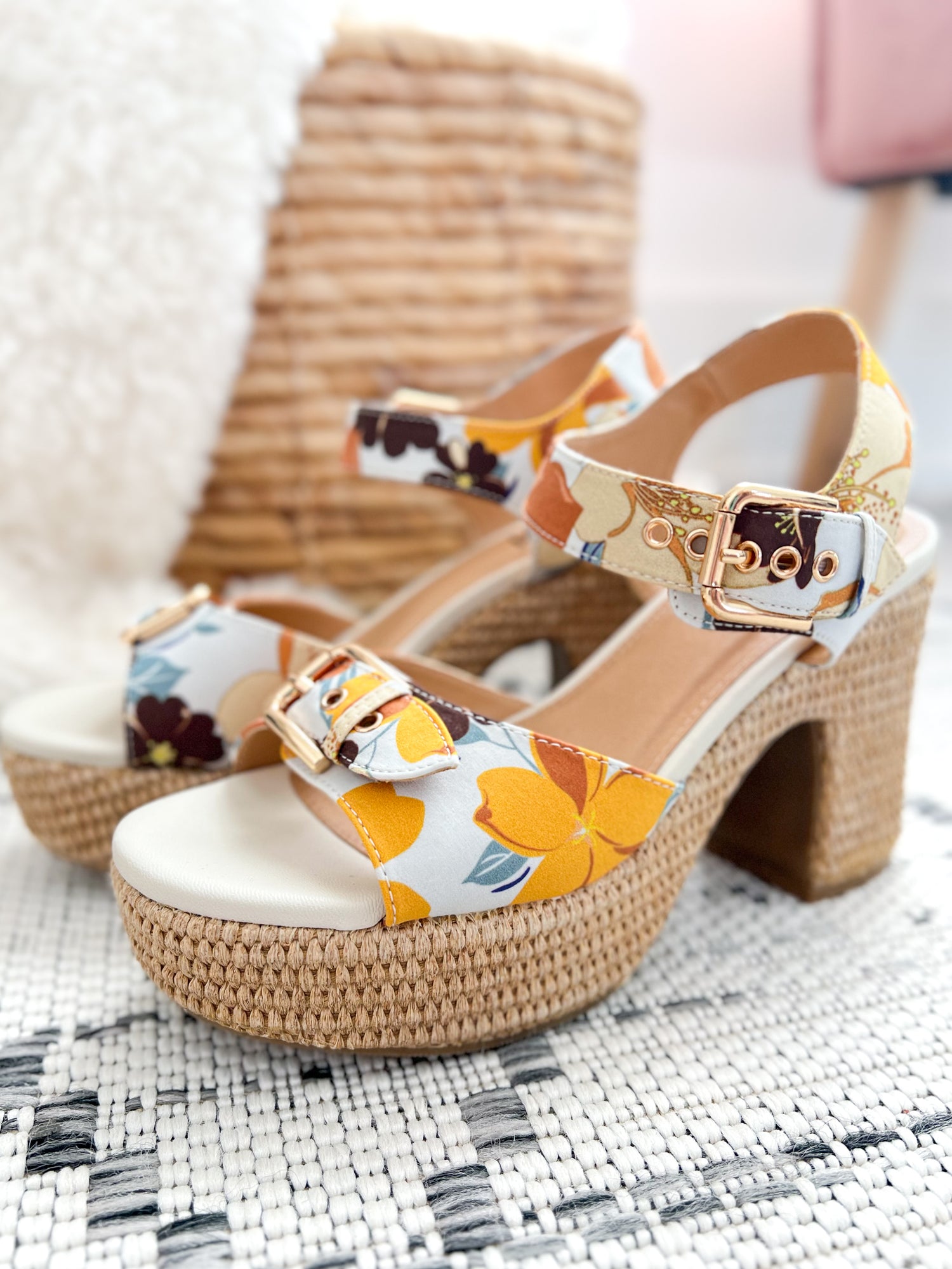 Pair them with denim, dresses, or wide leg pants for an instant outfit upgrade. The playful floral print adds a fun pop while the neutral tones make them easy to mix with just about anything in your closet.