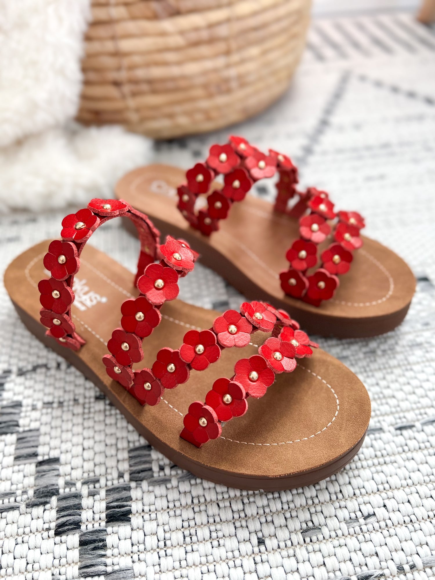 Wear these with denim shorts, dresses, or summer outfits when you want your shoes to steal the show. The vibrant red flowers make every outfit feel a little more fun.