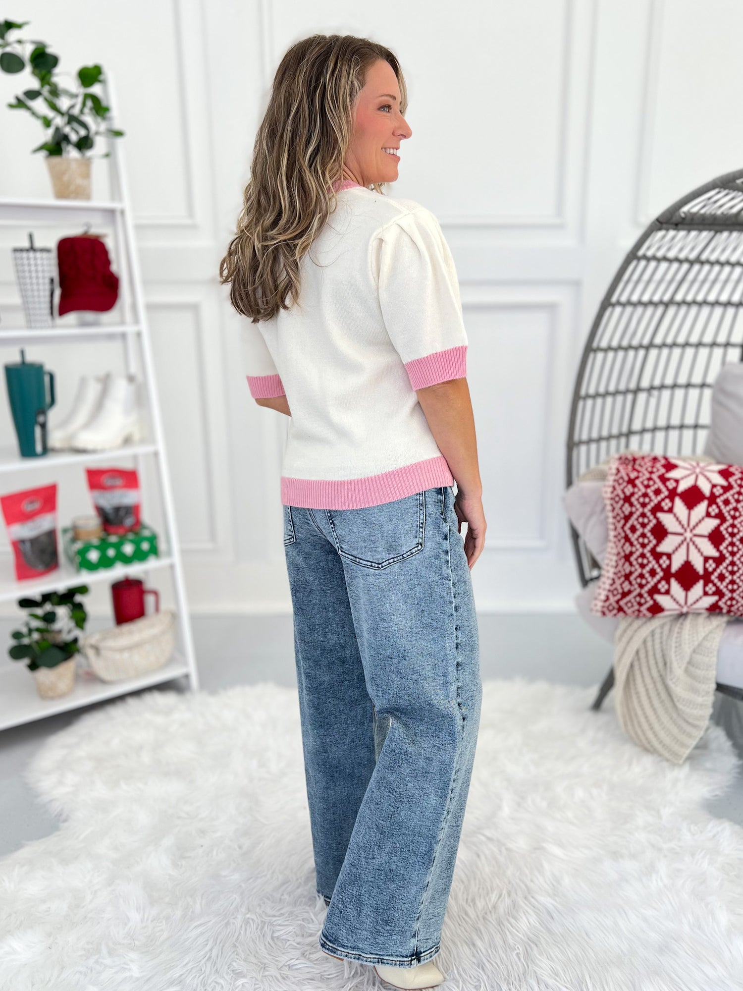 This holiday cardigan is pure magic — shimmery, soft, and absolutely stunning! The full iridescent sequin sleeves are lined for comfort, while the pastel trim and sparkly tree patches bring major Winter Wonderland vibes. Style it with your favorite jeans for a festive casual look or layer over a tulle skirt for a glam holiday party moment.