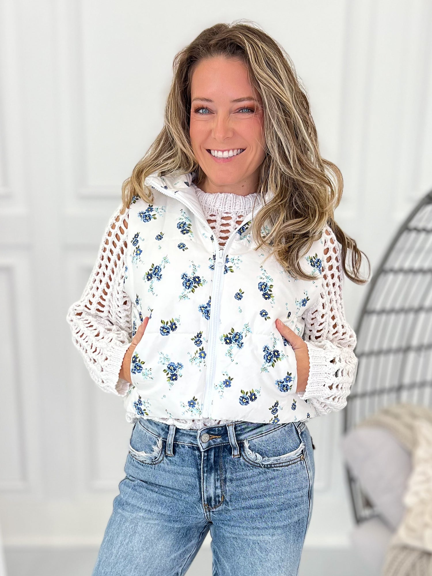 You’re going to fall hard for this dainty floral puffer vest—it’s the perfect mix of cozy and cute. The lightweight padding keeps you warm without overheating, and the soft inner lining feels so good you’ll never want to take it off. Pairs beautifully with long sleeves, sweaters, or thermals for a casual yet put-together vibe.
