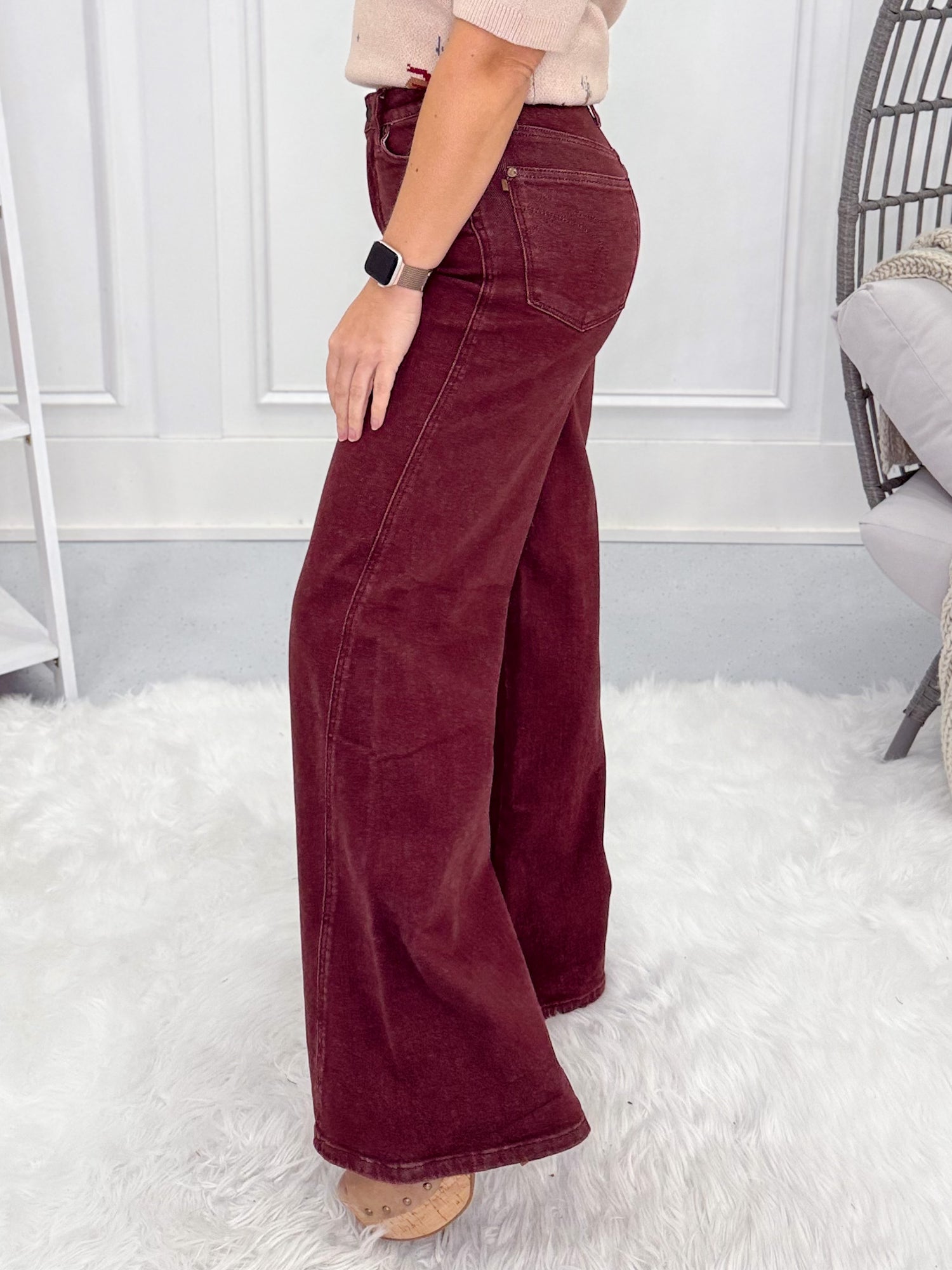*DOOR BUSTER* Retro Rouge - Judy Blue Burgundy Retro Wide Leg Jean
