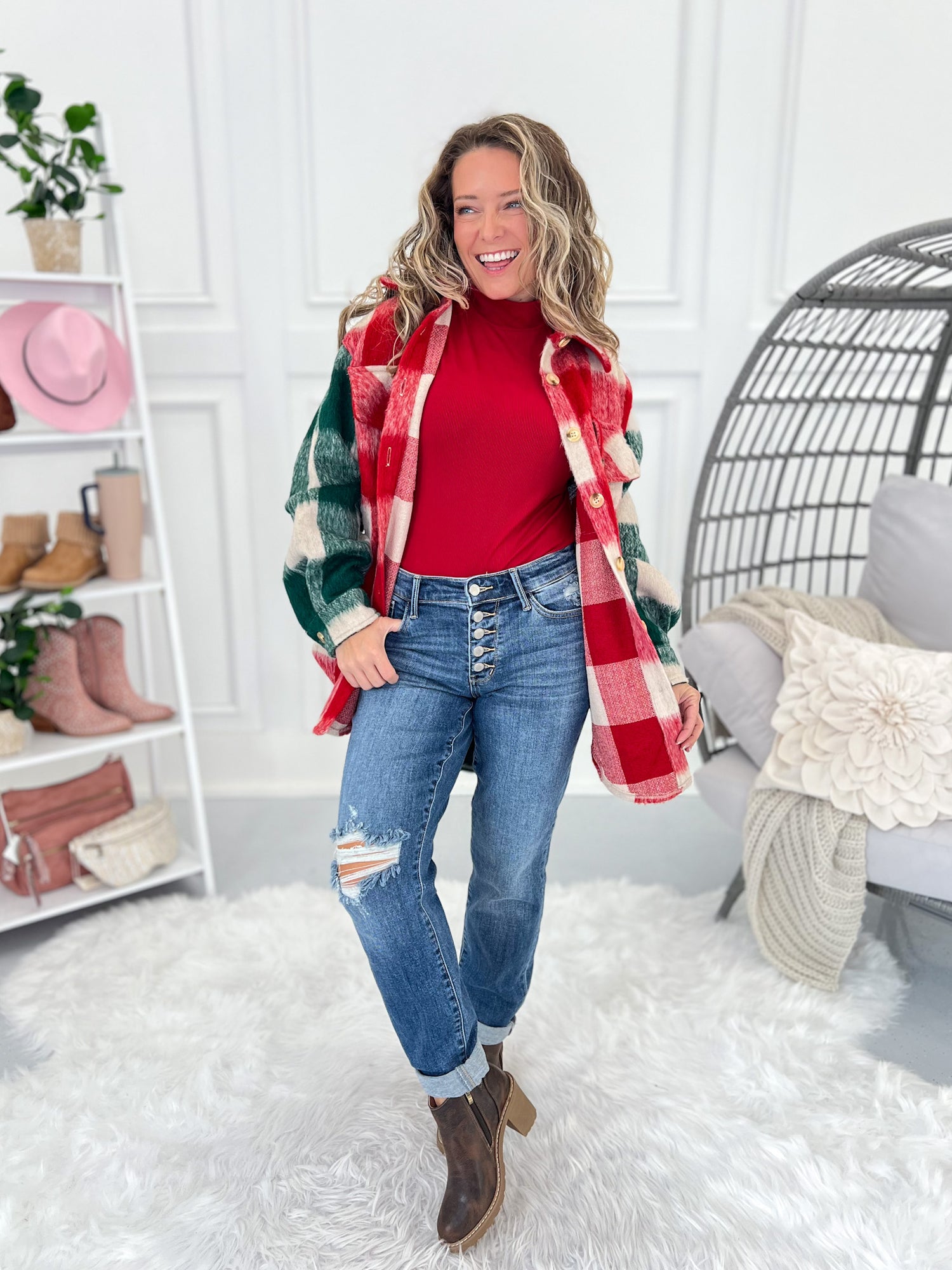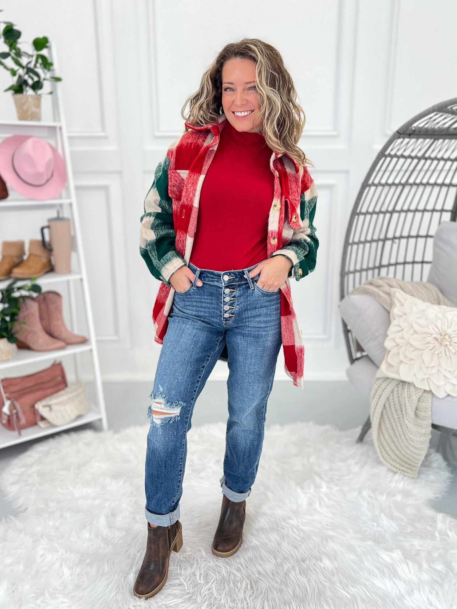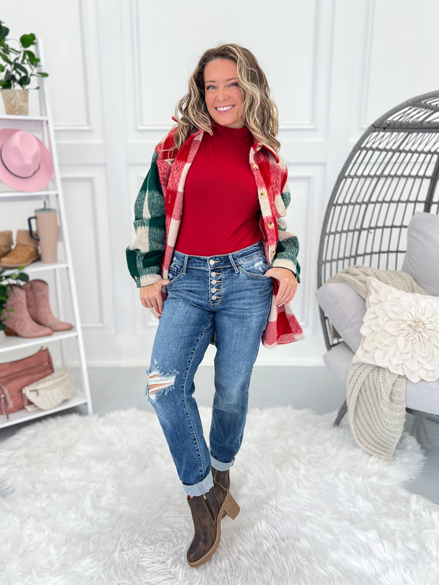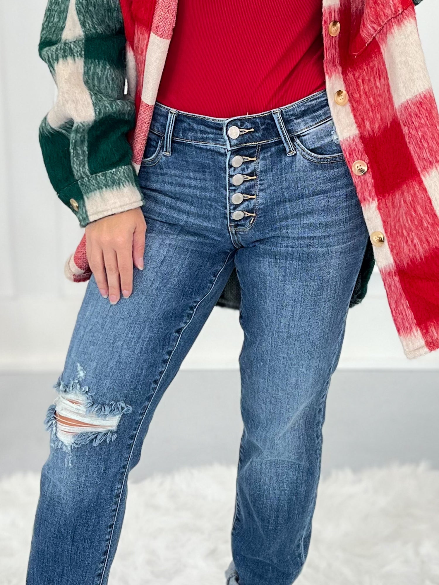 Casual and carefree, these boyfriend jeans have that relaxed fit you’ll want to live in - afterall Judy Blue boyfriend jeans are the most beloved silhouette ever made. They are so insanely comfortable! The button fly adds a flattering touch, while the soft and stretchy denim keeps them feeling good all day. Wear cuffed with sneakers for a laid-back vibe or uncuffed with a bodysuit and heels for an edgy look.