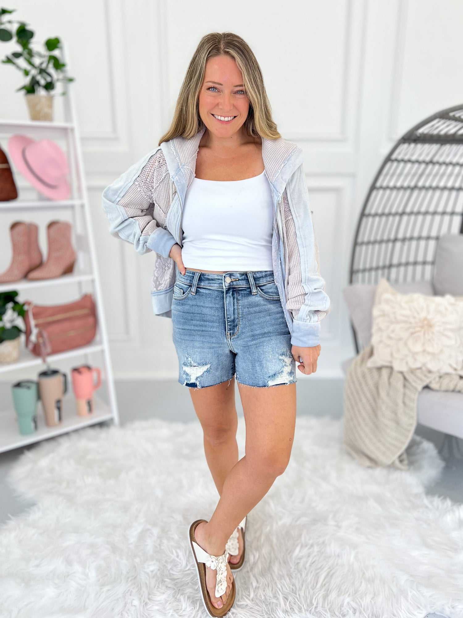 Edge Appeal - Judy Blue Stitched Over Distressed Shorts - Final Sale