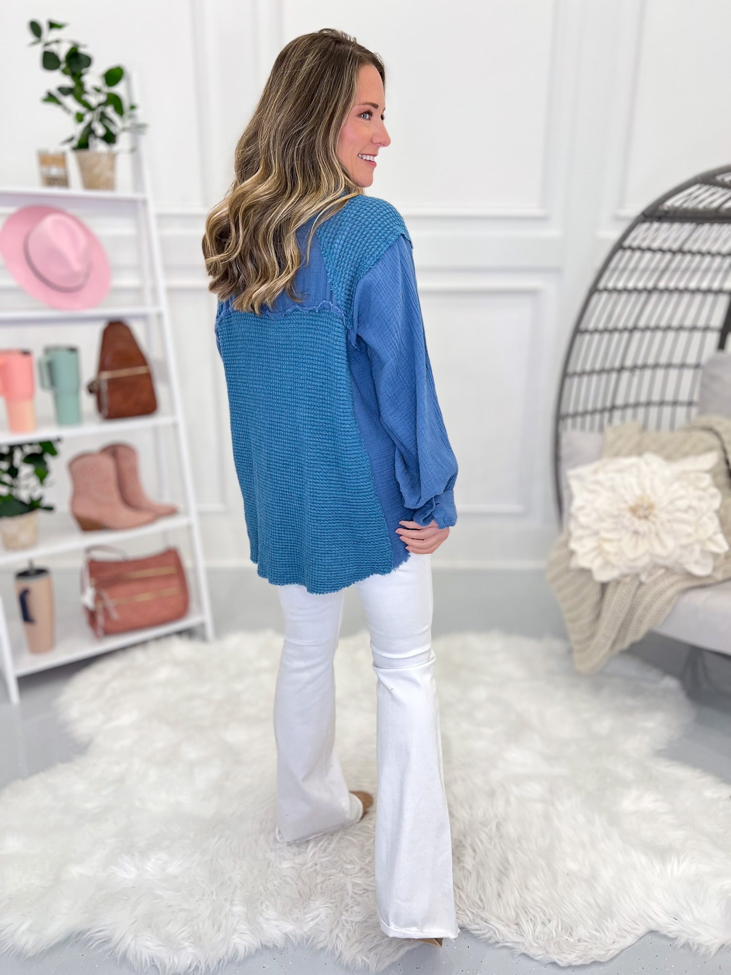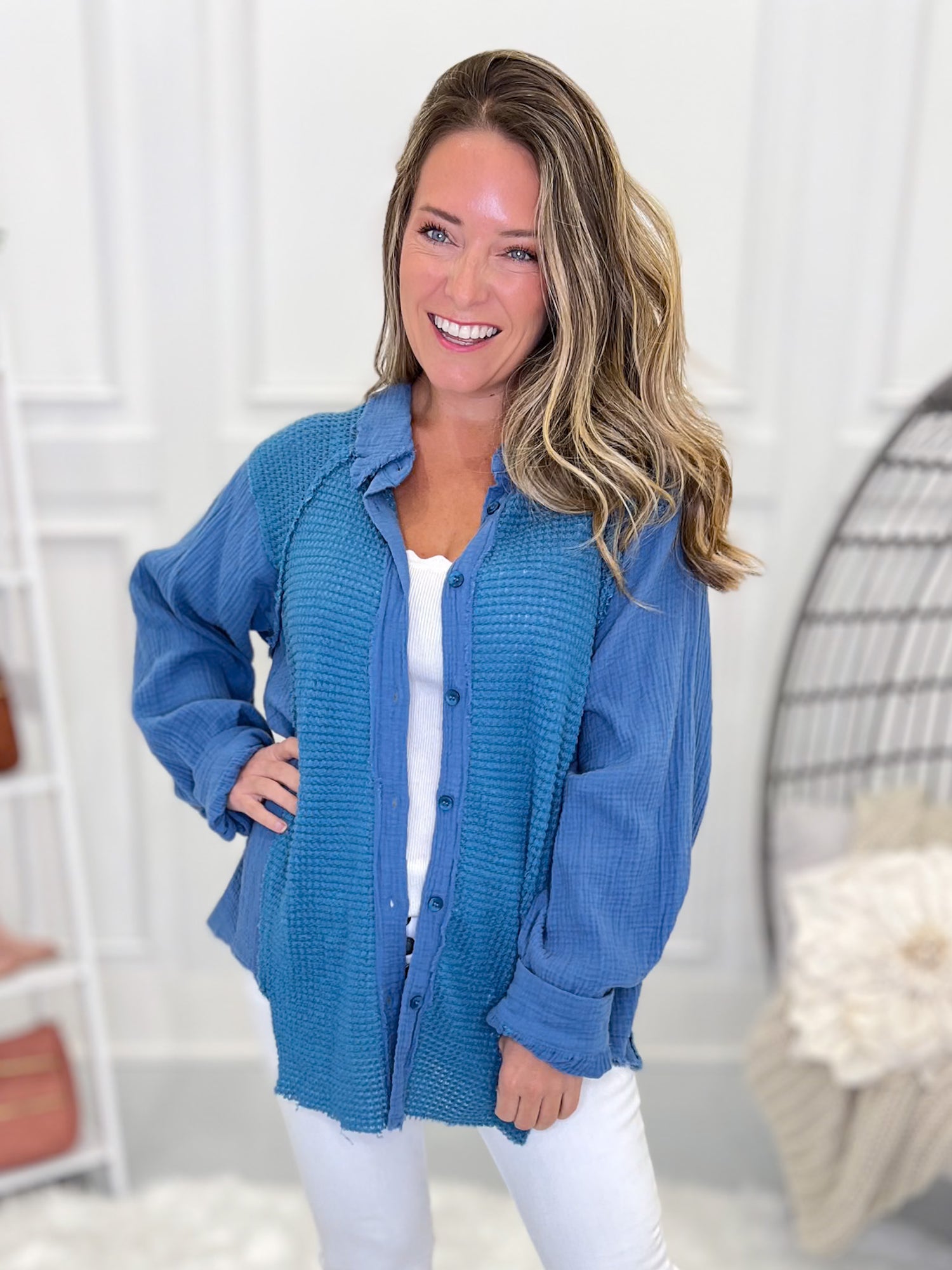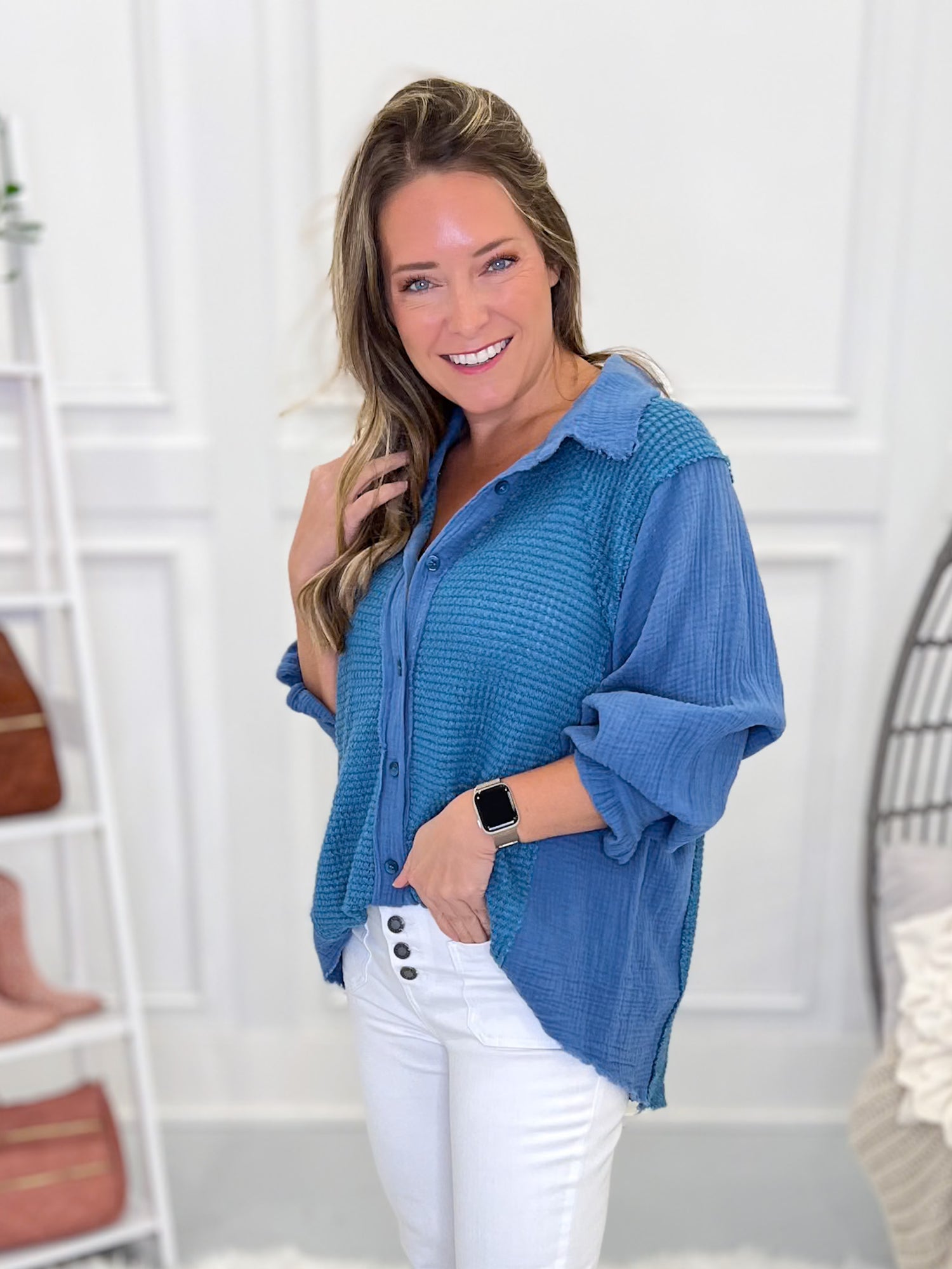 This incredibly light and airy top is as comfortable as it is stylish! Wear closed with some white jeans, layered with a cute skirt or shorts, add a pattern or additional color underneath - anything goes, really. It's versatile, but far from basic.