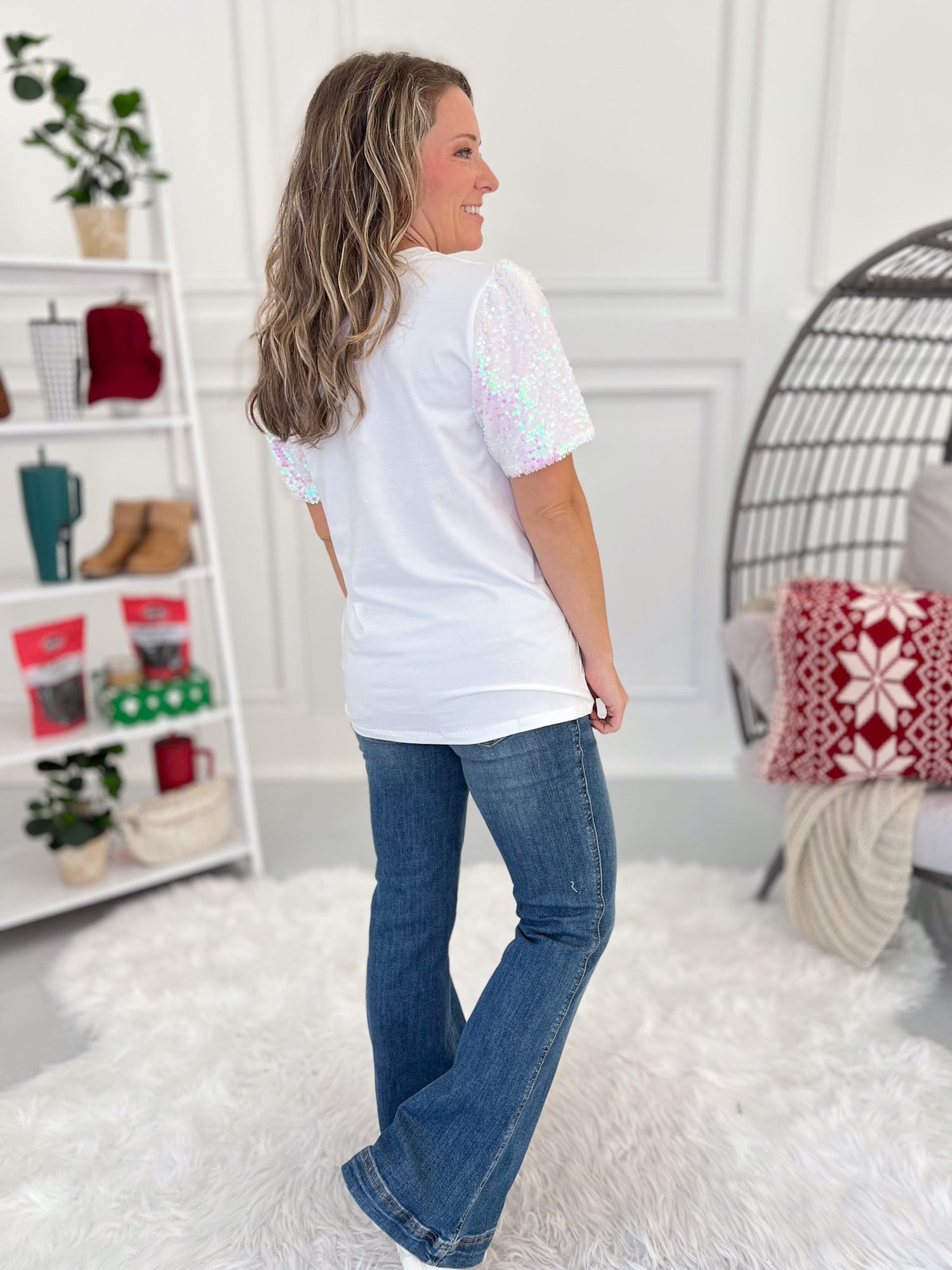 • Luxe Sequin Sleeves: Fully lined to keep them soft and comfortable on your arms.
