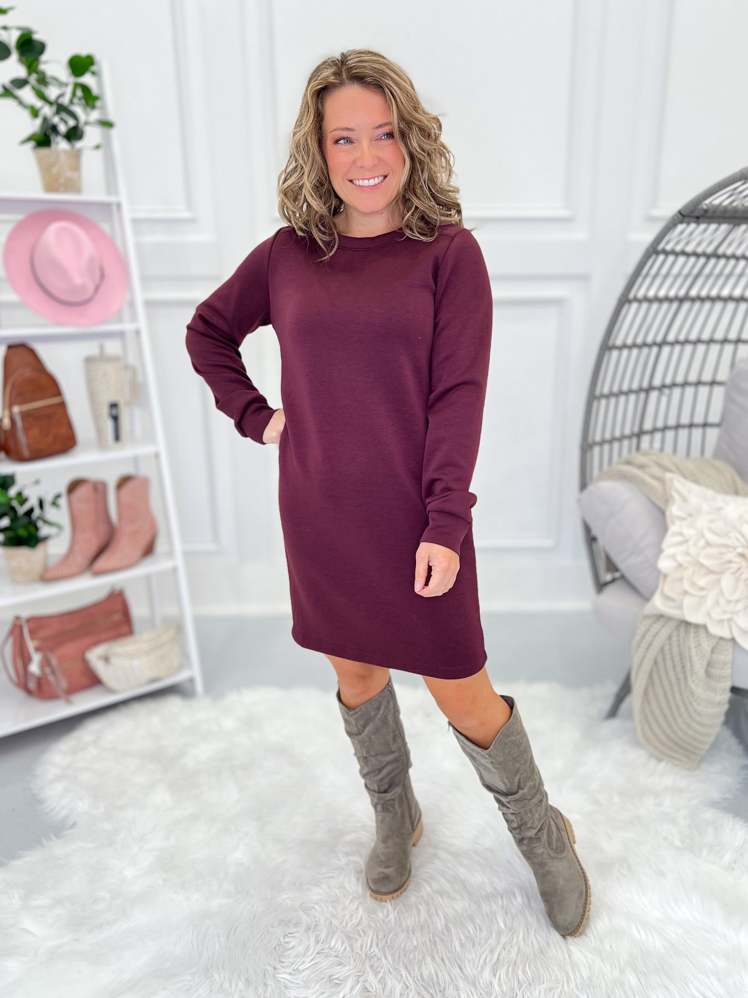 The perfect mix of sporty and chic, this scuba knit dress gives you a smooth, non-sheer fit that feels cool yet cozy. Pair it with sneakers for casual days or dress it up with boots and a jacket for an effortlessly polished look.