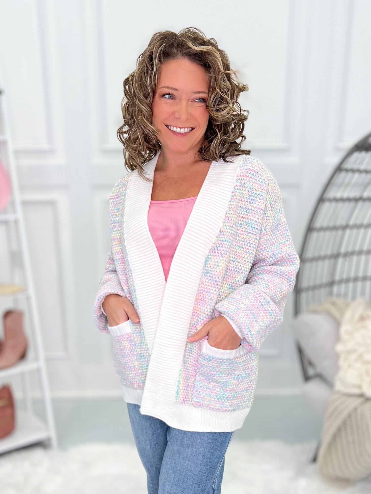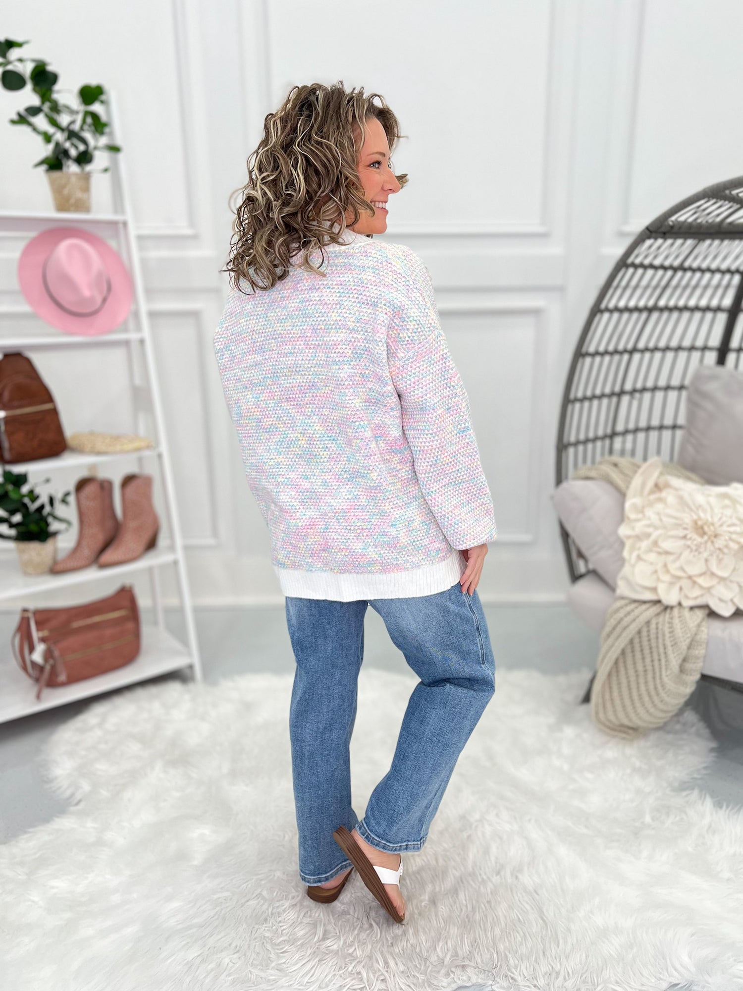 This one brings the happy vibes. The Get This Party Started Cardigan by Michelle Mae is made with that signature high-quality knit that feels cozy but still fresh and spring-ready. The soft pastel colorways instantly brighten up any outfit, making this an easy grab for everything from casual days to dressed-up moments.