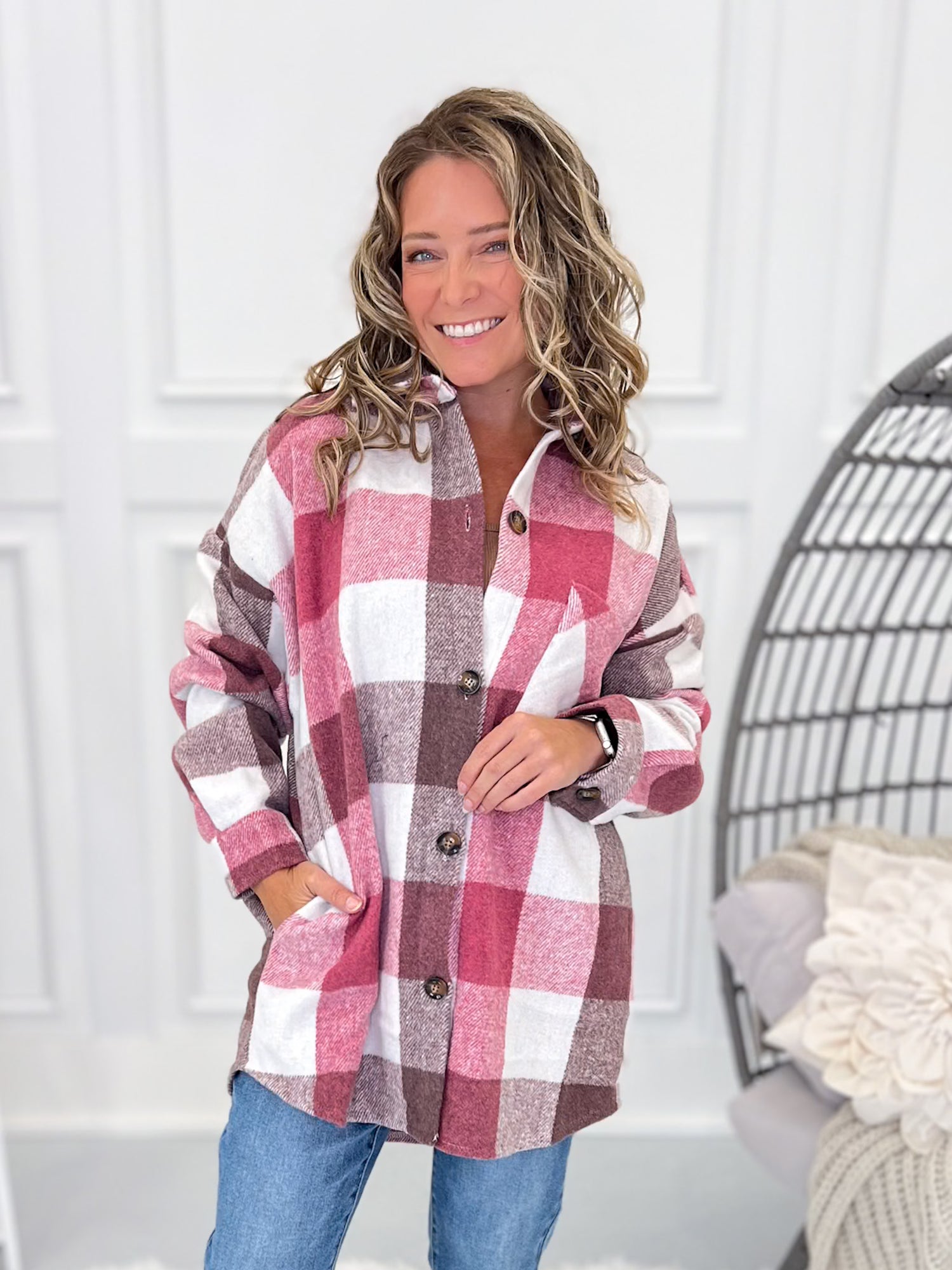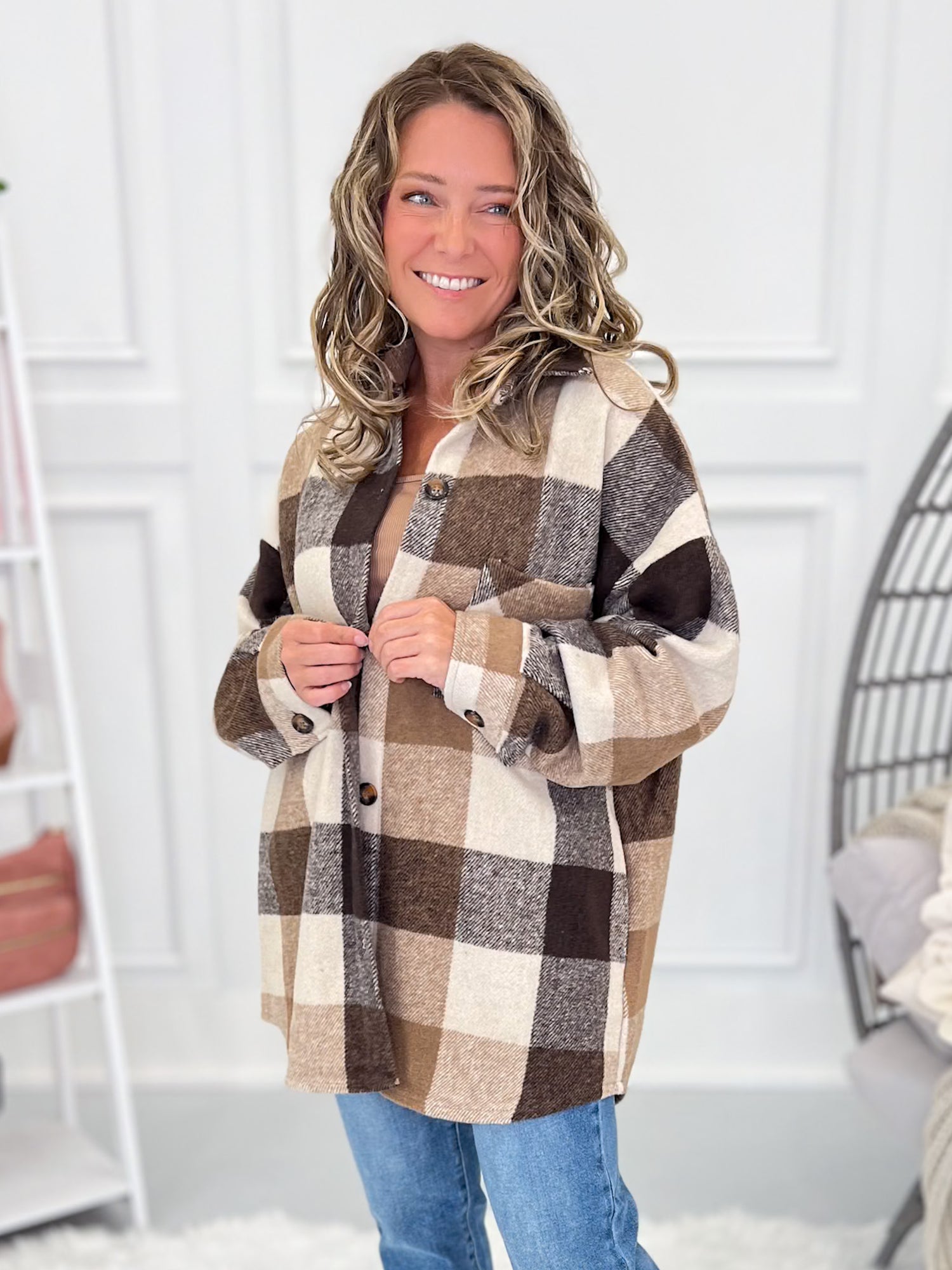 This plaid shacket is the ultimate fall layering piece—effortlessly cool, cozy, and classic. Throw it on with jeans and booties for an easy everyday outfit, or layer it over leggings and a tee for a comfy casual vibe. With two color options, it’s a staple you’ll rock again and again this season.