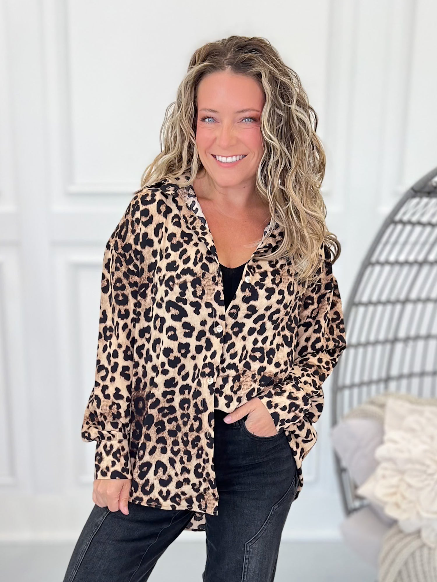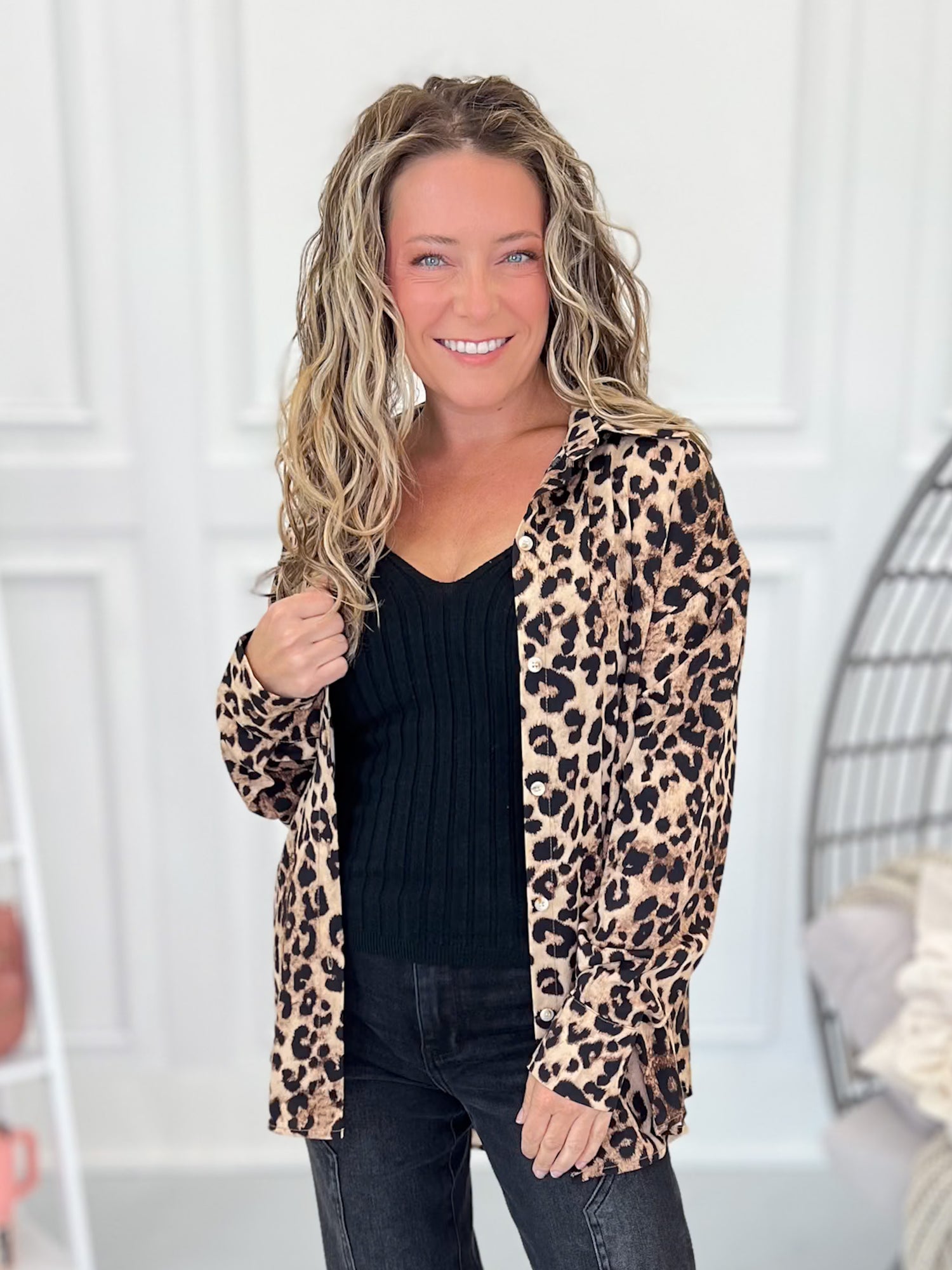 This classic leopard button up is the perfect piece to elevate any outfit. Wear it open over a tank, tucked into trousers for the office, or half-buttoned with denim for a chic weekend vibe. Lightweight, breathable, and totally timeless—you’ll reach for it again and again.