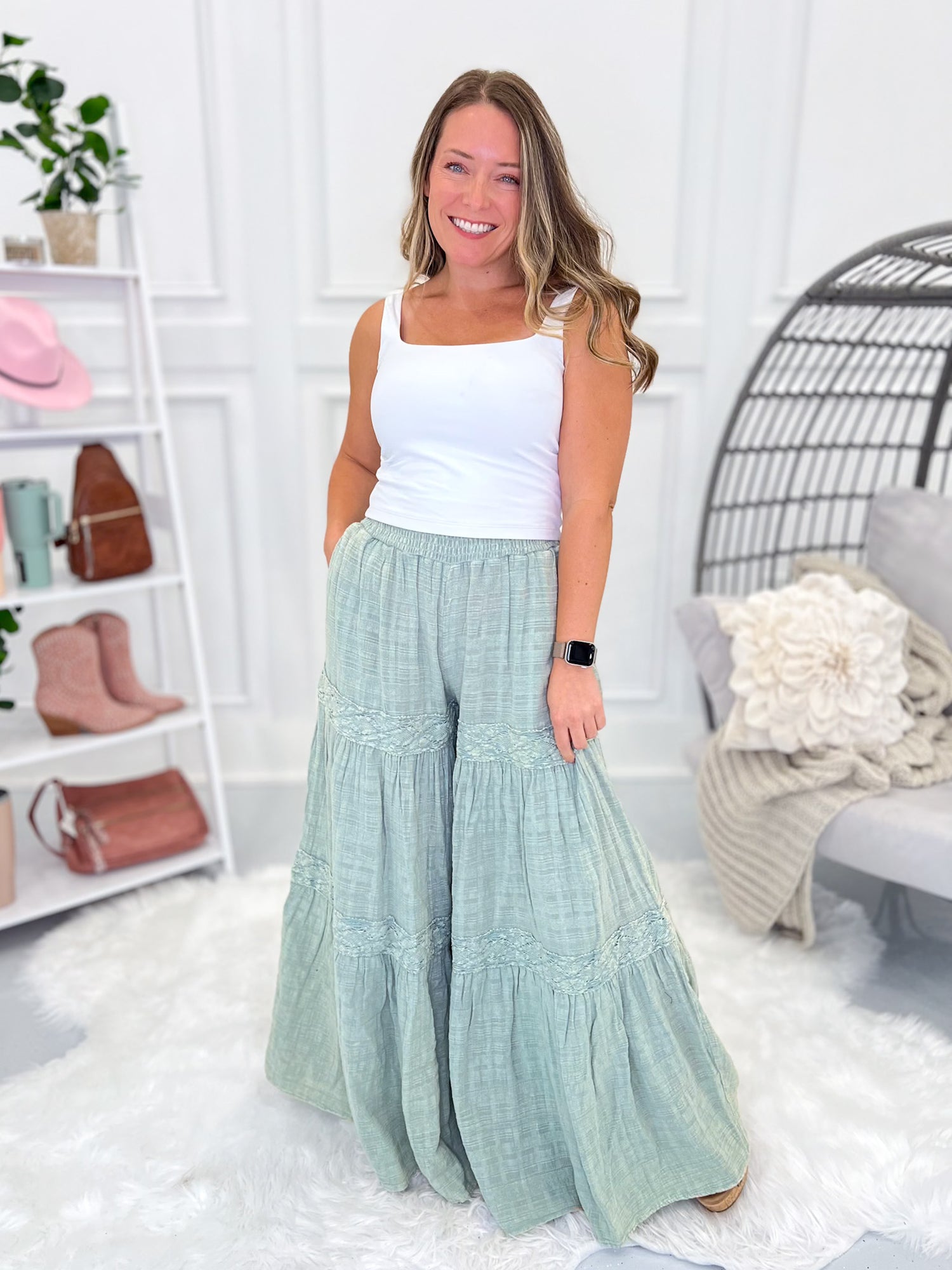 Relaxed and free-spirited, these pants are made for easy days and good vibes. Pair them with a simple tank or graphic tee for casual outings, or dress them up with a crochet top and wedges for a boho-chic look you’ll love. The flowy wide-leg fit makes every outfit feel effortless!