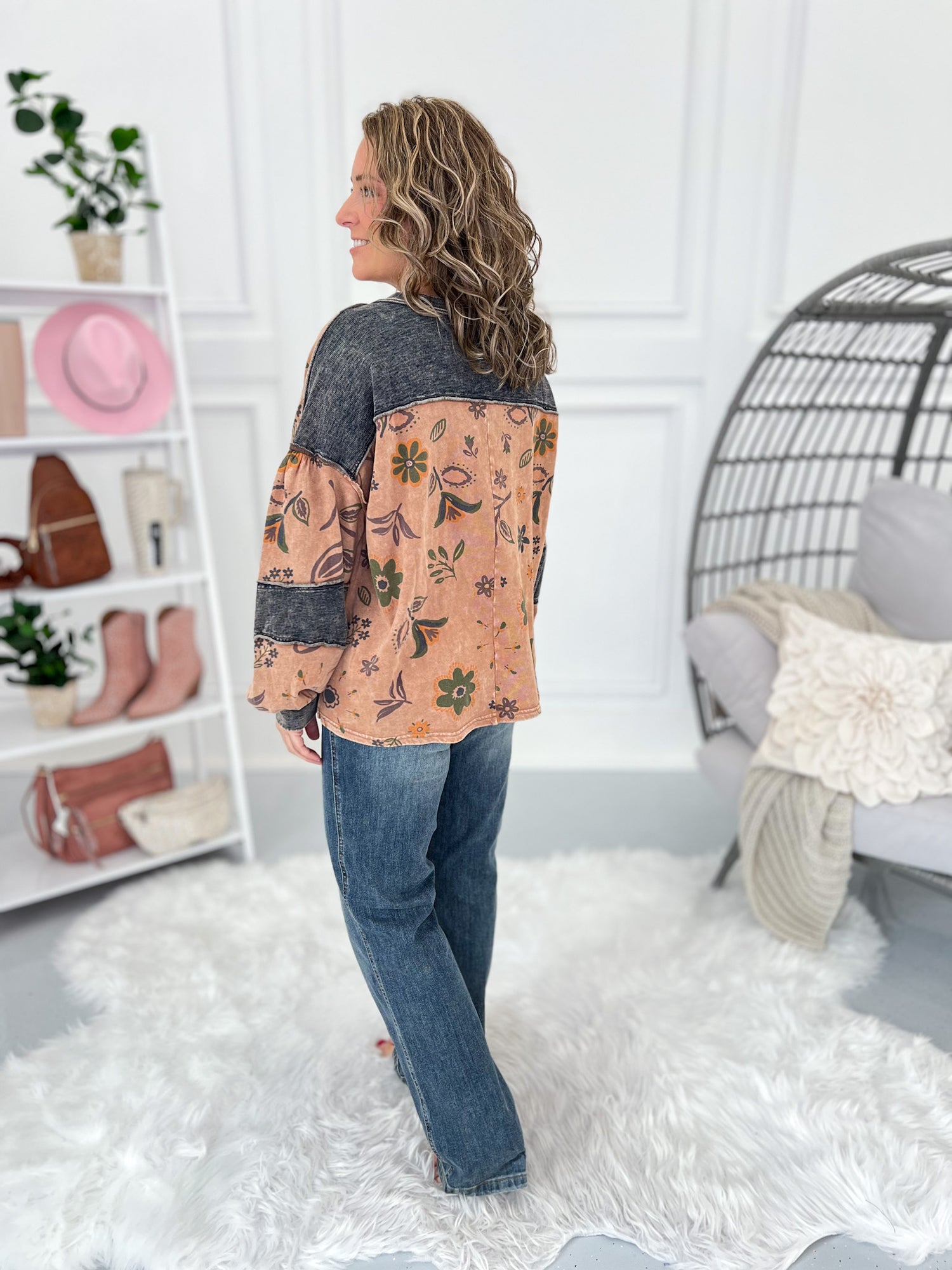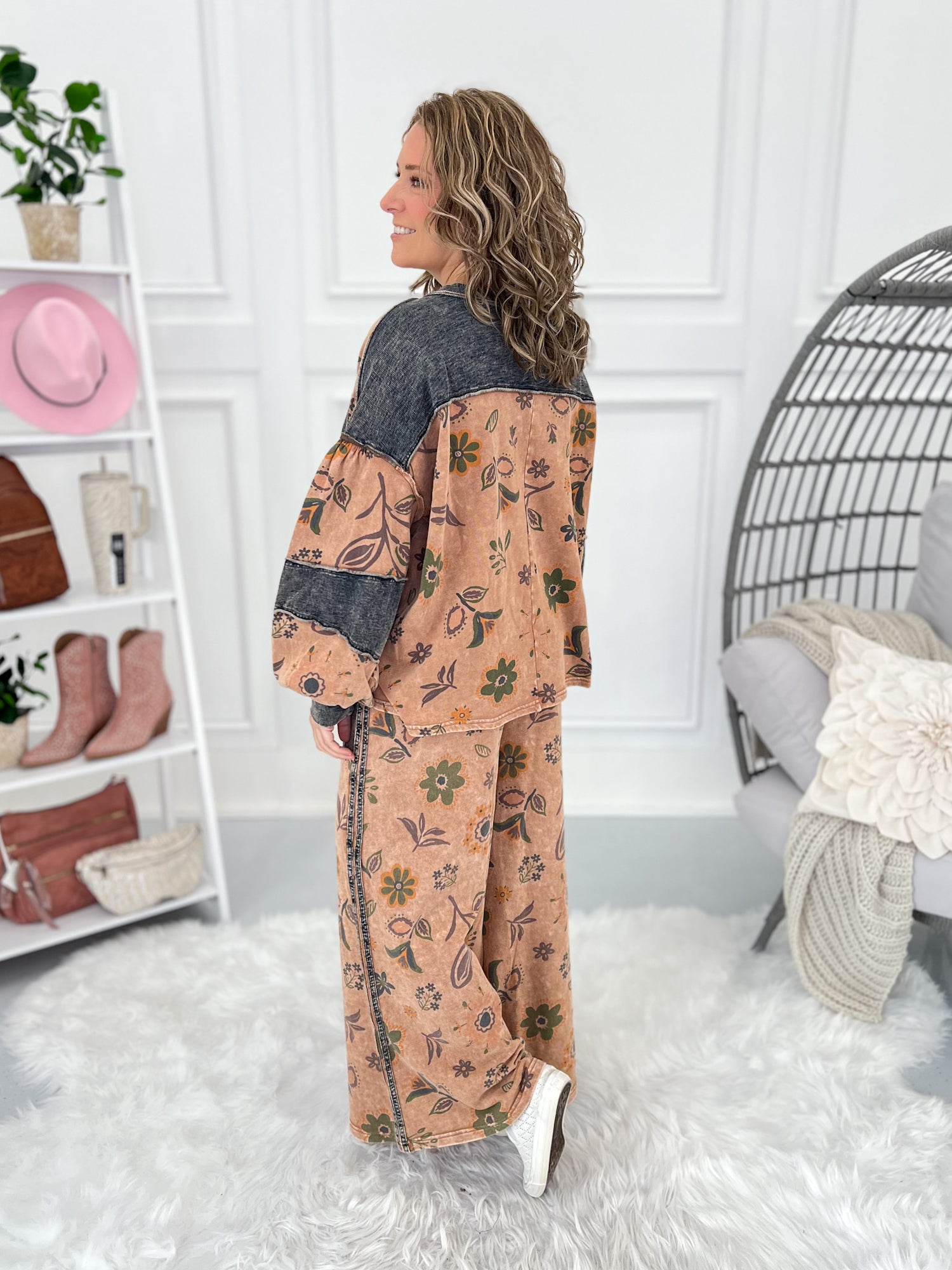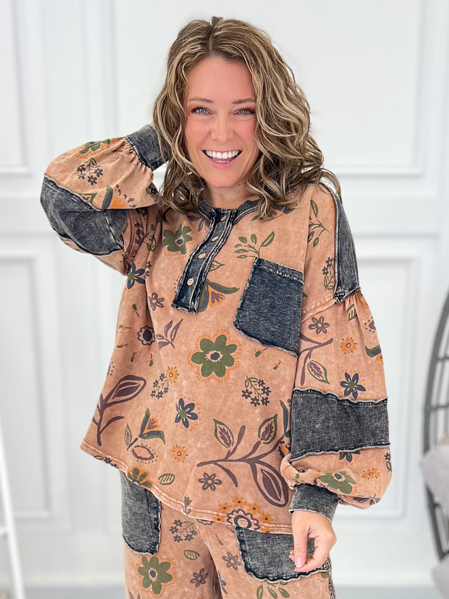 This mineral-wash pullover has the perfect blend of boho charm and relaxed comfort. Style it with the matching pants for a coordinated set or throw it on with denim for that lived-in boutique look.