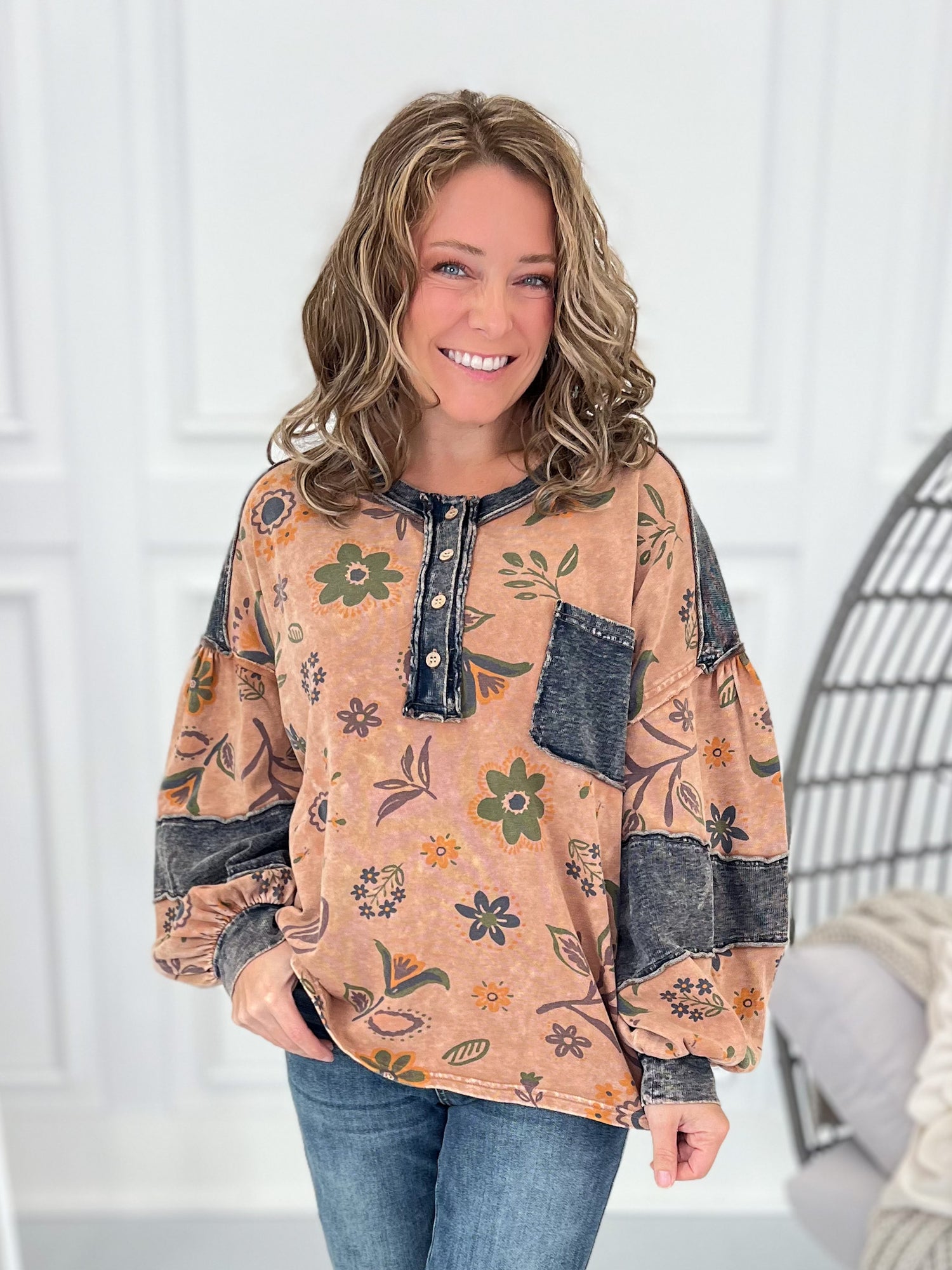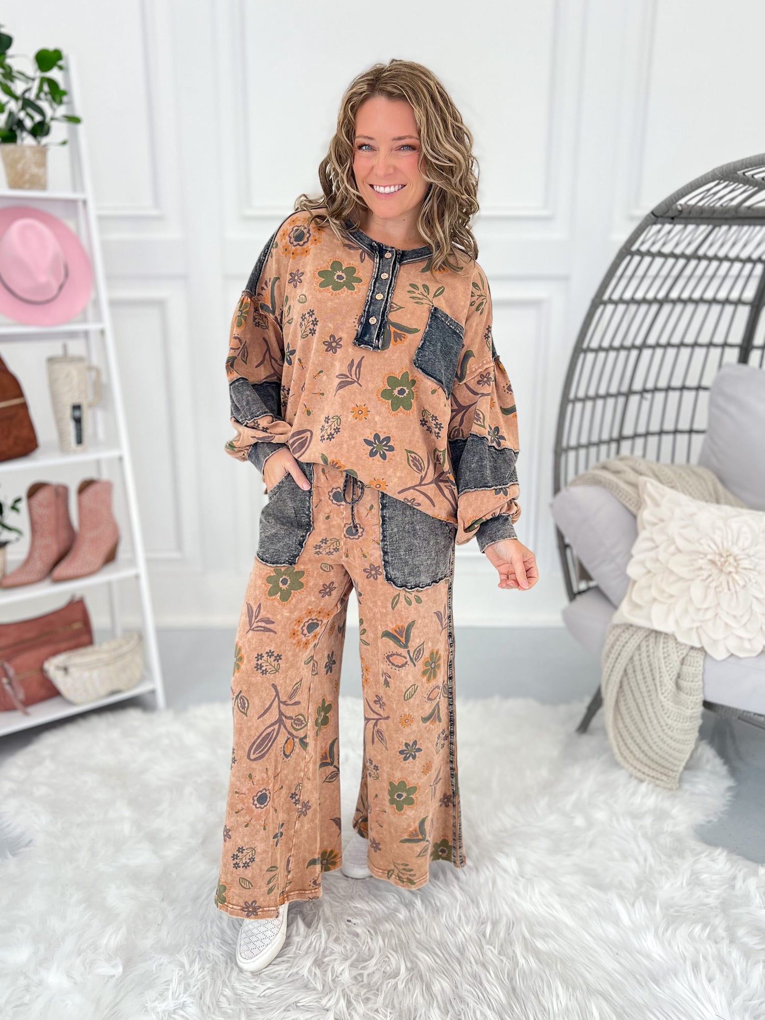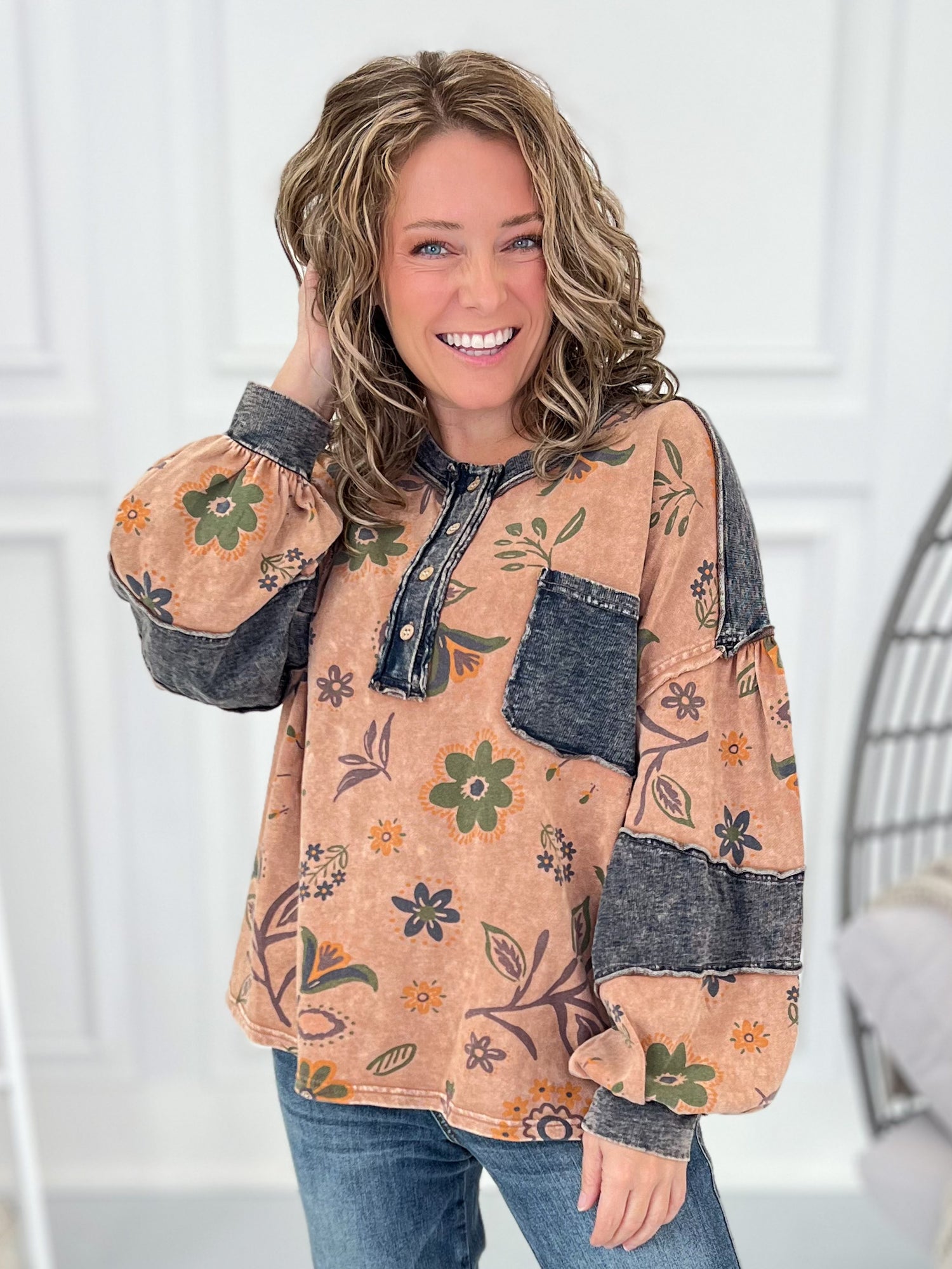This mineral-wash pullover has the perfect blend of boho charm and relaxed comfort. Style it with the matching pants for a coordinated set or throw it on with denim for that lived-in boutique look.