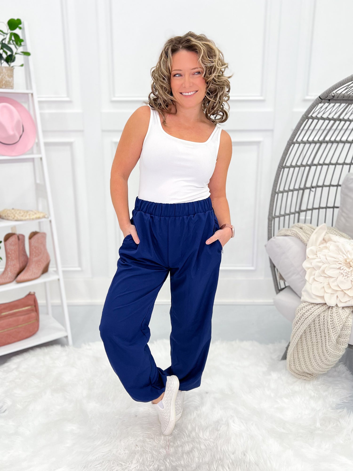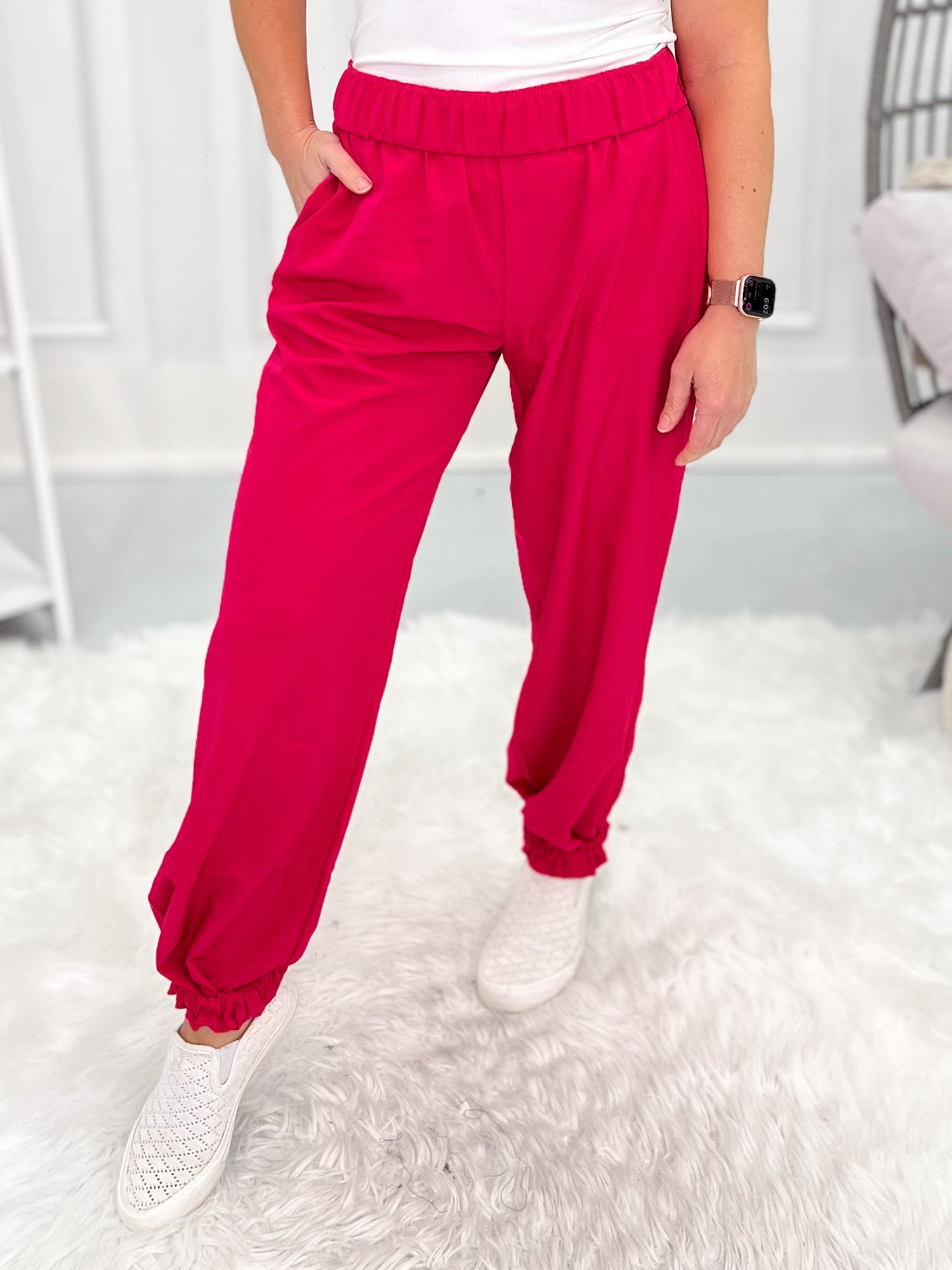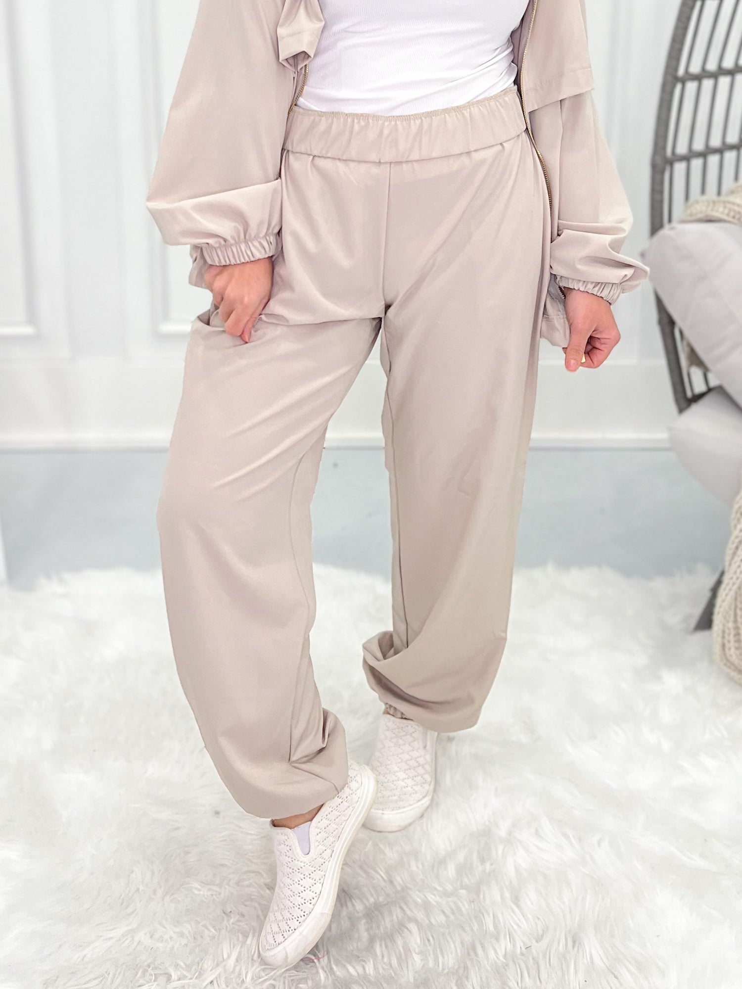• Easy Pull-On Joggers: Comfy waistband with deep zip closure pockets and a cuffed elastic ankle for that sporty vibe.