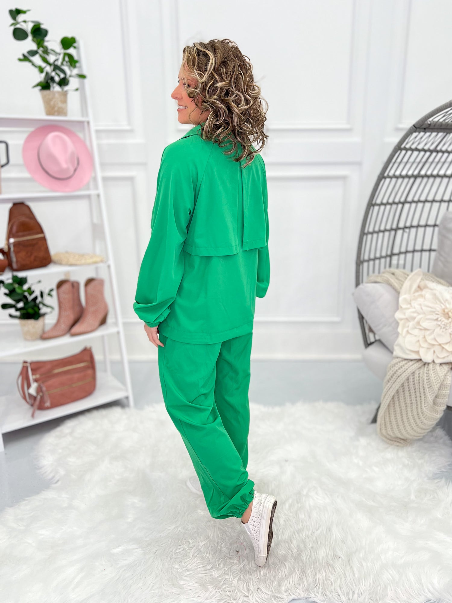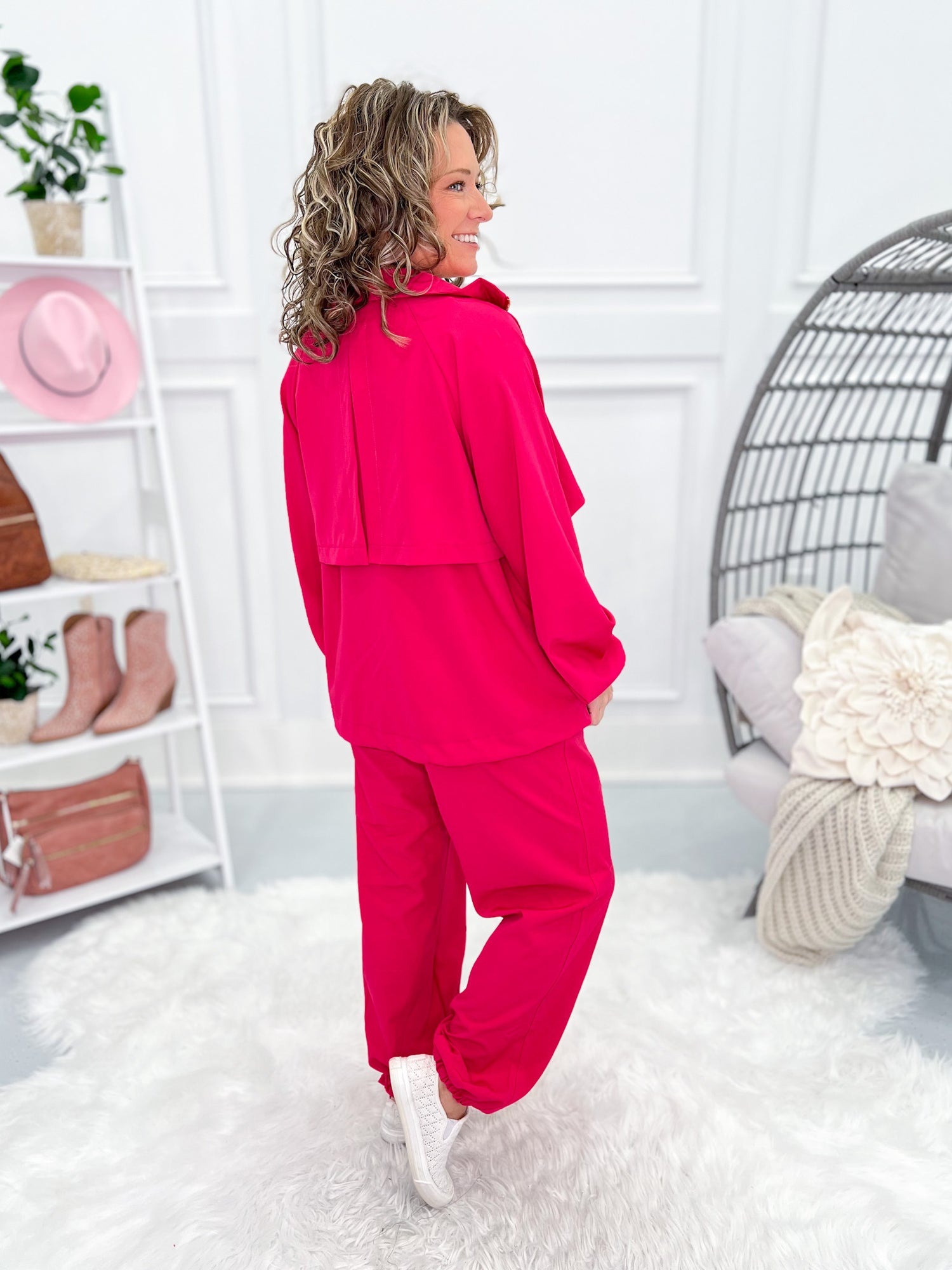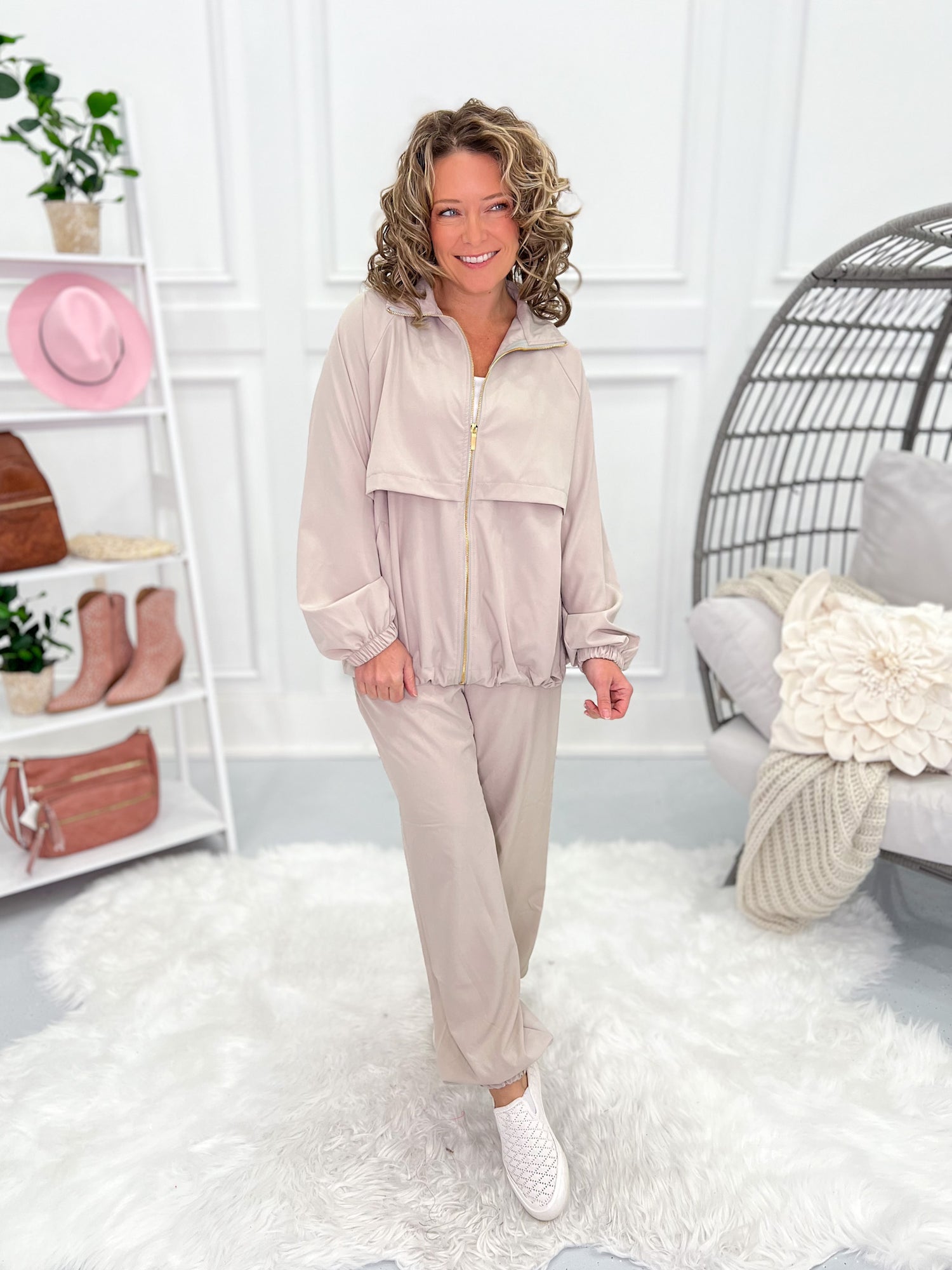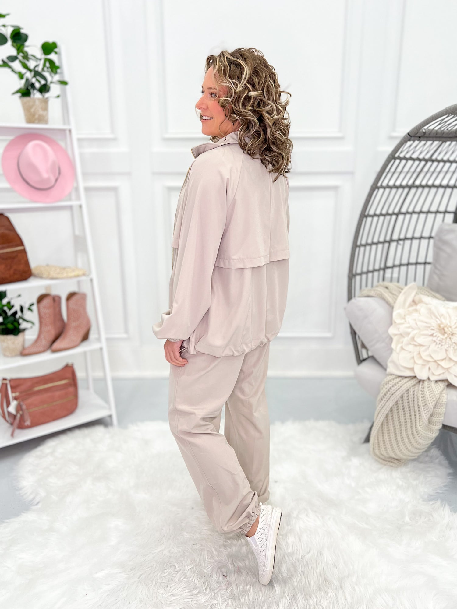 Busy babes, this one’s for you. The Hit My Stride Matching Set from Dear Scarlett is that lightweight windbreaker magic that looks put-together but feels like you’re wearing “I’m comfy” clothes. Wear it as a set for instant sporty-chic, or mix the jacket with denim and the joggers with tanks and tees for easy everyday outfits.