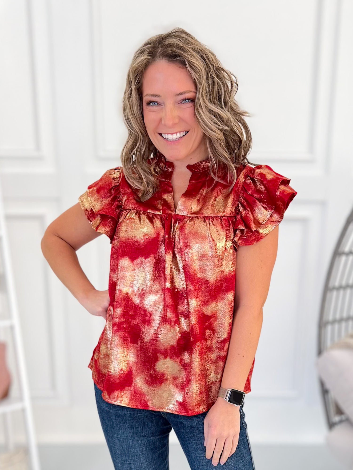 - Ruffled Flutter Sleeve: Soft and feminine with plenty of movement.
