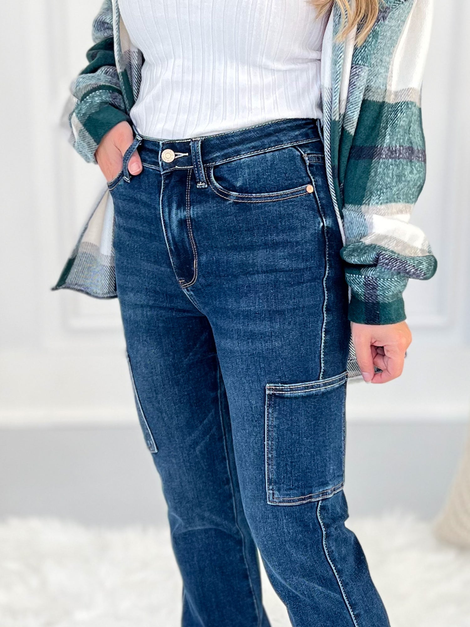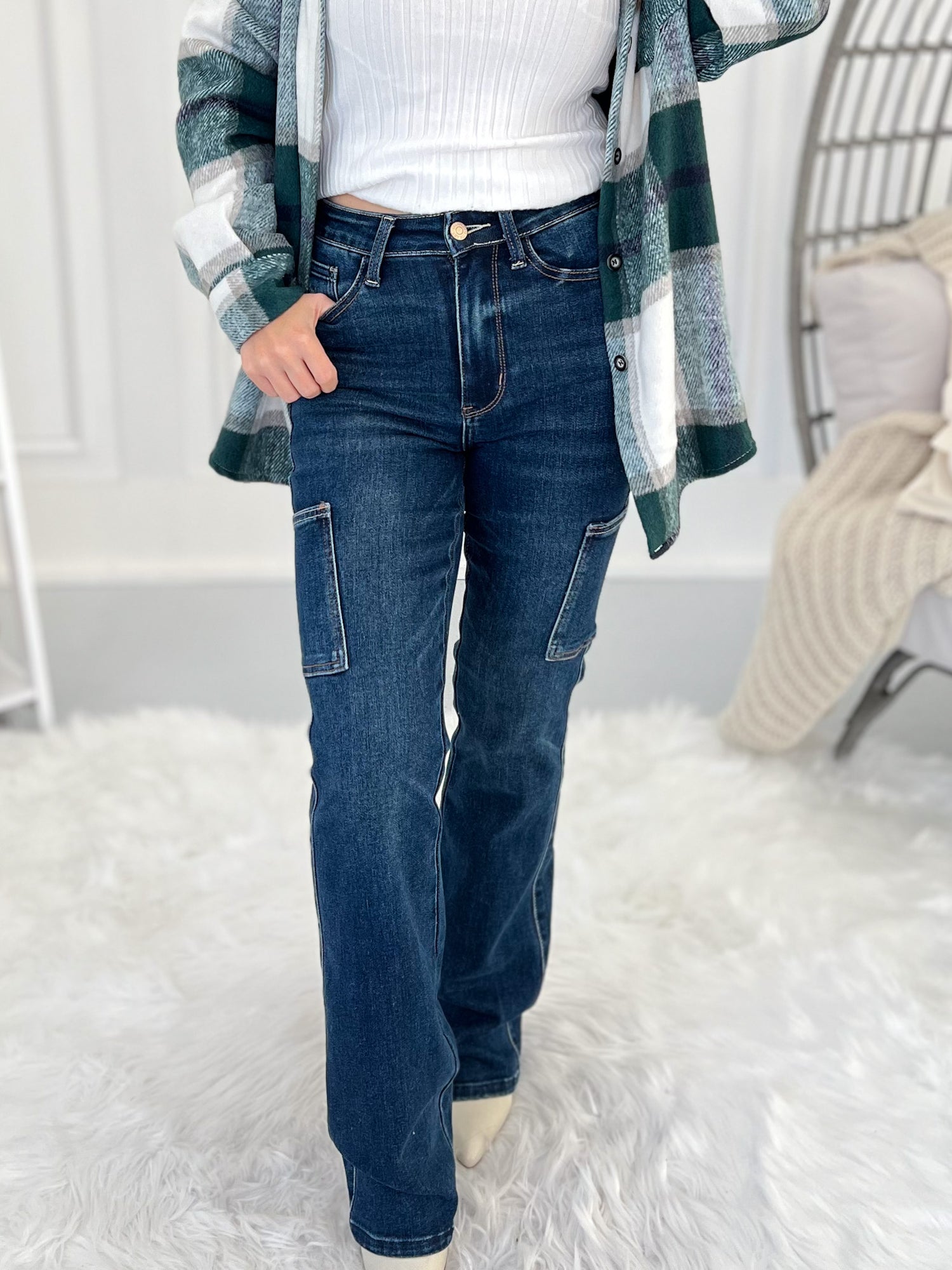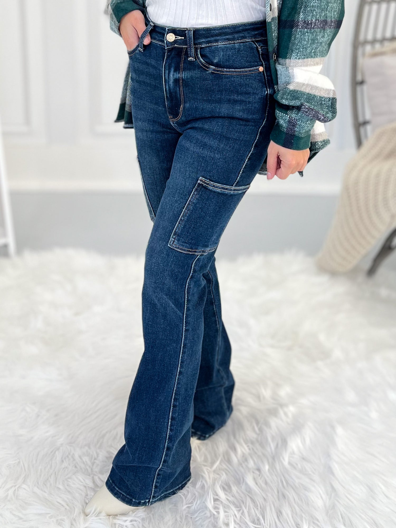We're loving the huge trend of cargo jeans right now, but loving even more that Judy Blue combined them with a sleek, bootcut silhouette! These stunners are so dang flattering with a deep, dark wash and a slimming effect at the knee. The no-bulk cargo pocket gives these jeans a unique style while still being a pair you can rock anytime, any place. And it goes without saying... but of course you'll love the Judy Blue stretchy fit and feel.