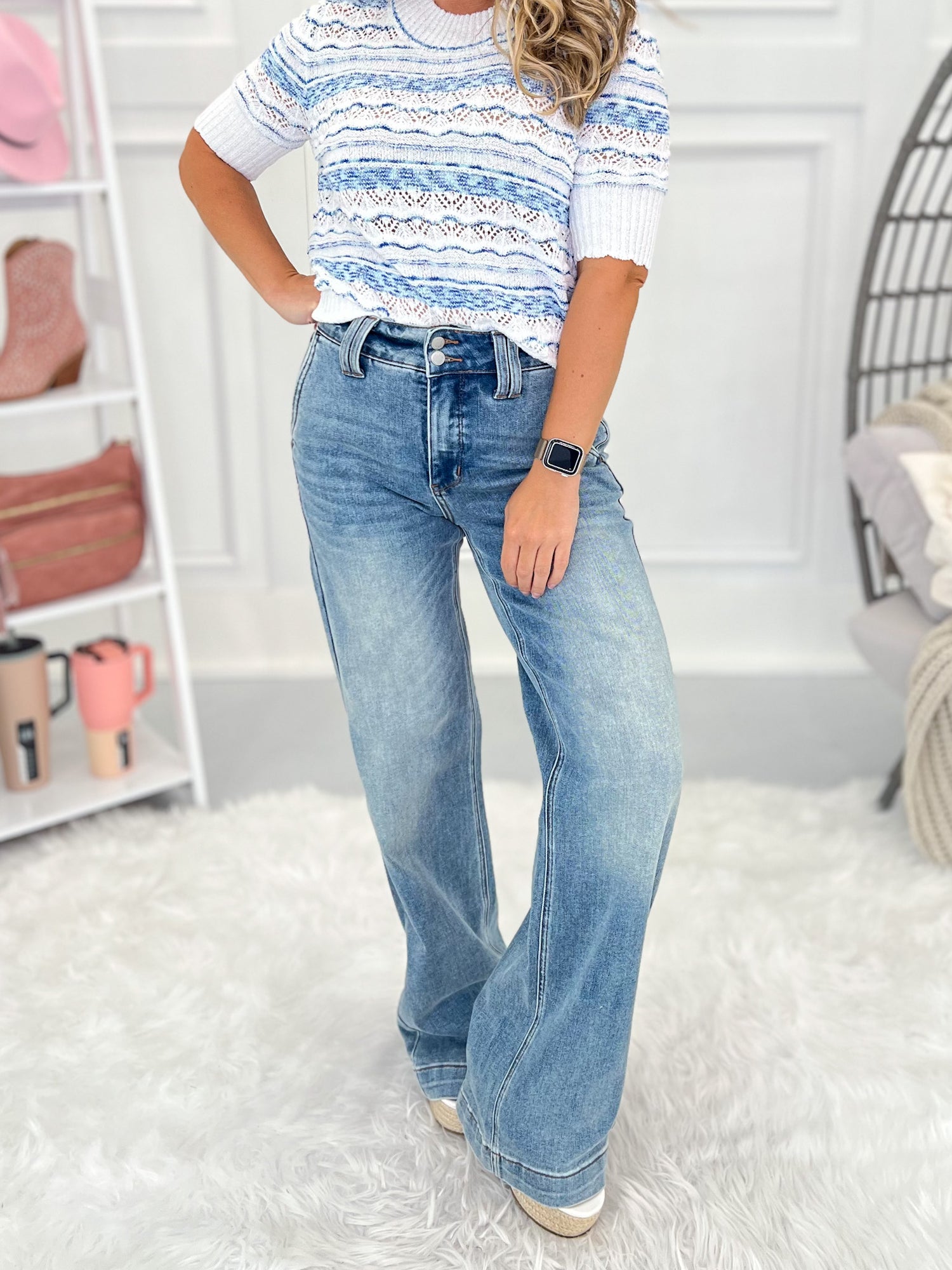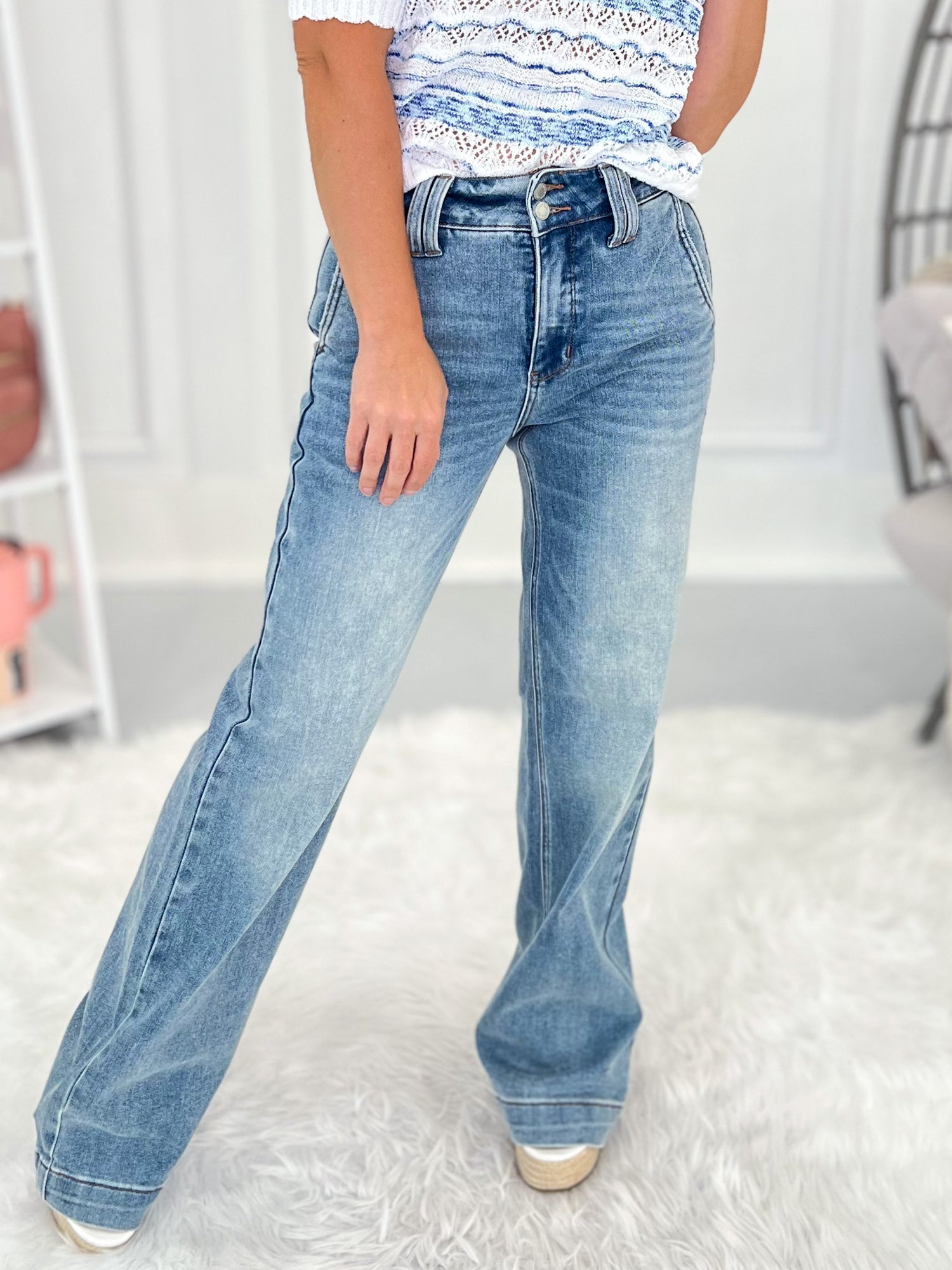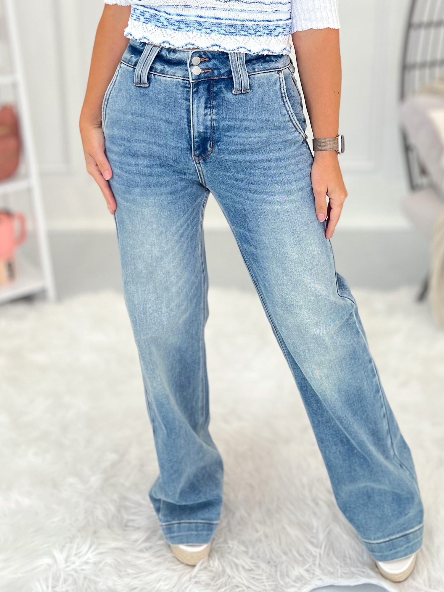 Two For The Show - Judy Blue Double Button Wide Leg Jean