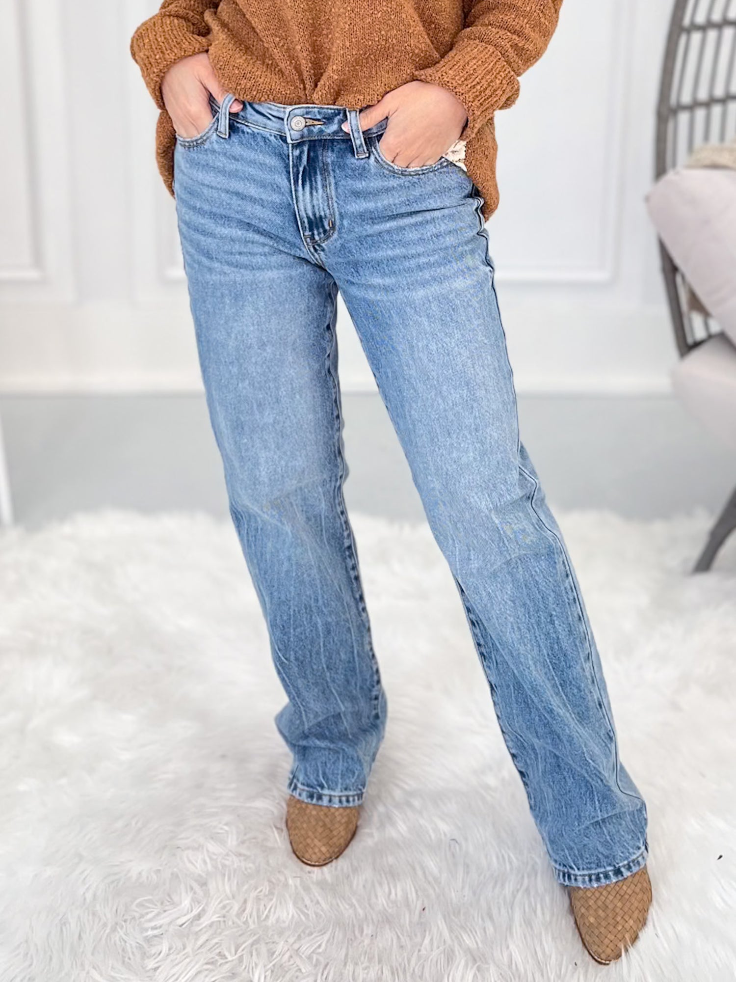 To get your perfect fit, first, let's find your true Judy Blue size. This will be your starting point for all Judy Blue jeans. This brand is generously cut, so you'll find your true Judy Blue size by taking your even, department store pant size and subtracting a number. Once you have determined your true Judy Blue size, then take a peek at the product description of each pair of jeans to see how we recommend sizing! This part is super important - they all fit and stretch a bit different! Lastly - don’t forget to check the item details to see the inseam, rise and fabric for each pair of jeans! Remember that rise is body type dependent (so a high-rise on a short torso may be a mid-rise on a long torso) and we all have multiple inseam preferences depending on the style of jeans we are shopping for!