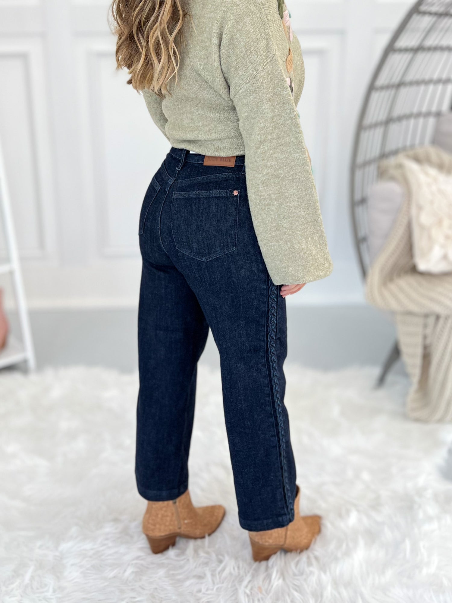 Short And Sweet - Judy Blue Braided Side Seam Cropped Wide Jeans