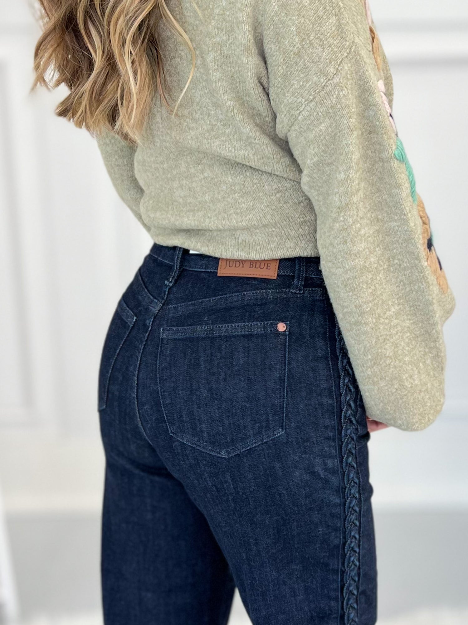 This fan fave Judy Blue crop is back and now with all the fall vibes! The super rich indigo, along with the braided side detail make these such an easy pair to dress up and wear on a date or simply add a flannel and head to the pumpkin patch! They are insanely stretchy and comfortable, but with amazing recovering that holds it's shape all day long. The trendy cropped length and wide leg silhouette look figure flattering on every body type too!