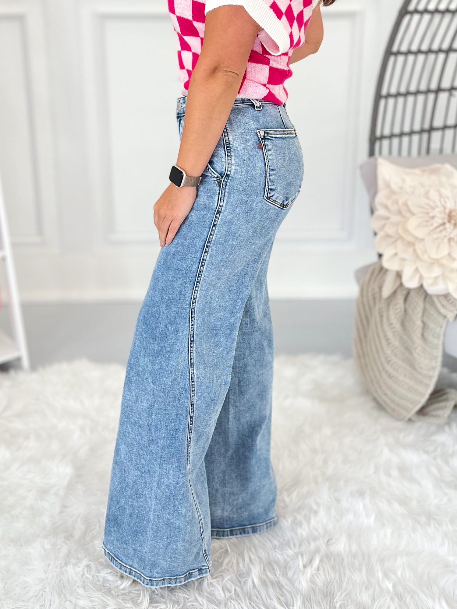 Game On - Judy Blue Stone Wash Retro Wide Leg Jean