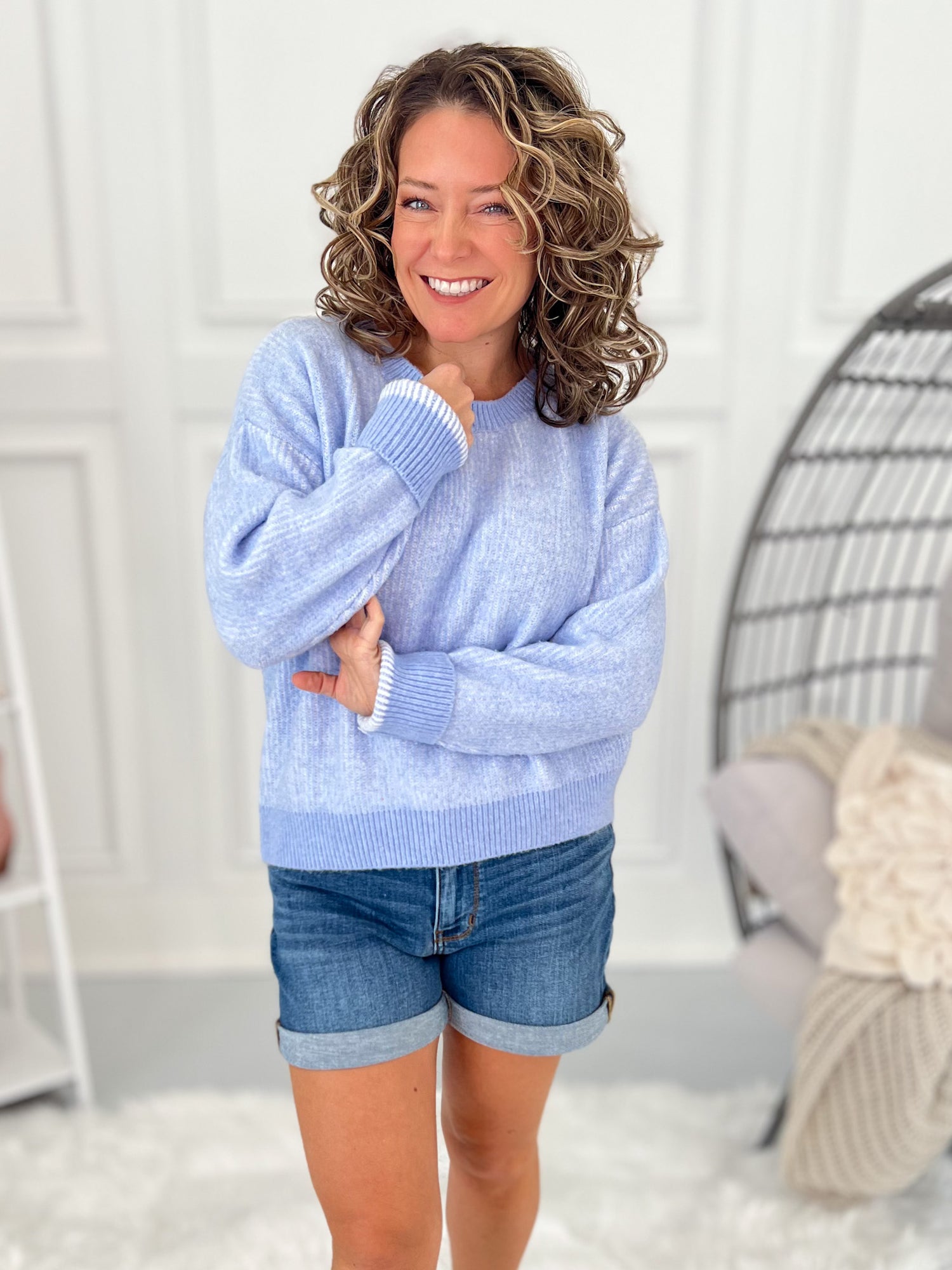 The Just In Case Sweater by Michelle Mae is one of those grab-it-and-go pieces you’ll reach for on repeat. Designed in the USA with amazing quality, this plush ribbed knit sweater features a bouncy stretch and ultra-soft brushed feel that’s cozy without being bulky. Pair it with denim shorts now or jeans and boots later — it’s that perfect in-between layer that always works.