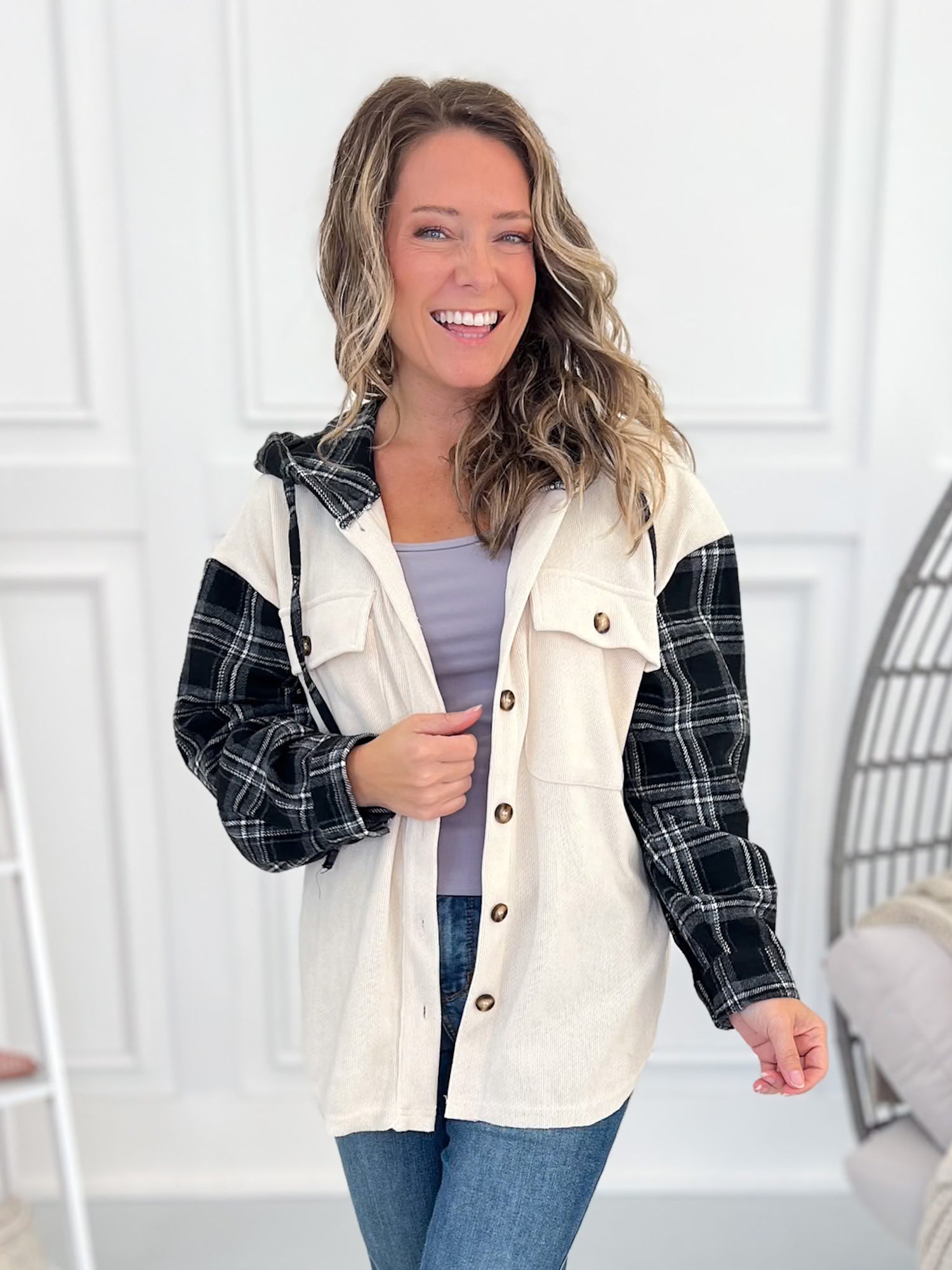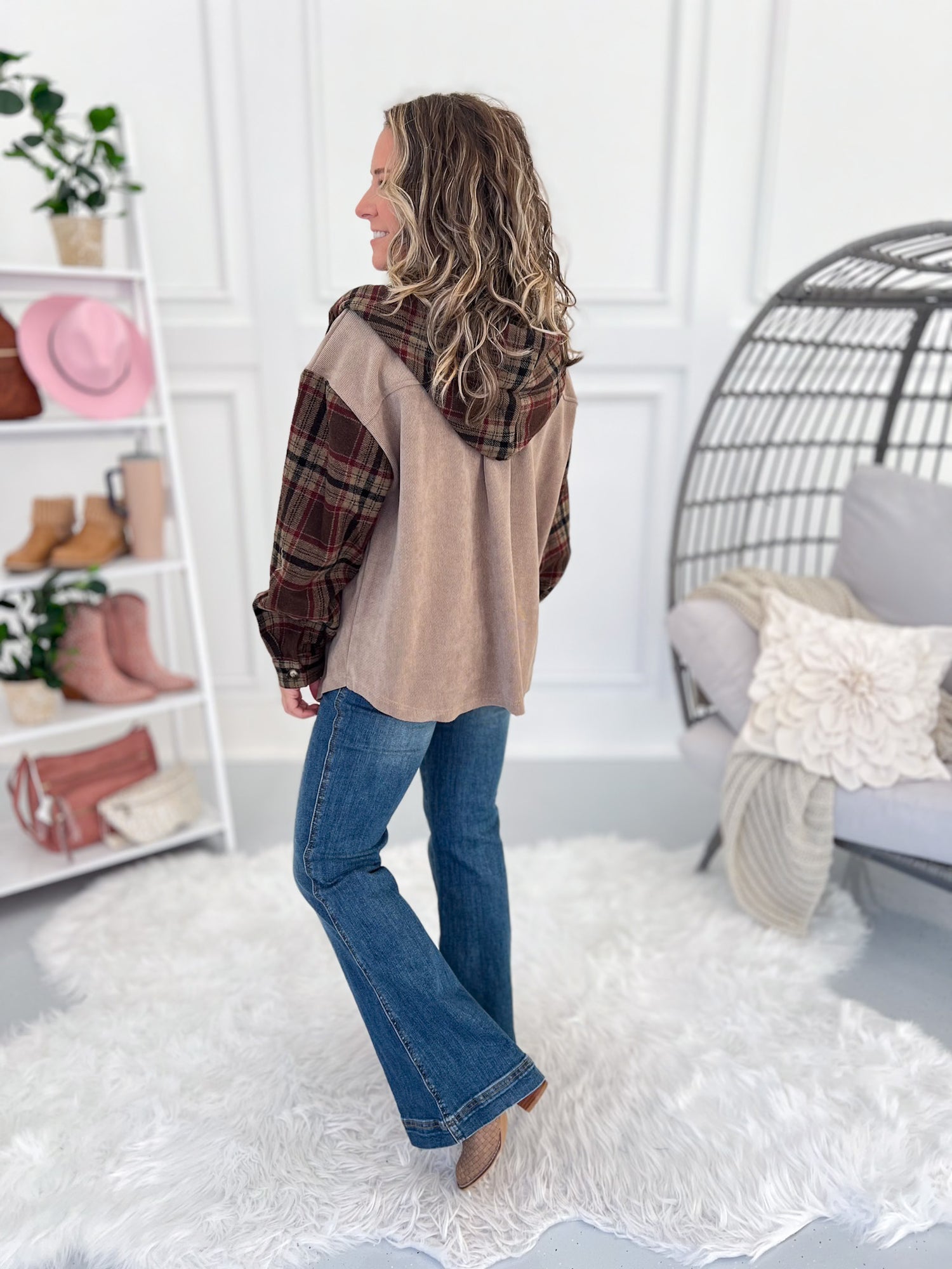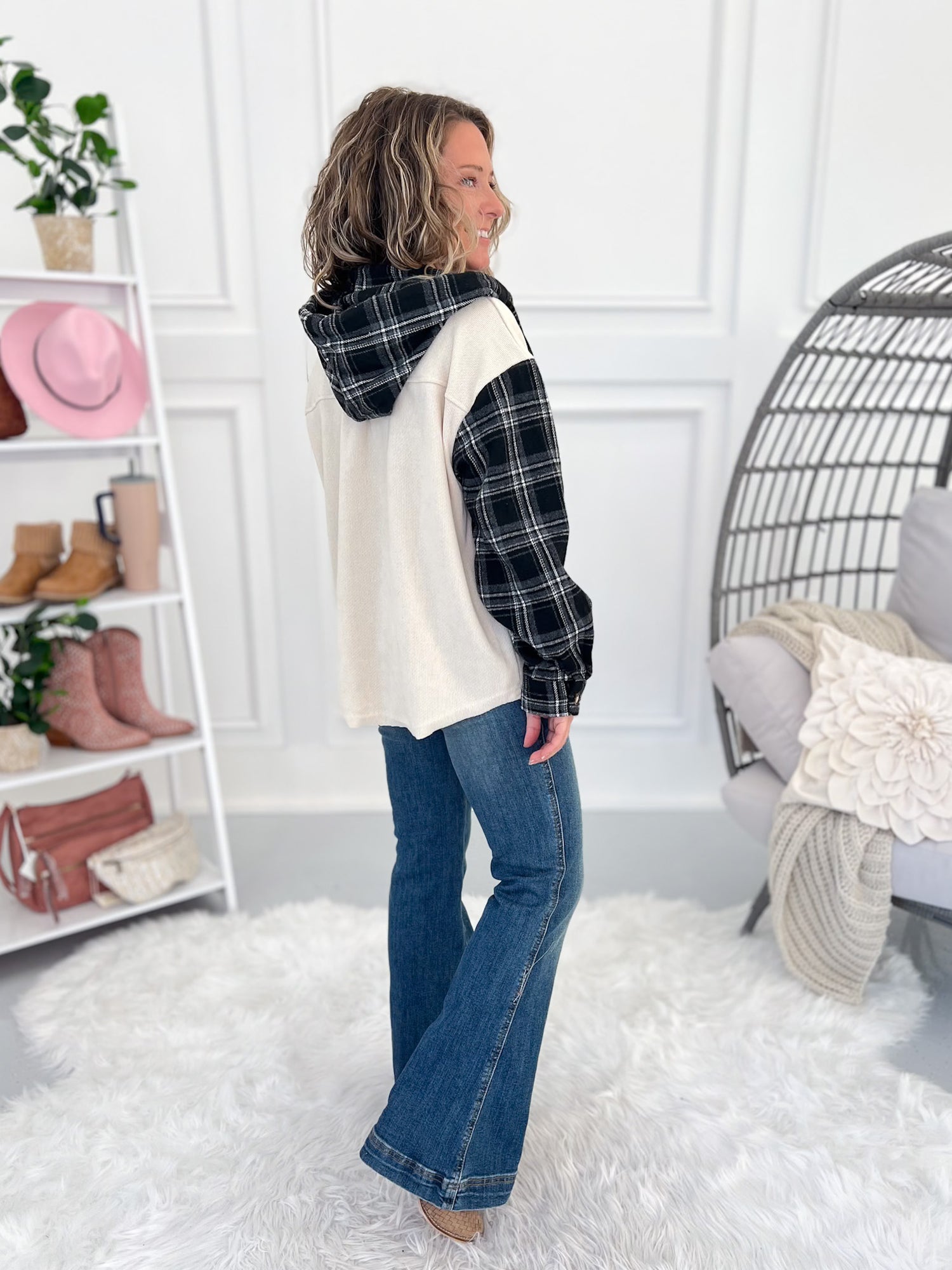 A layered look without the bulk and added effort. The soft, marshmallowy chenille body keeps you comfy, while the plaid flannel sleeves and oversized hood bring all the fall vibes. Style it with your favorite jeans or leggings for those nights you just want to look cute but stay cozy too.