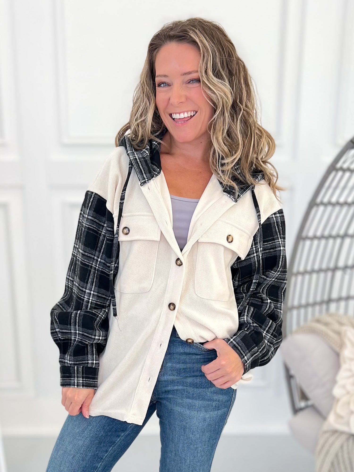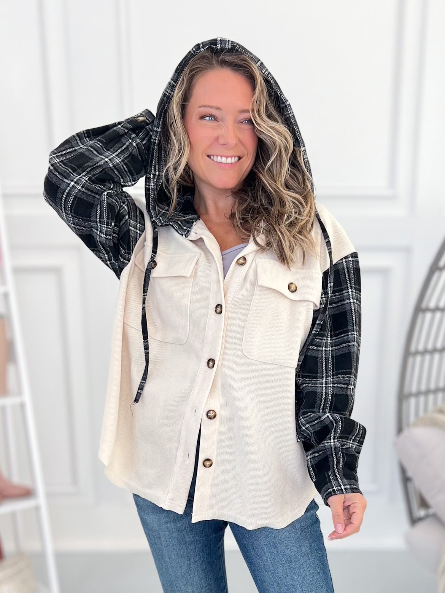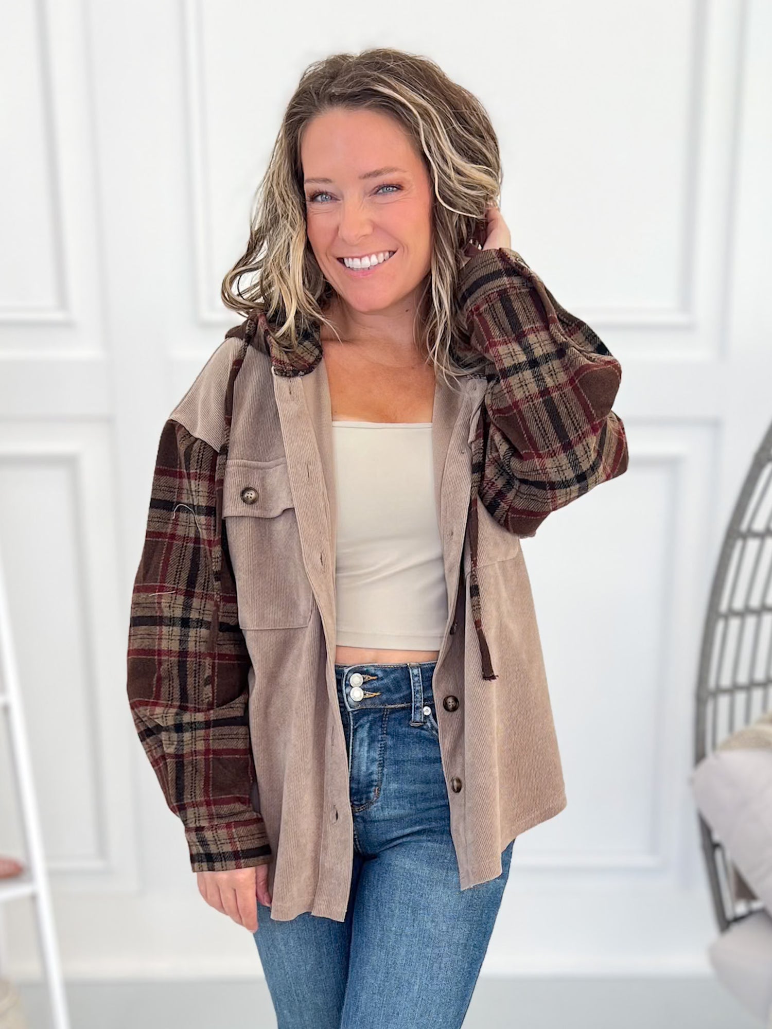 A layered look without the bulk and added effort. The soft, marshmallowy chenille body keeps you comfy, while the plaid flannel sleeves and oversized hood bring all the fall vibes. Style it with your favorite jeans or leggings for those nights you just want to look cute but stay cozy too.