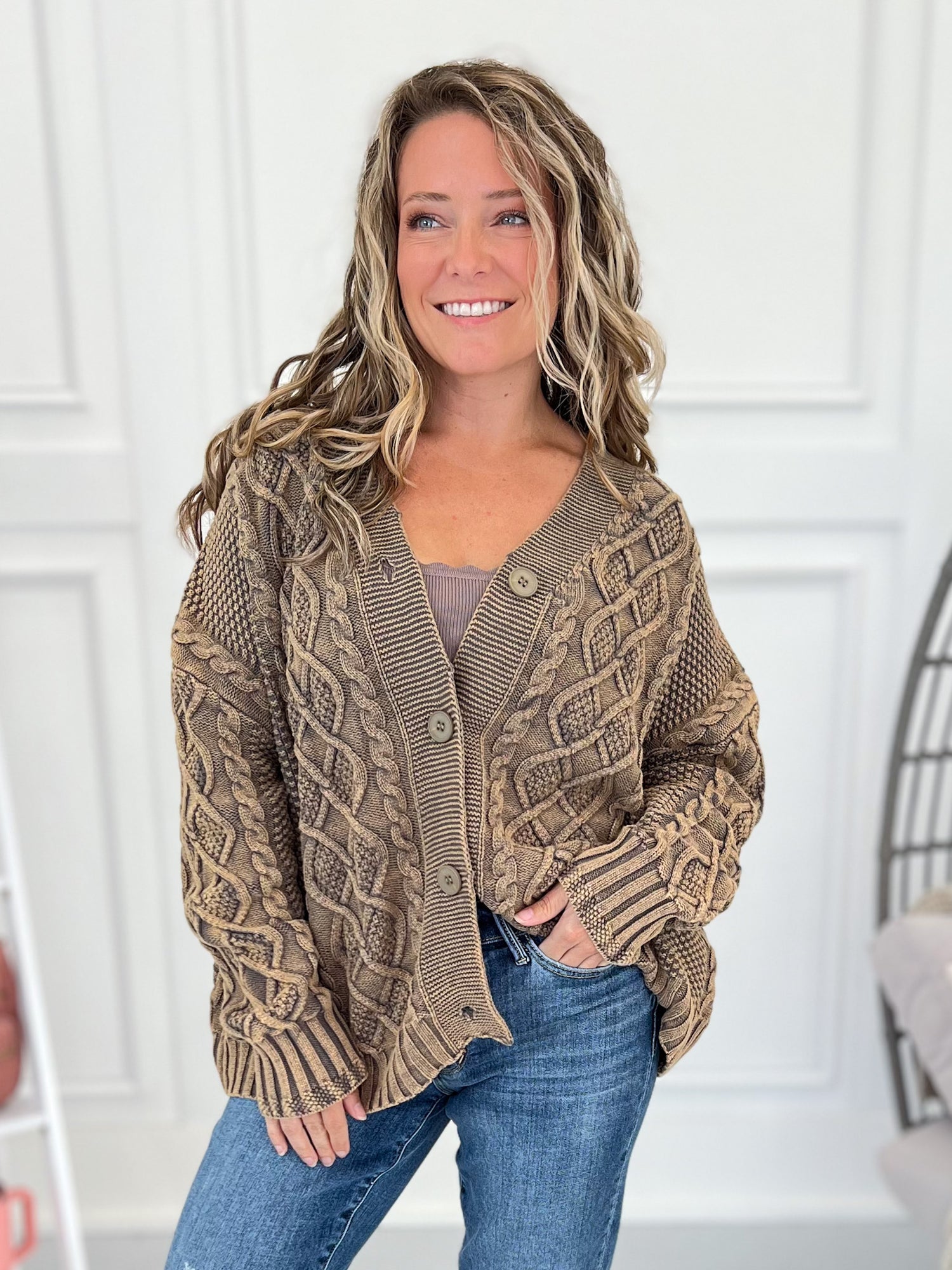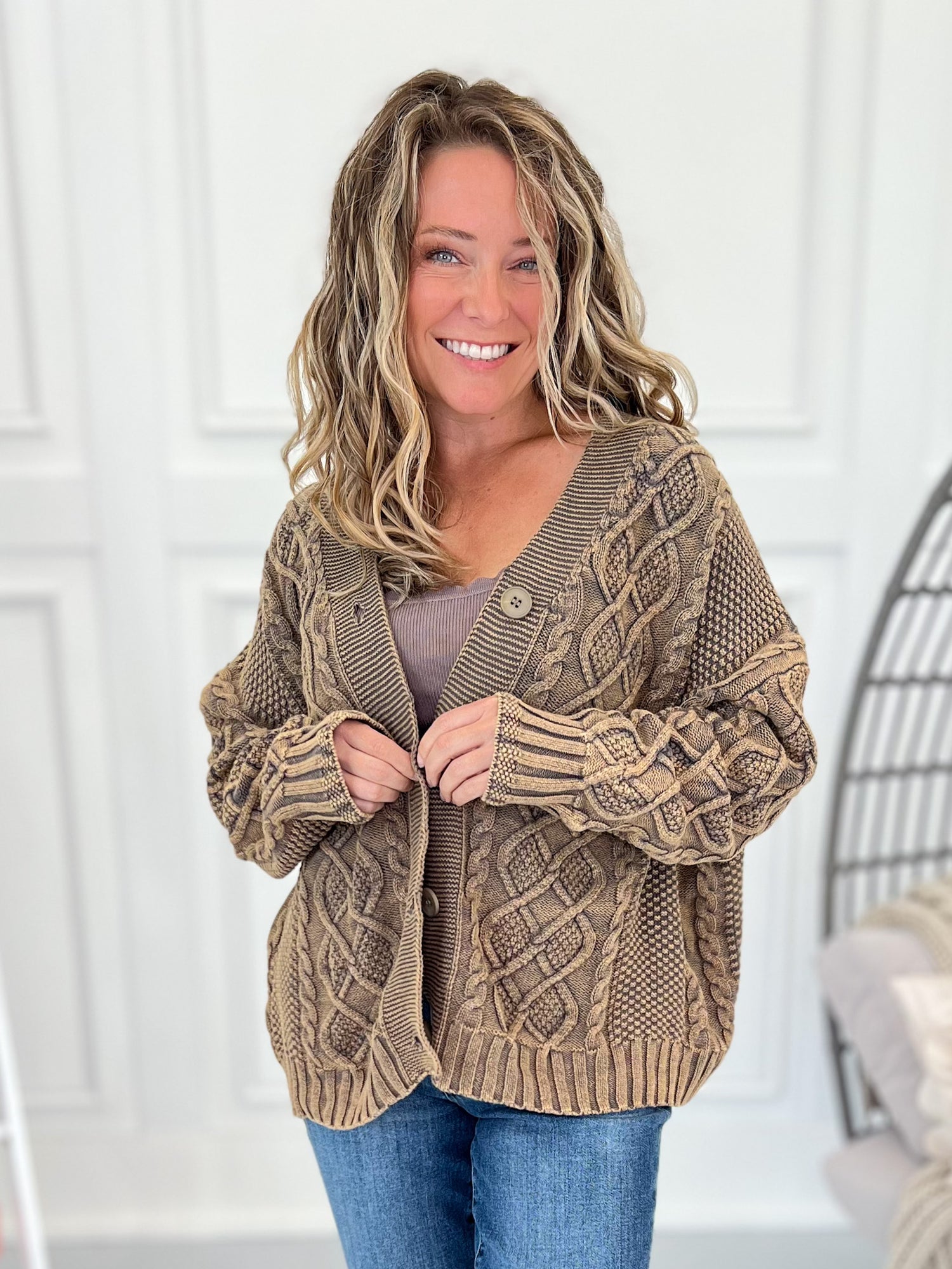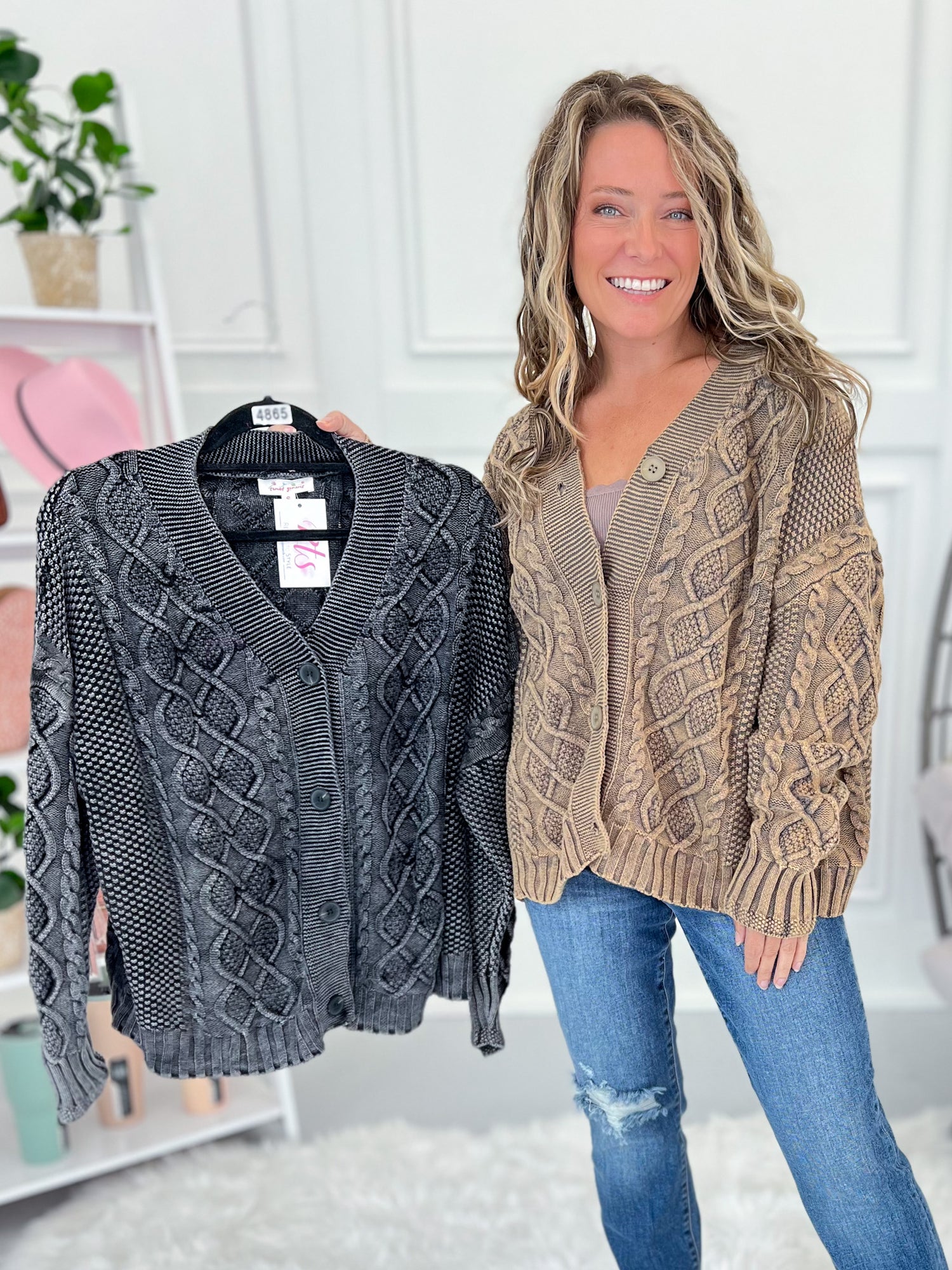 Cozy up in this washed grandpa-style cardigan that’s equal parts chic and relaxed. With its textured knit, button front, and two dreamy neutrals, it’s an effortless layer you’ll grab on repeat. Pair with jeans and a cami for casual days or throw over a dress for that laid-back, boutique vibe.