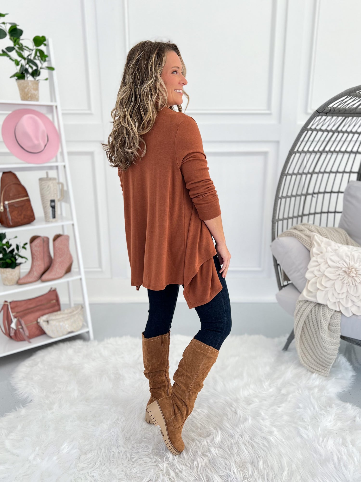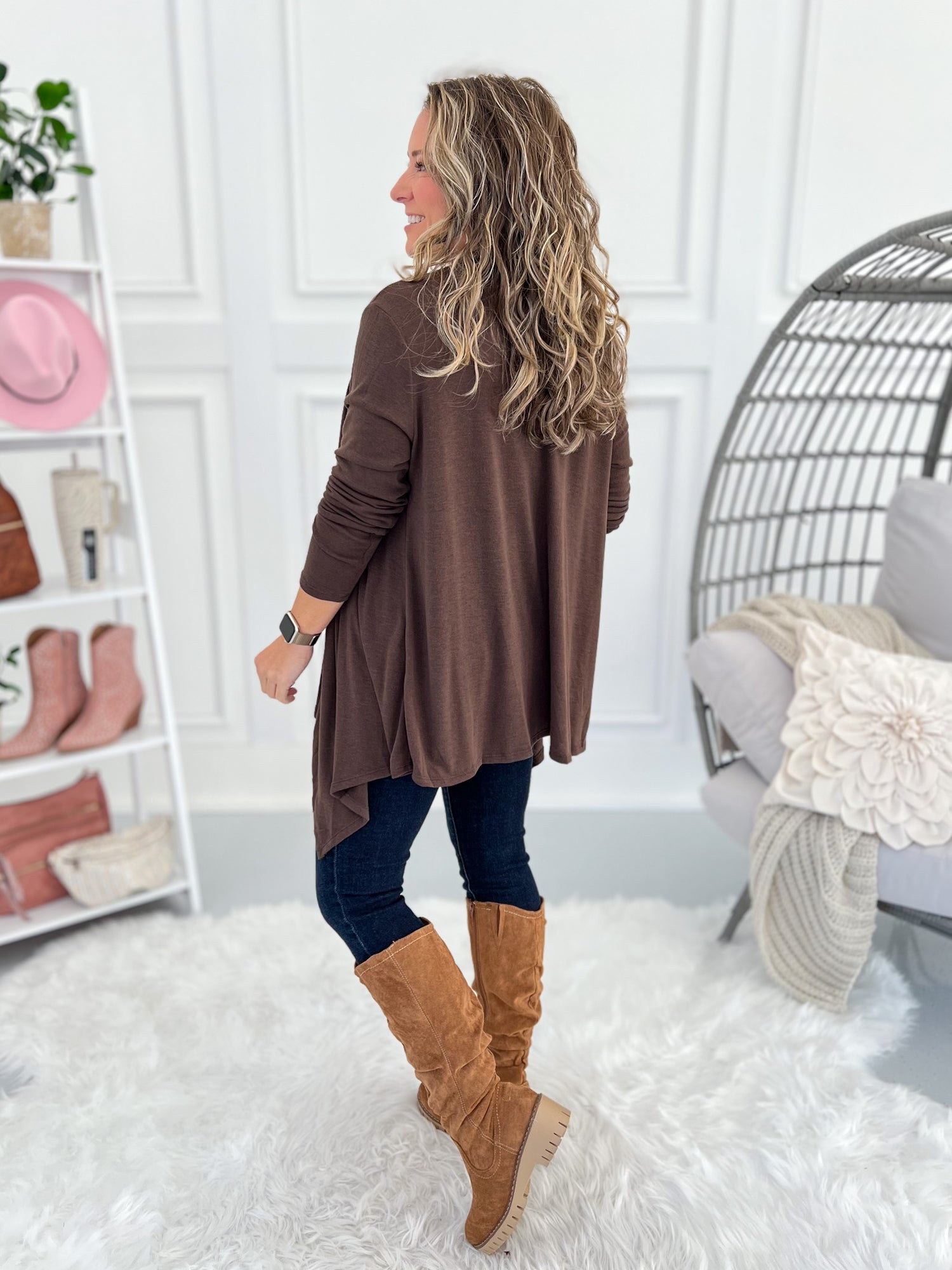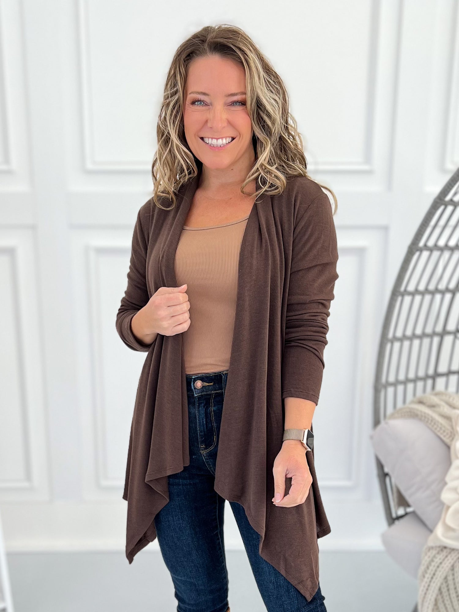 When your outfit needs that effortless finishing touch, this cardigan has your back. Lightweight, drapey, and crazy soft — it’s perfect for layering without the bulk. Pair it with a tank and jeans for an easy daytime look or over a dress when you need that extra bit of cozy polish.