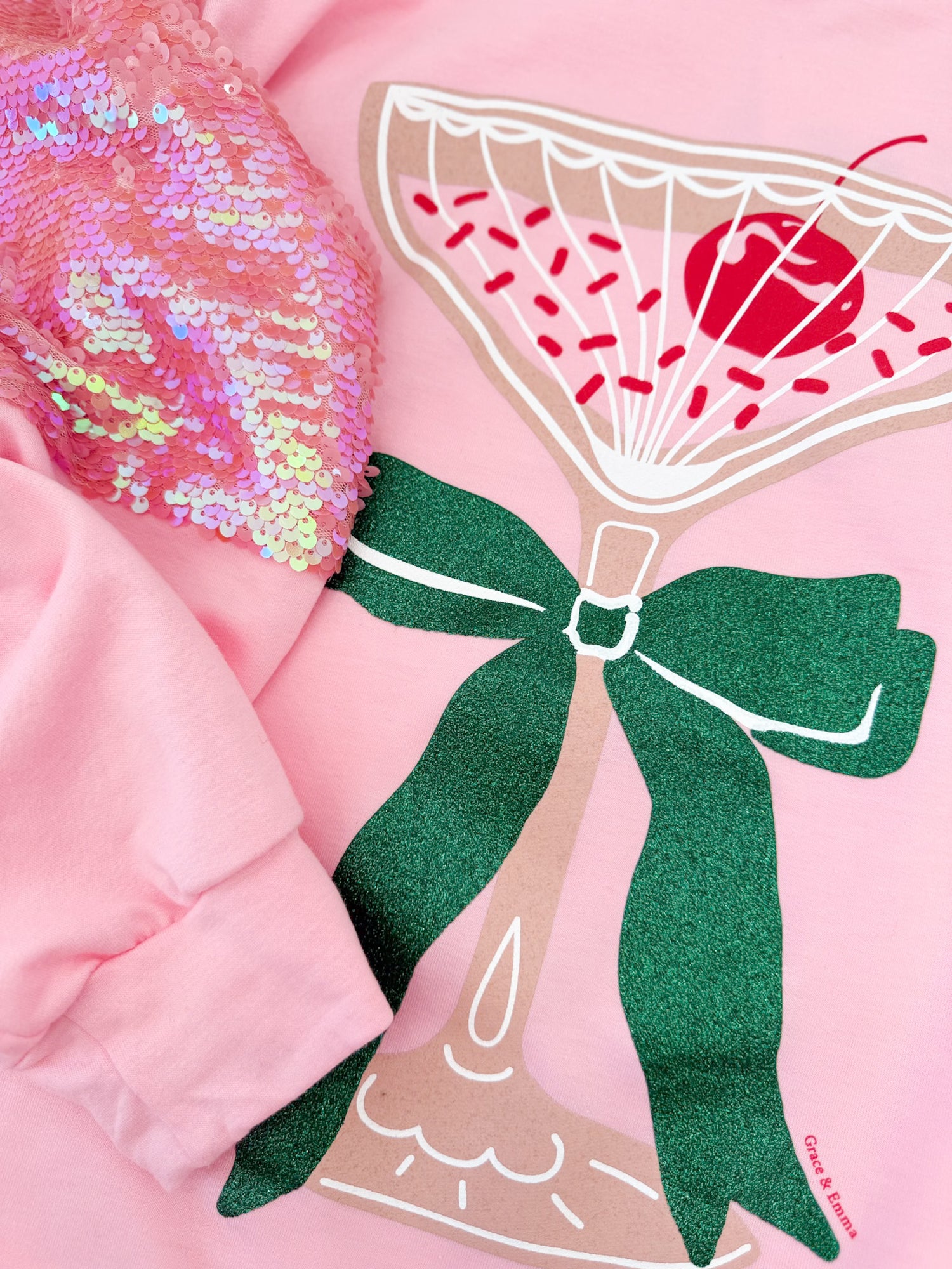 Cheers to holiday happy hours! Mistletoe Sippin’ serves flirty festive fun with a glitter screenprint and party-perfect sequin sleeves. The terry knit keeps it comfy, the sparkle keeps it extra—just add denim and a bold lip for instant “meet-me-under-the-mistletoe” energy.