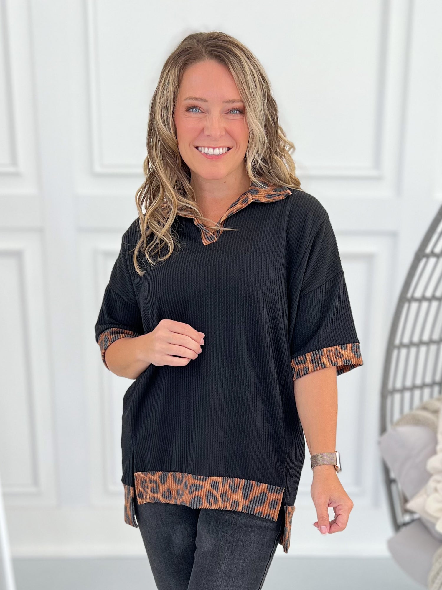 Take a walk on the wild side with this playful top! Soft, stretchy, and easy to style, it’s the perfect throw-on piece that still makes a statement. Pair with black denim and boots for an edgy look, or keep it casual with leggings and sneakers.