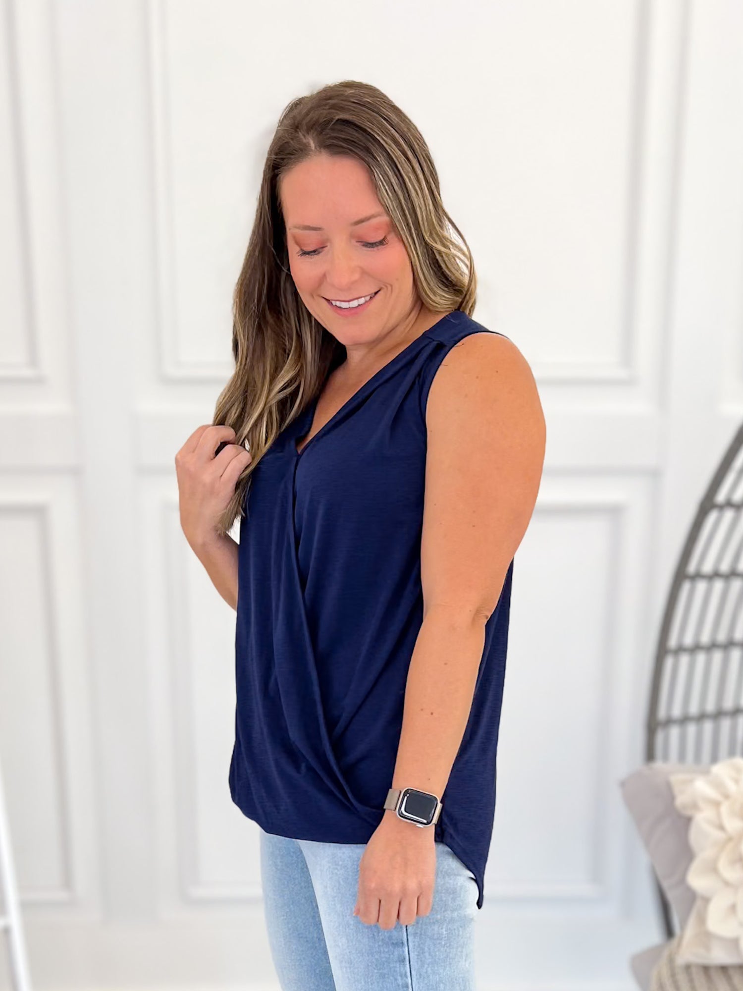 This classy top is great for the office, easily layered and comes in the best color selection to mix and match with all of your favorite bottoms! Pair with a blazer and slacks for some work style, or simply add to your favorite jeans for date night. You'll love the ease of styling this top, especially with it's fuss-free fabric!