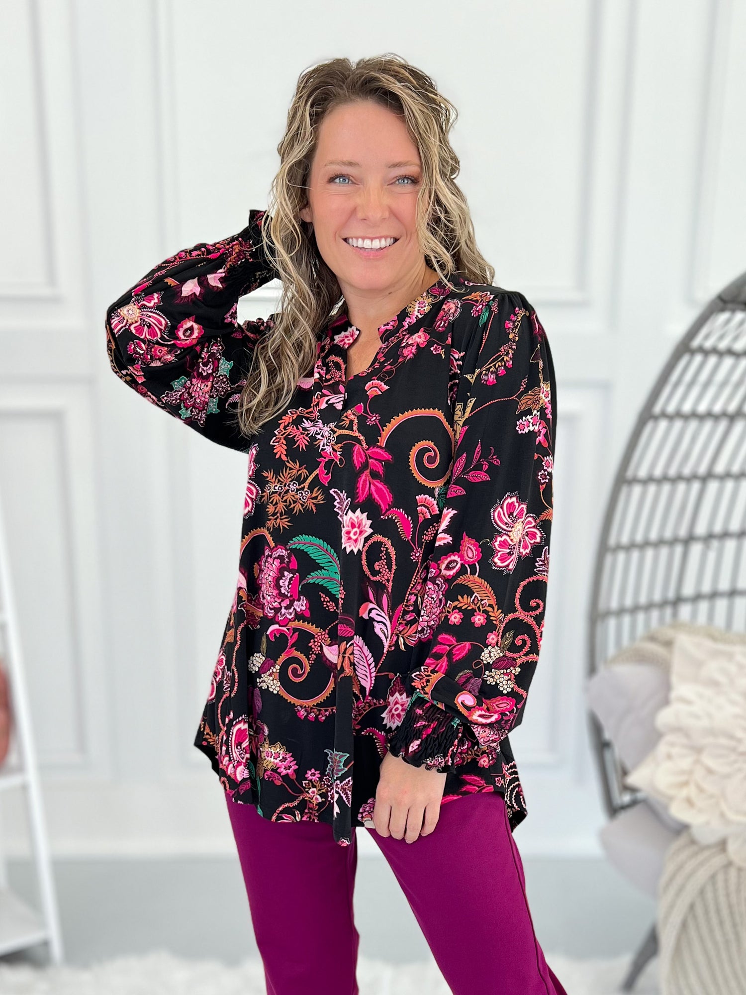 Add a pop of color with this Smocked Lizzy Top in vibrant multi florals. The easy-care fabric and flattering fit make it a must-have. Pair with bright slacks for work or keep it casual with denim and a crossbody bag.