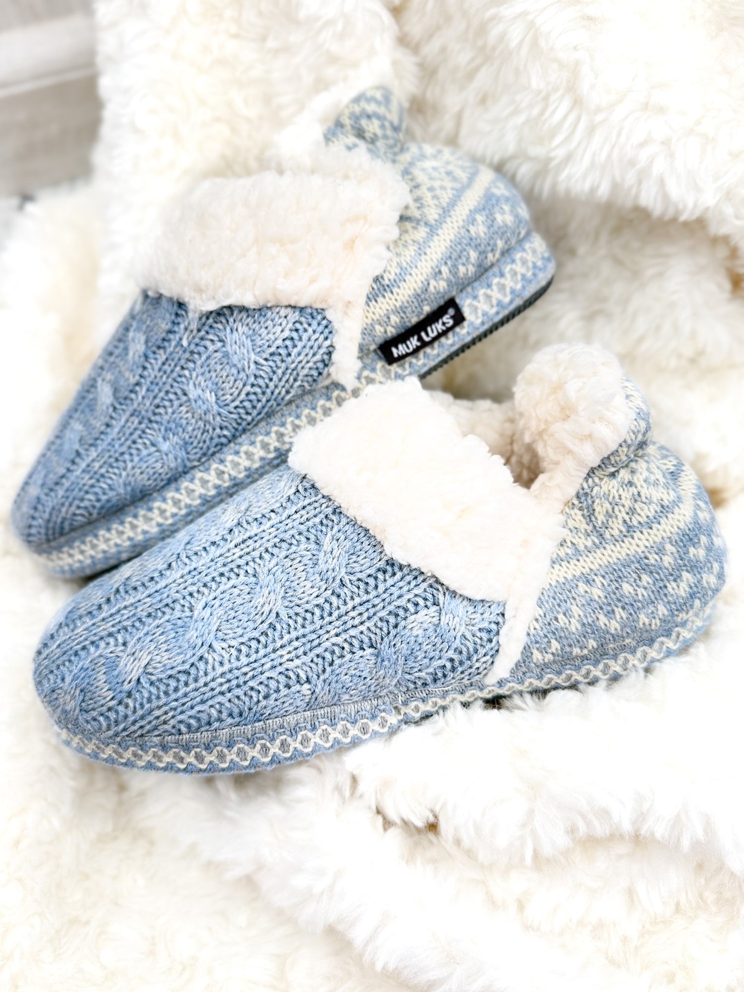 Treat your feet to all-day comfort with the Muk Luks Women’s Magdalena Slippers. A plush faux-shearling lining and multi-layer comfort foam footbed give you soft, lasting support, while the signature knit upper adds a cute, casually chic touch. Perfect for keeping your toes warm and cozy no matter the season. Slip them on and get comfy!