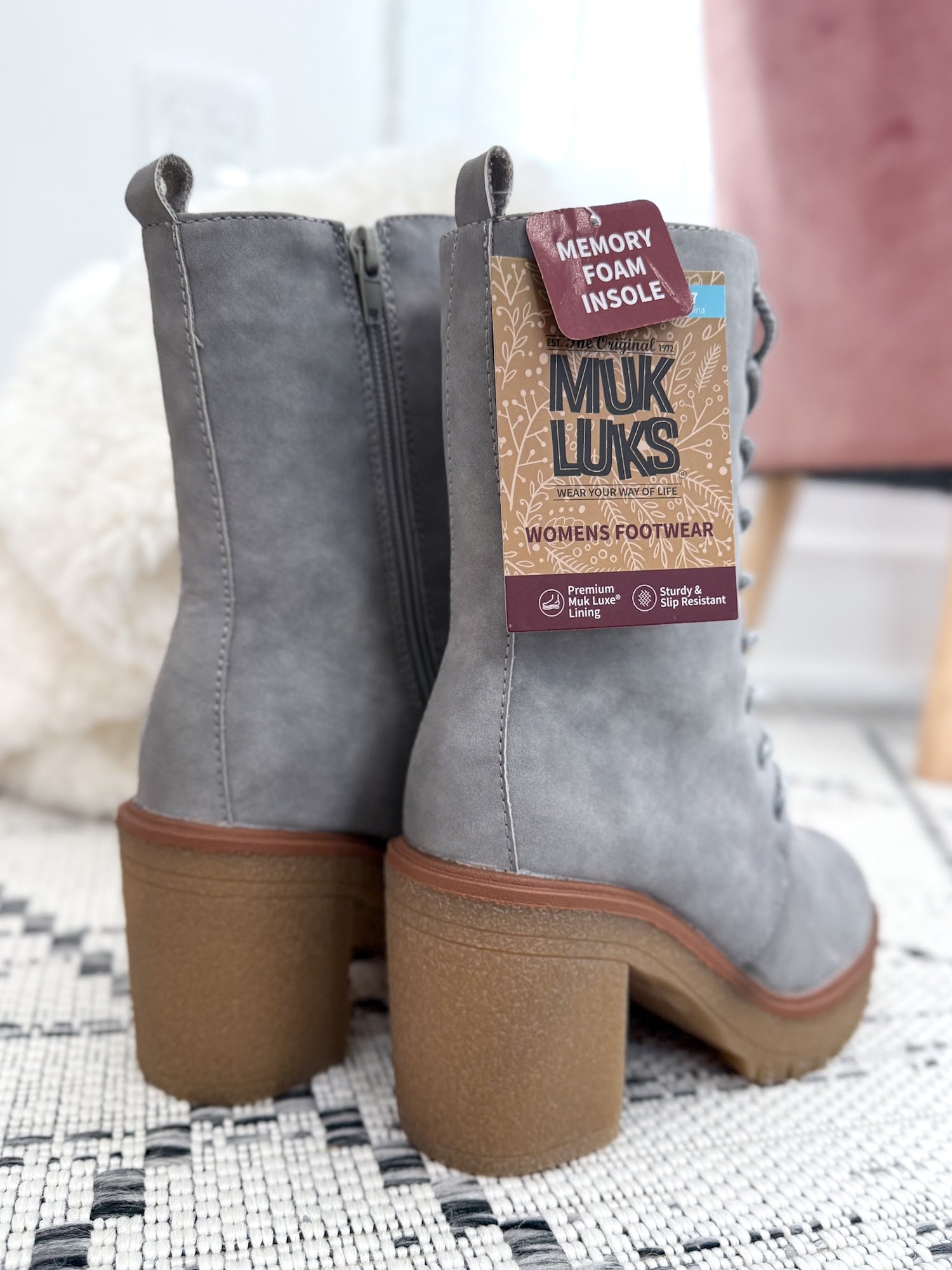 The Riser Boot by MUK LUKS® takes a classic lace-up and gives it a chic upgrade. With a chunky heel, cozy faux fur lining, and a sweater knit tongue, these boots are as comfy as they are stylish. The side zip makes them easy to slip on, while memory foam insoles keep every step cushioned. Perfect with skinny jeans, leggings, or even a sweater dress for a cool-weather look with edge.