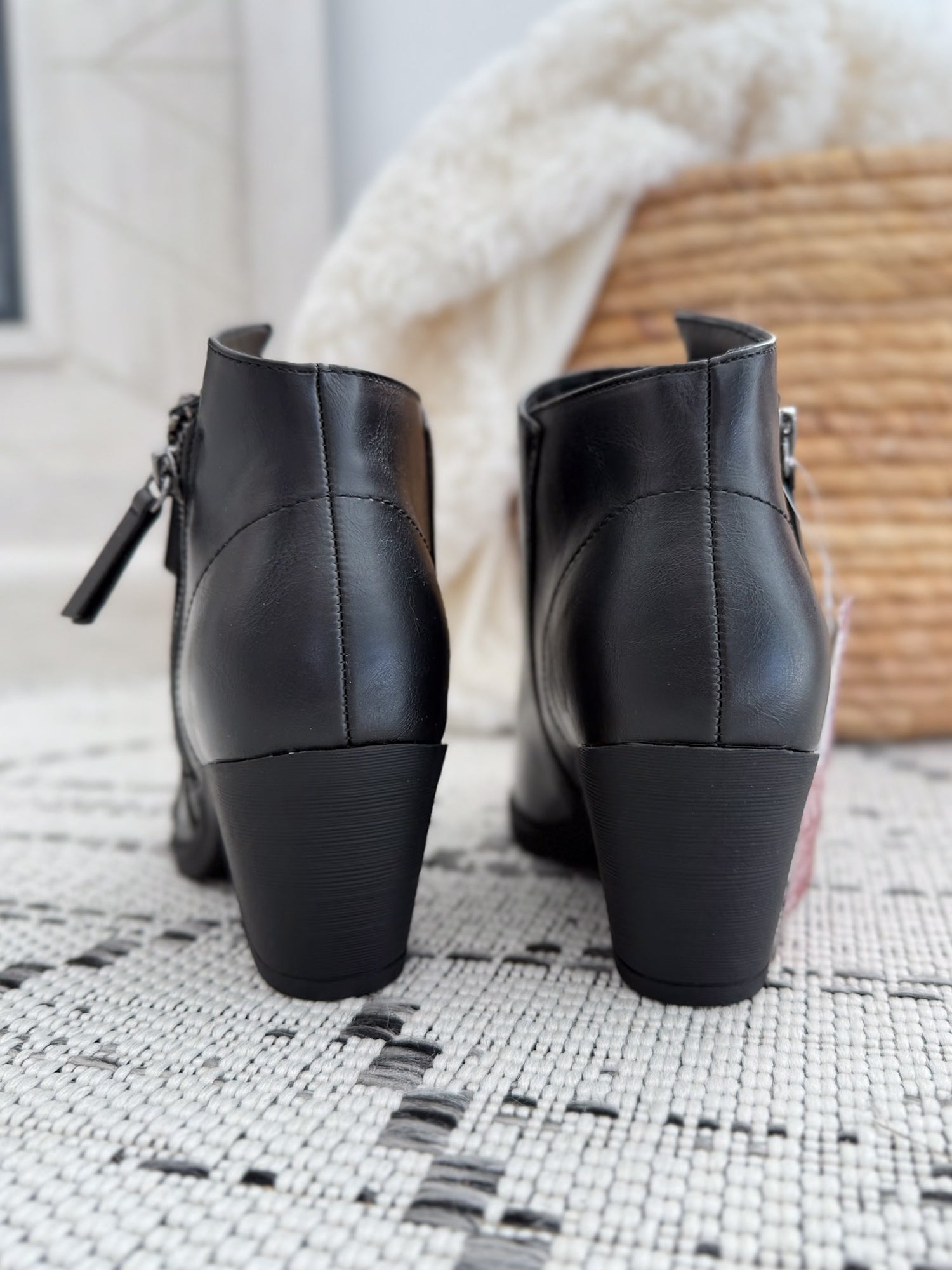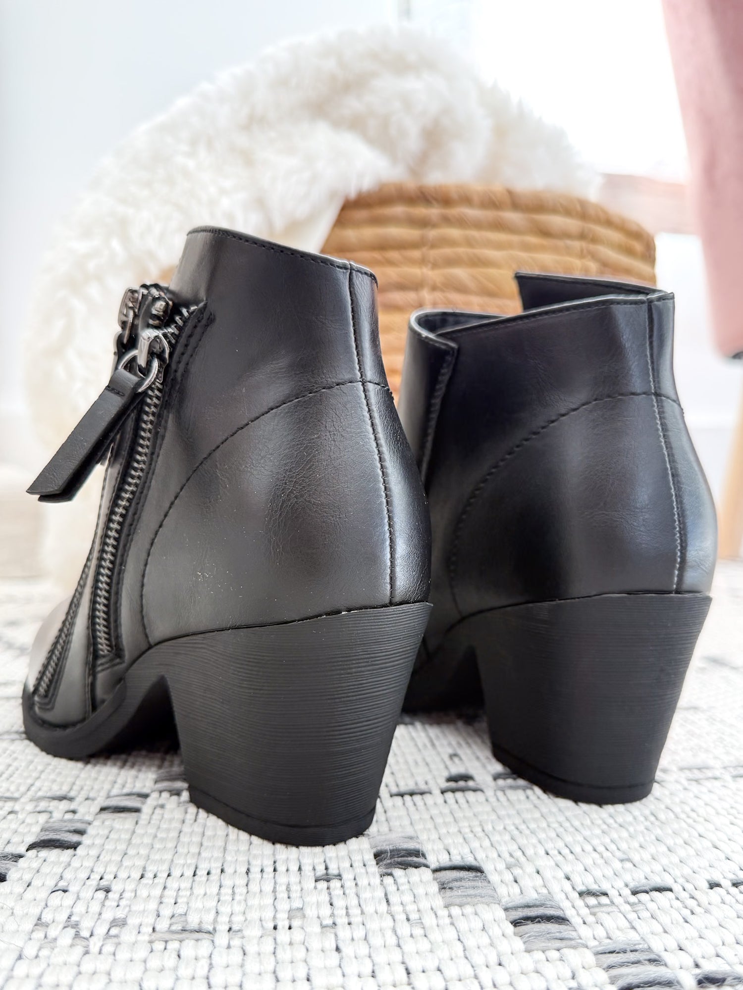 - Sleek Look: Almond toe and smooth black finish for versatile style