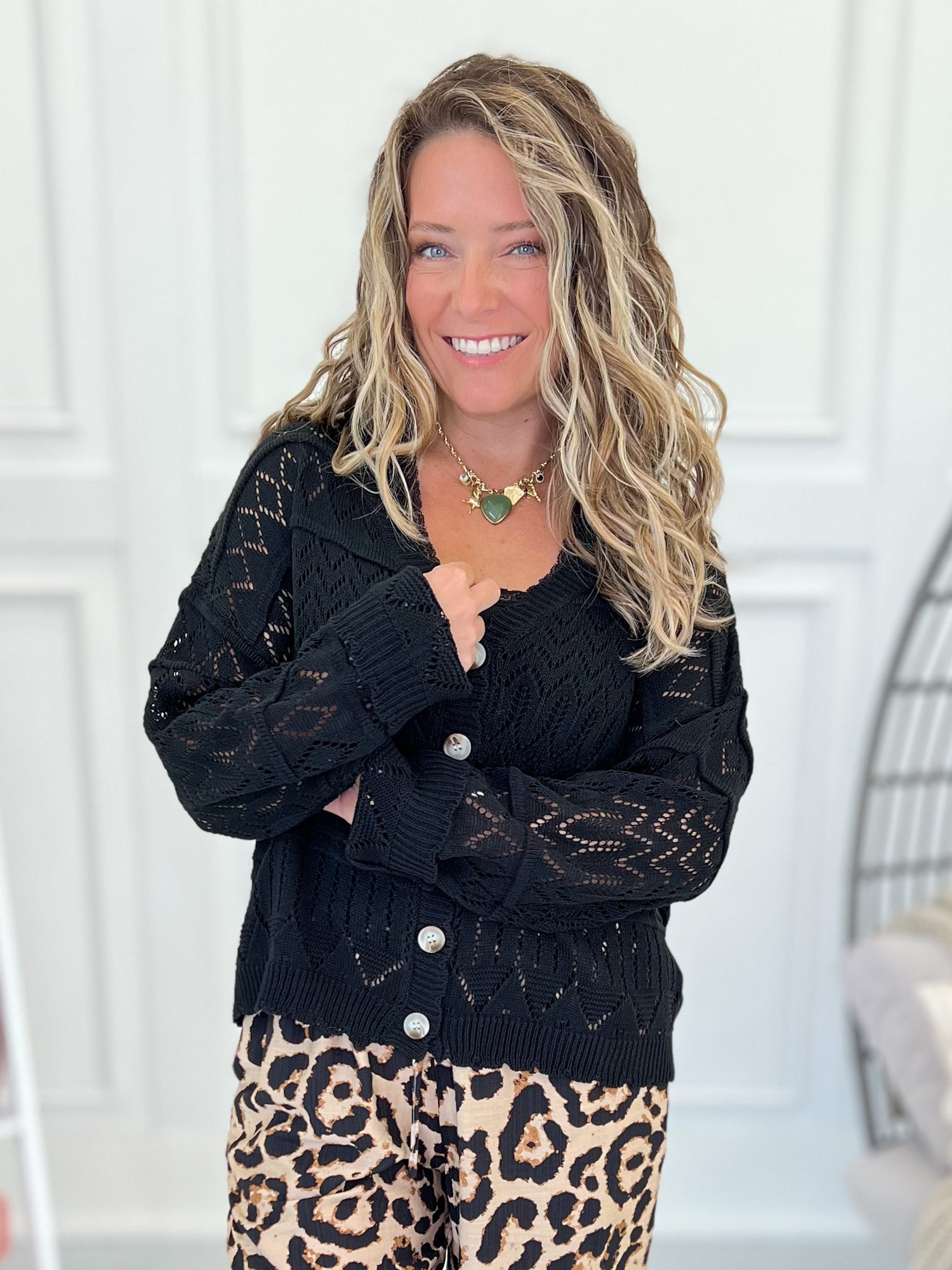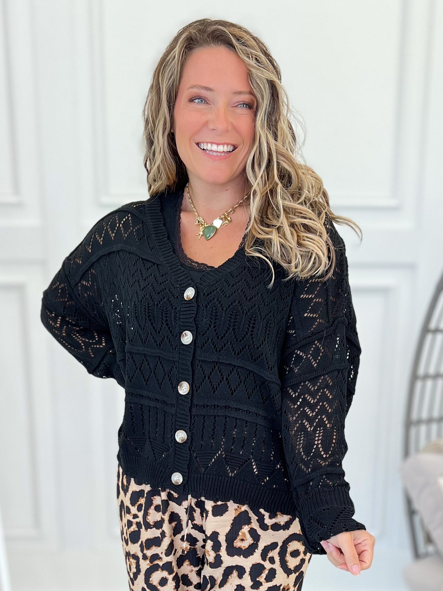 This black open stitch cardigan is the answer to “Can I throw on something cute and comfy?” (Of course you can.) With a lightweight feel, gorgeous texture, and a relaxed fit, this beauty layers like a dream. Toss it over a cami and wide-leg pants or wear it buttoned up with high-rise denim for an effortless vibe.