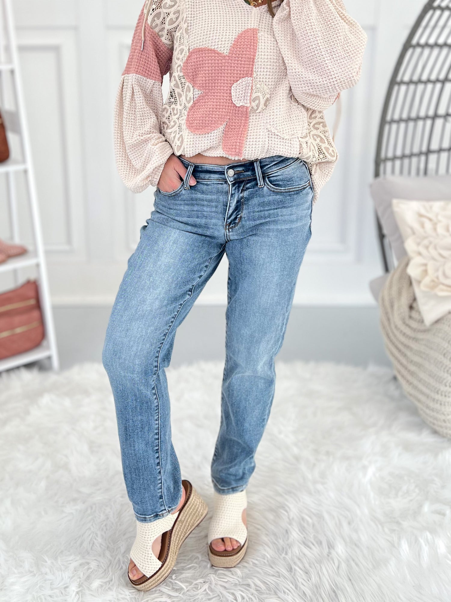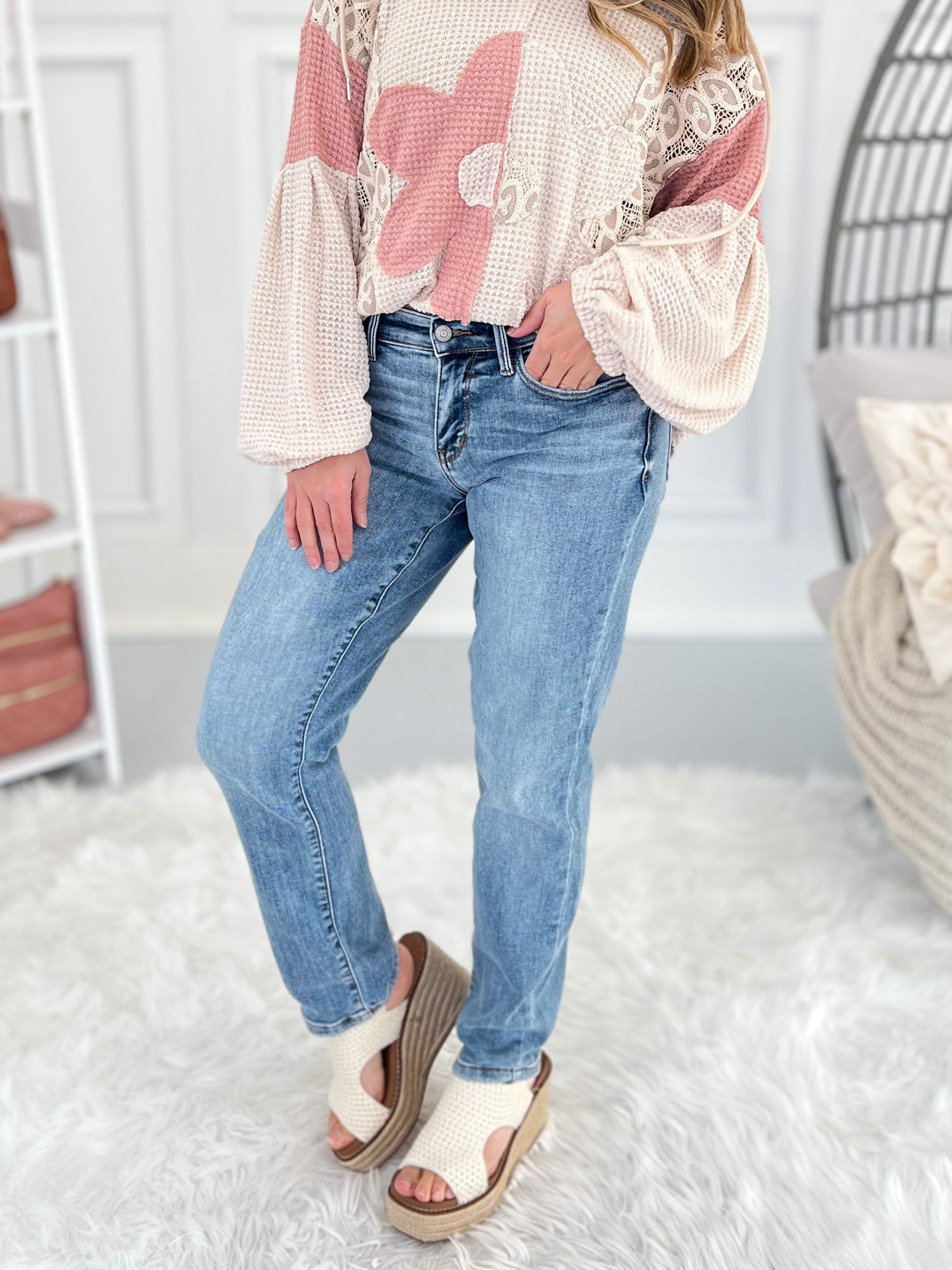 To get your perfect fit, first, let's find your true Judy Blue size. This will be your starting point for all Judy Blue jeans. This brand is generously cut, so you'll find your true Judy Blue size by taking your even, department store pant size and subtracting a number. Once you have determined your true Judy Blue size, then take a peek at the product description of each pair of jeans to see how we recommend sizing! This part is super important - they all fit and stretch a bit different! Lastly - don’t forget to check the item details to see the inseam, rise and fabric for each pair of jeans! Remember that rise is body type dependent (so a high-rise on a short torso may be a mid-rise on a long torso) and we all have multiple inseam preferences depending on the style of jeans we are shopping for!