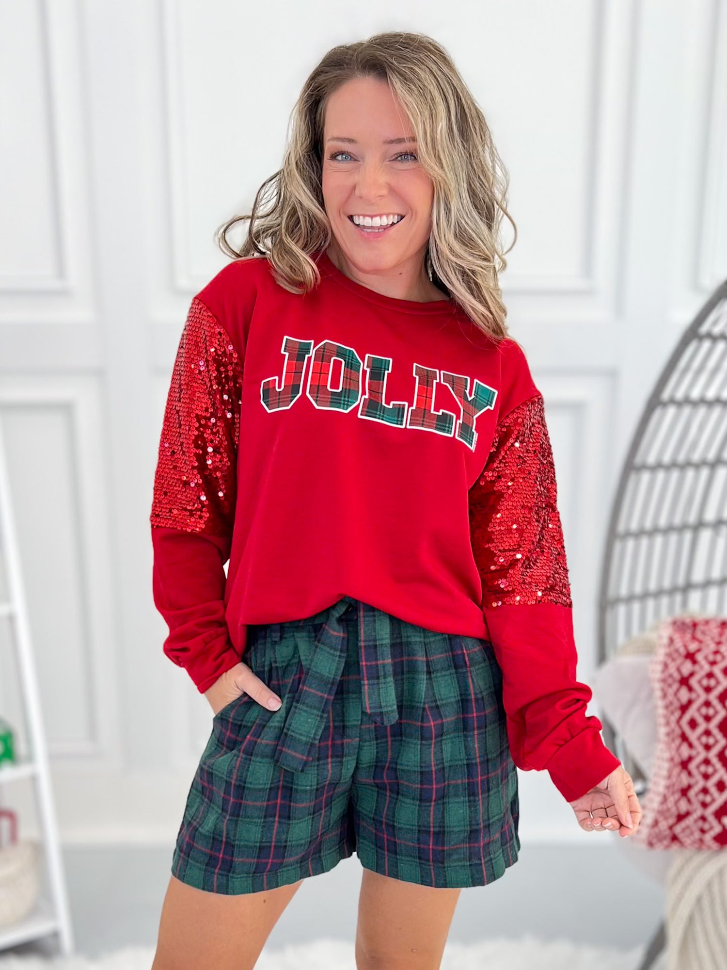 Classic plaid with a holiday twist — these flannel shorts are as festive as they are comfy! Made from blankety soft fabric with a light elastic waistband and removable tie belt, they’re a perfect blend of cozy and cute. Style them with tights and booties for chilly days or pair with a tucked-in tee or sequin top for a festive flair that totally stands out.