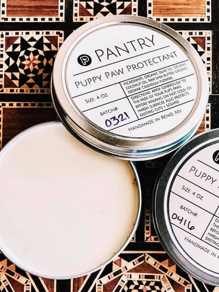 Whether it’s warming up outside or cooling off, it’s important to protect your pet’s paws from the elements. Custom formulated to protect from hot pavement, ice, salt, and rough surfaces, Pantry’s Puppy Paw Protectant is perfect for any outdoor activity. The wax-based ointment creates a protective shield against harmful surfaces while shea butter and Vitamin E will nourish your pet’s feet and help to heal any wounds. 6 oz.