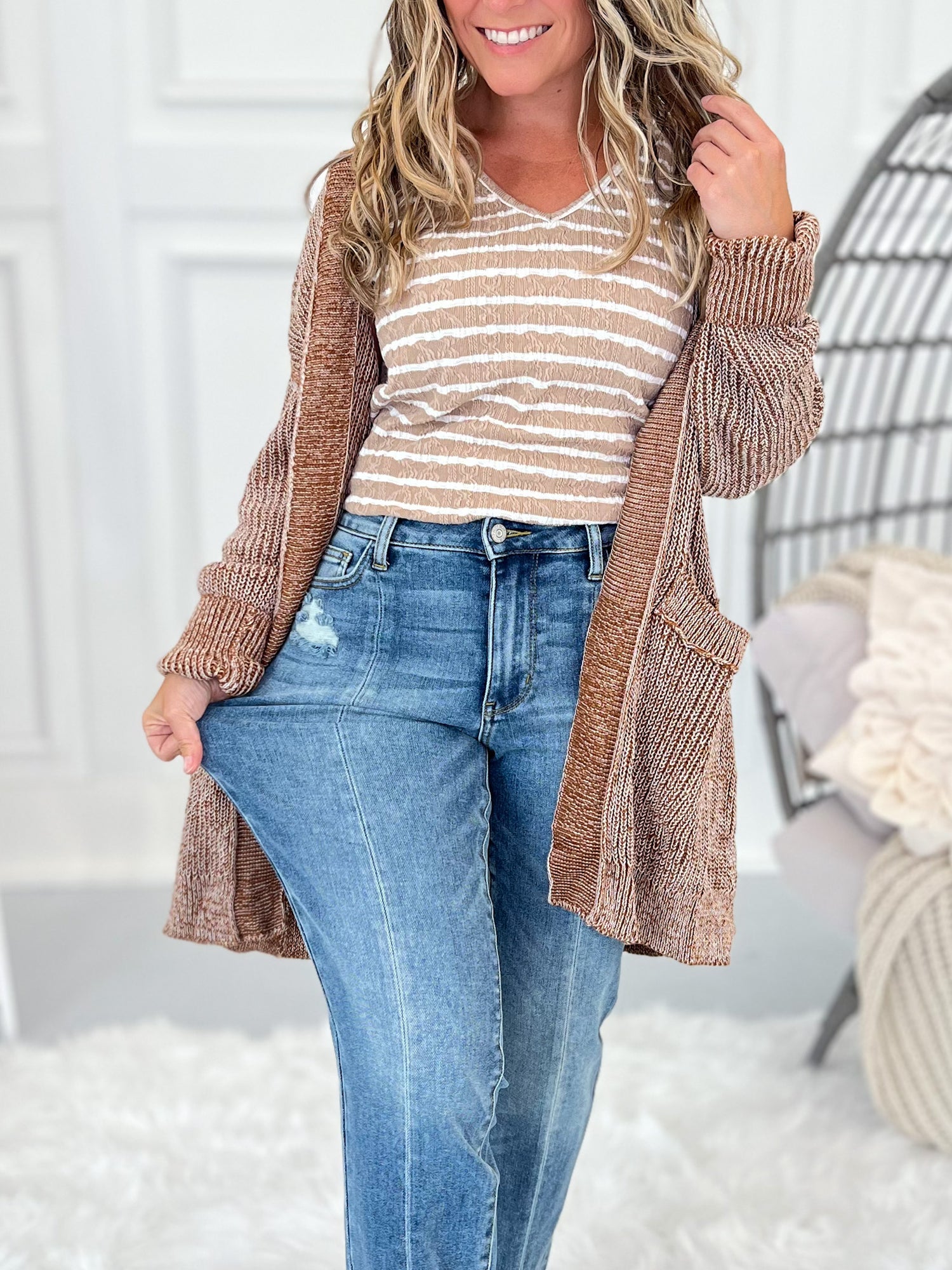 After hand selecting and trying on every single piece of clothing that we offer… for over 7 years… we are pretty confident with sizing! We use the following guidelines for everything, except jeans! Be sure to read the detailed sizing advice on each product though, to make sure you get the best fit!