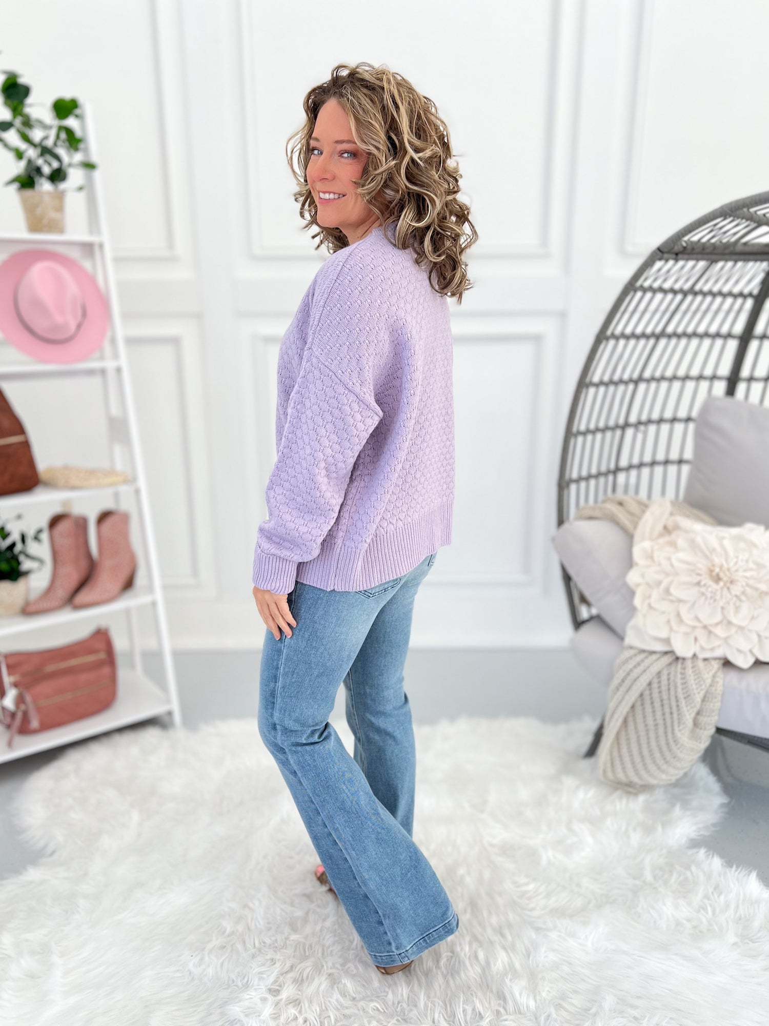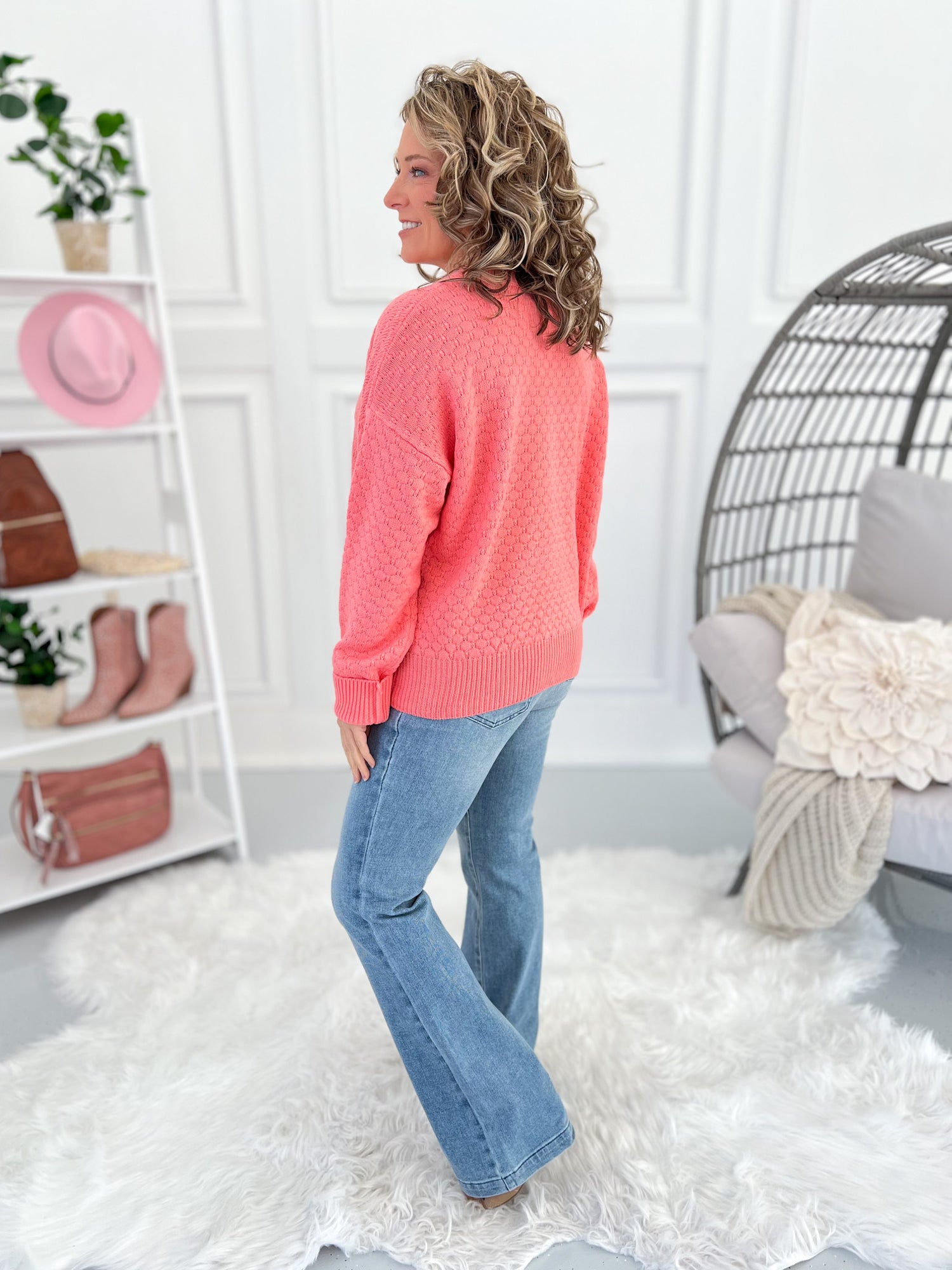 This is one of those sweaters you’ll keep reaching for. The See Me There Sweater by Michelle Mae is lightweight, incredibly well-made, and has that easy drape that feels polished without feeling stiff. Dress it up with denim and boots or keep it casual for everyday wear—it just works.